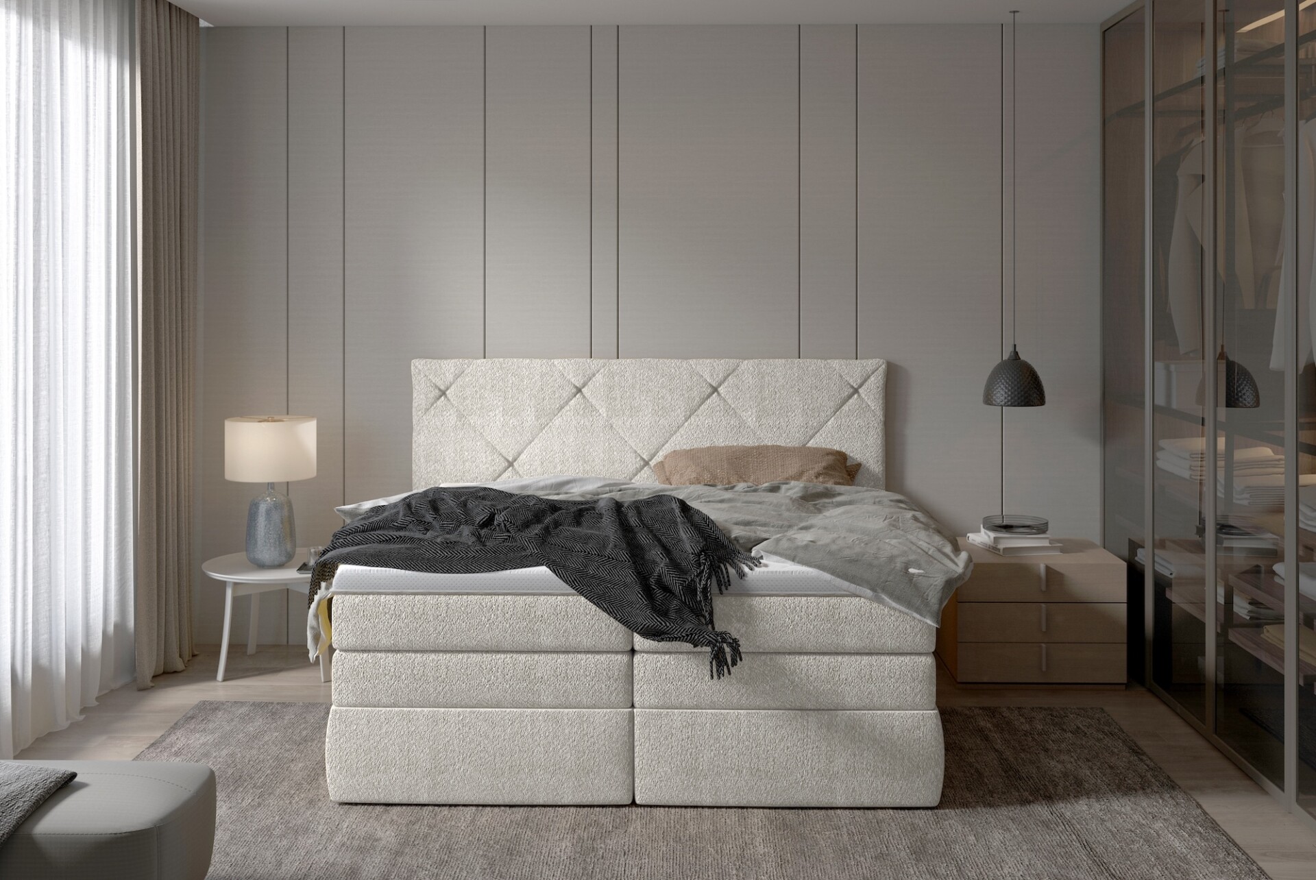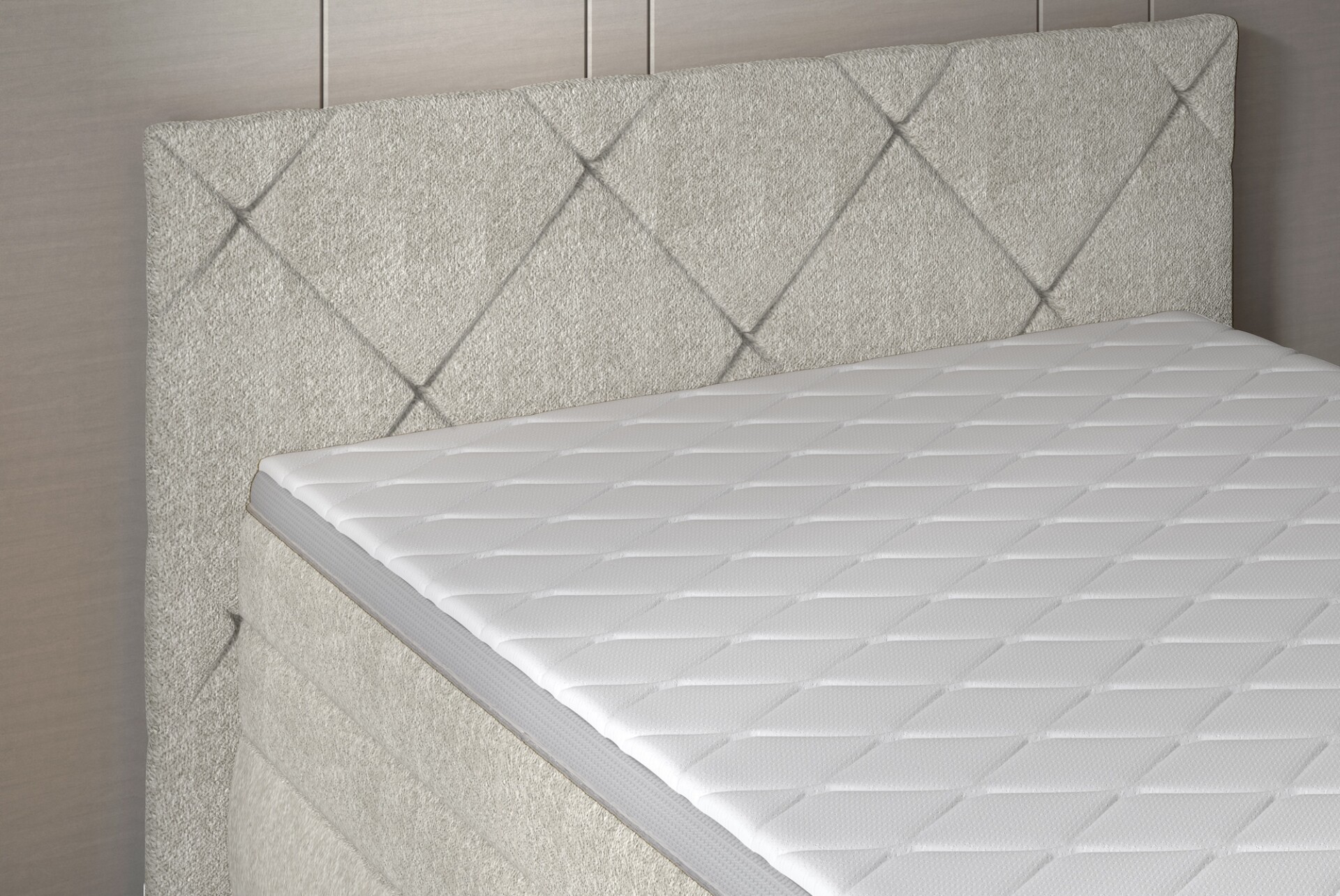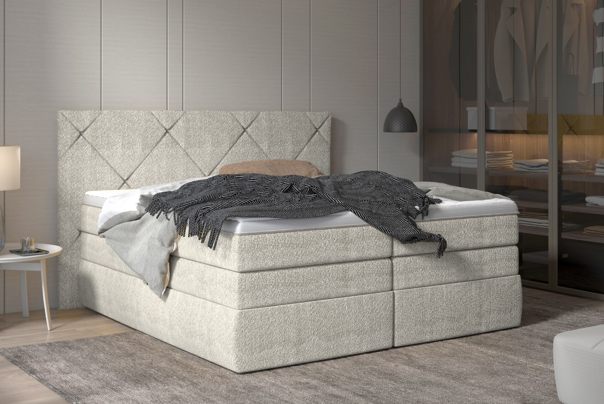 A Lungo boxspring franciaágy elegáns megjelenése mellett kimagasló kényelmet kínál – dupla matracrendszerének köszönhetően tökéletes alátámasztást és pihentető alvásélményt biztosít minden este.