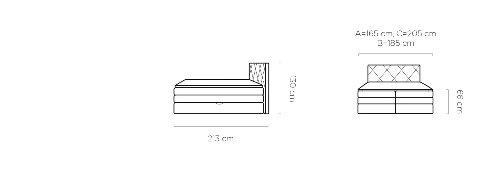ágytest: 165 / 185 / 205 x 213 cm
