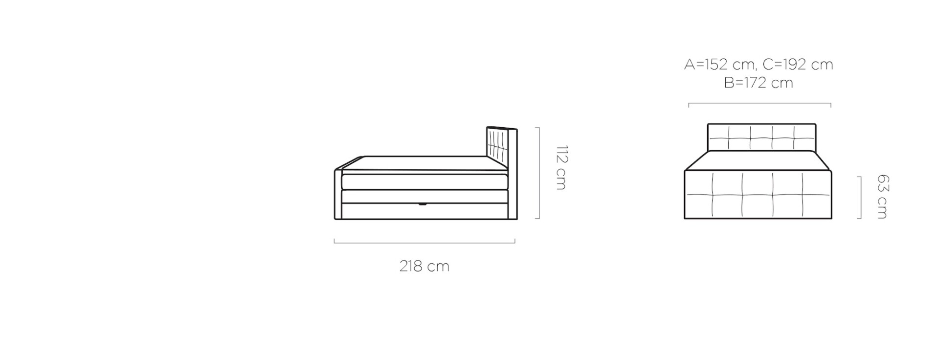 ágytest: 152 / 172 / 192 x 222 cm