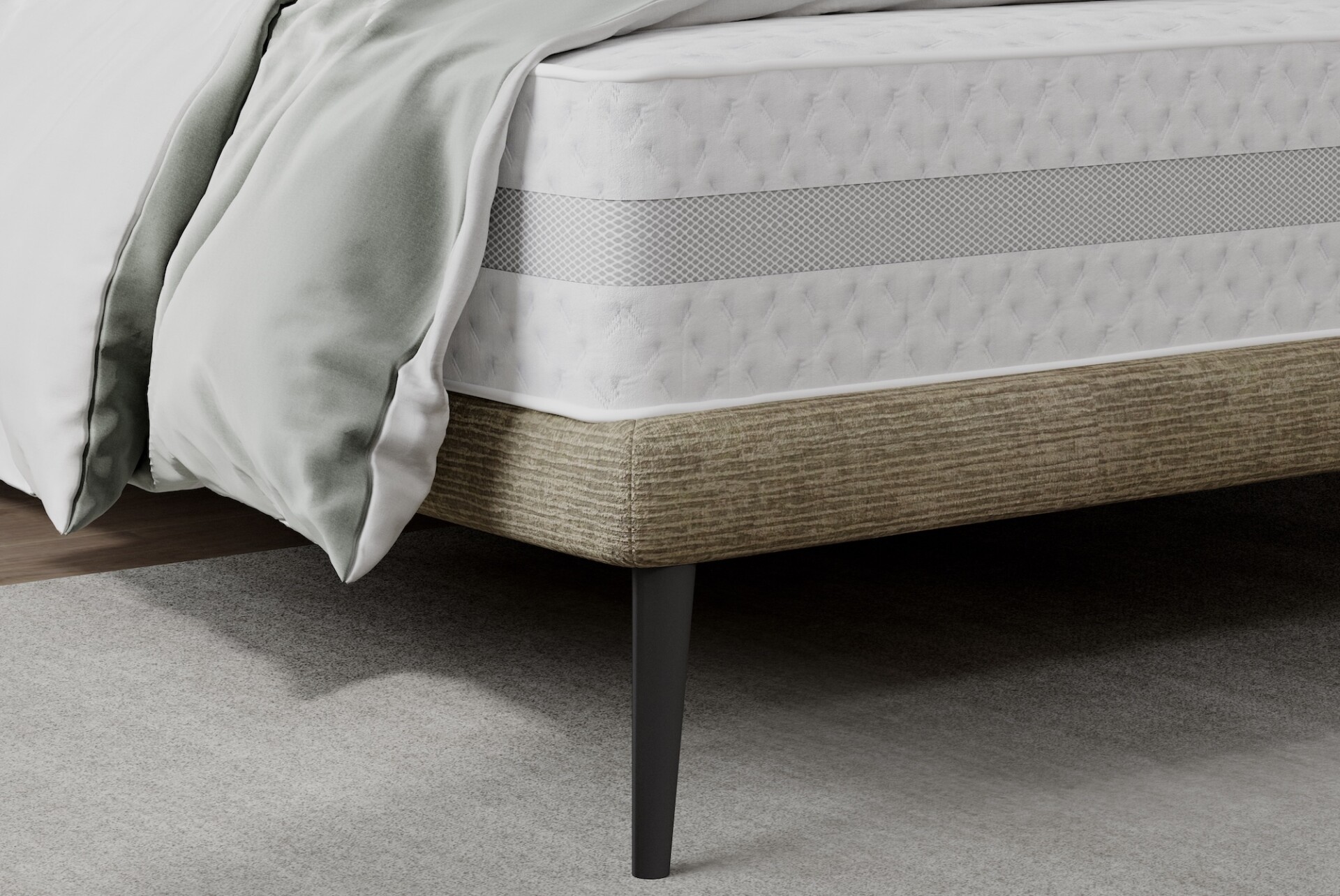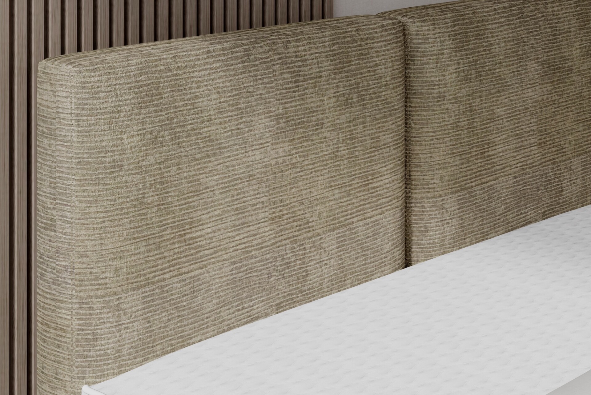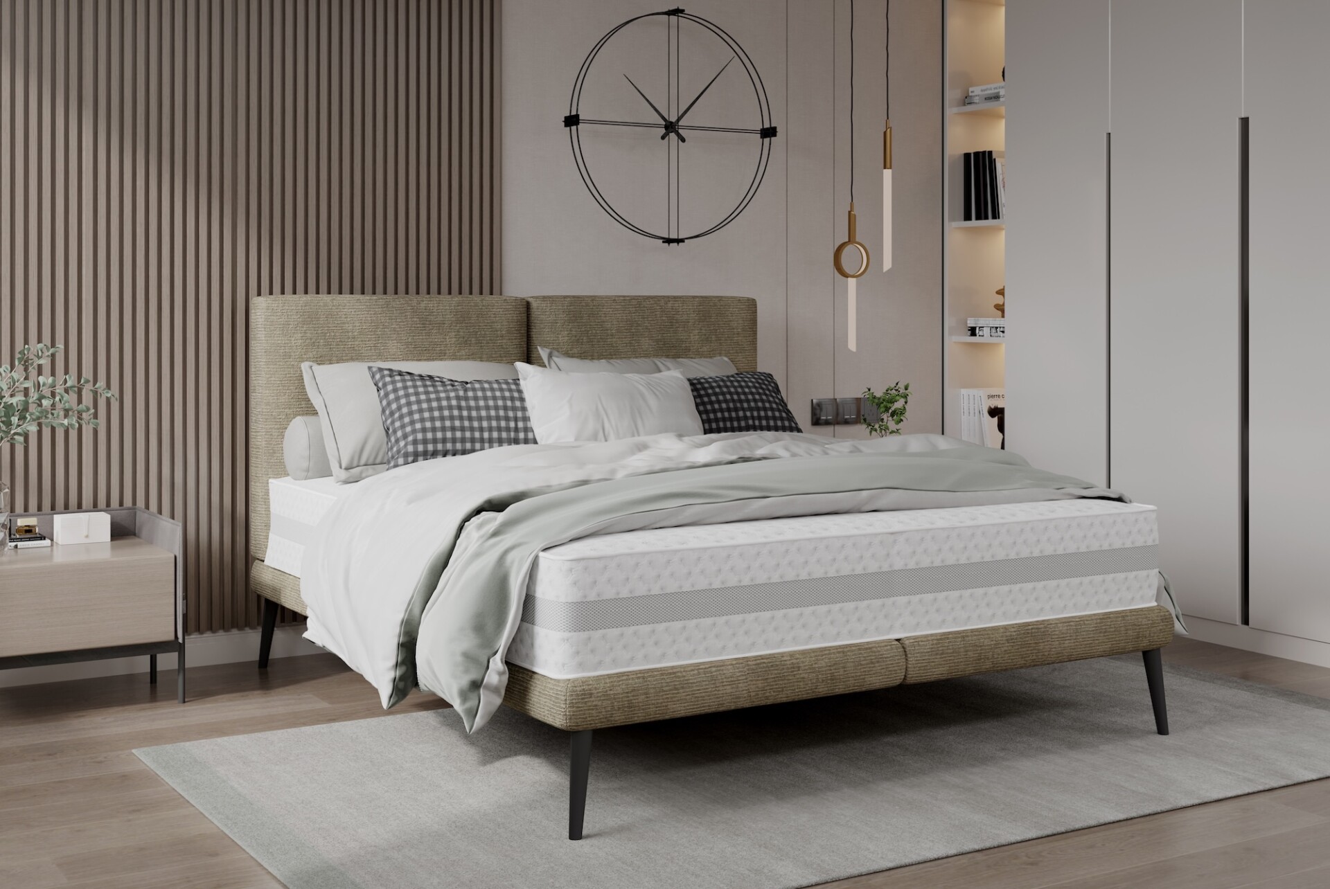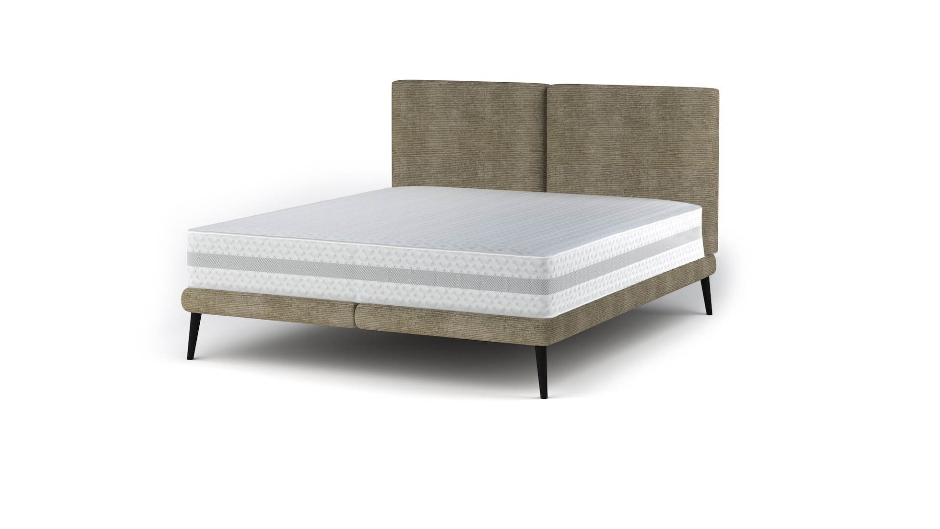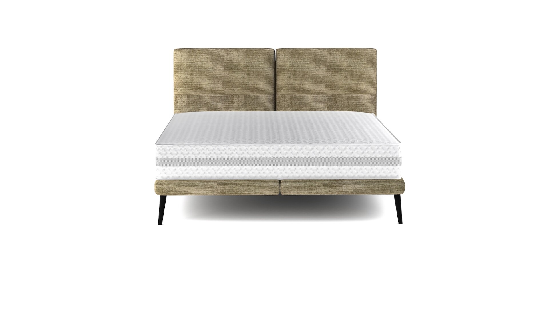 Stílusos megjelenésű franciaágy osztott fejvéggel, magas lábakon.