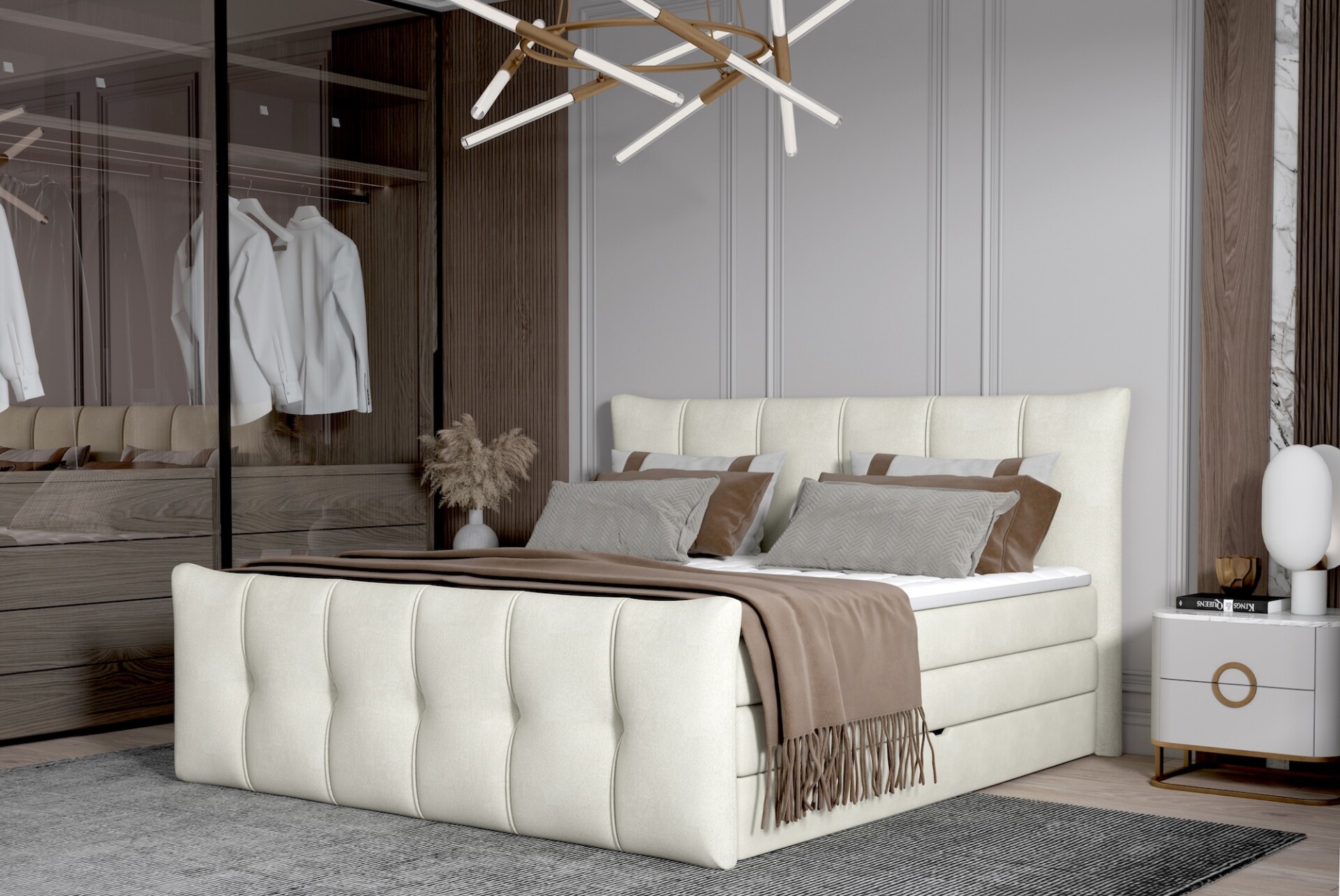 A Sofia boxspring franciaágy elegáns megjelenése mellett kimagasló kényelmet kínál – dupla matracrendszerének köszönhetően tökéletes alátámasztást és pihentető alvásélményt biztosít minden este.
