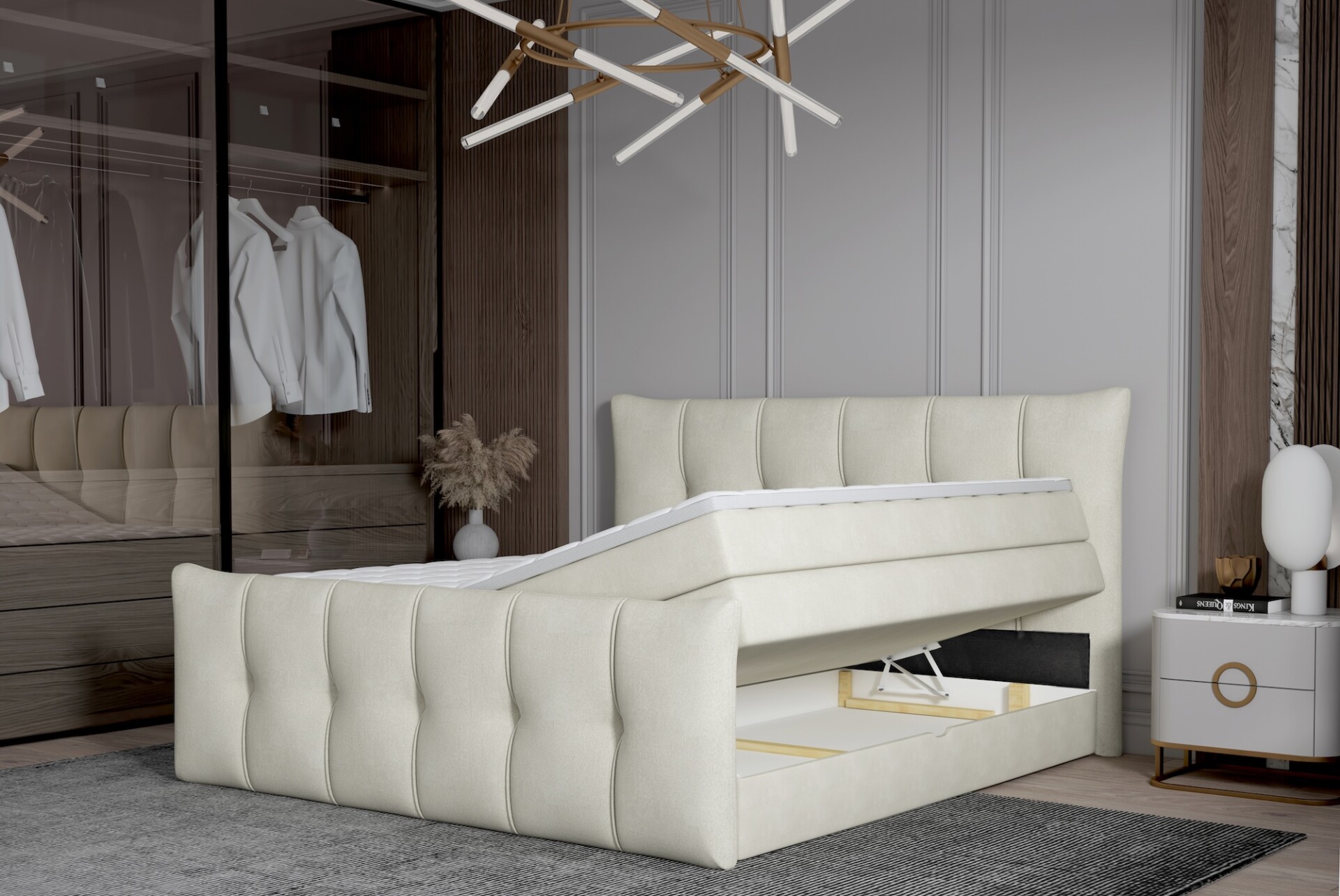 Mindkét oldalról nyíló ágyneműtartóval.