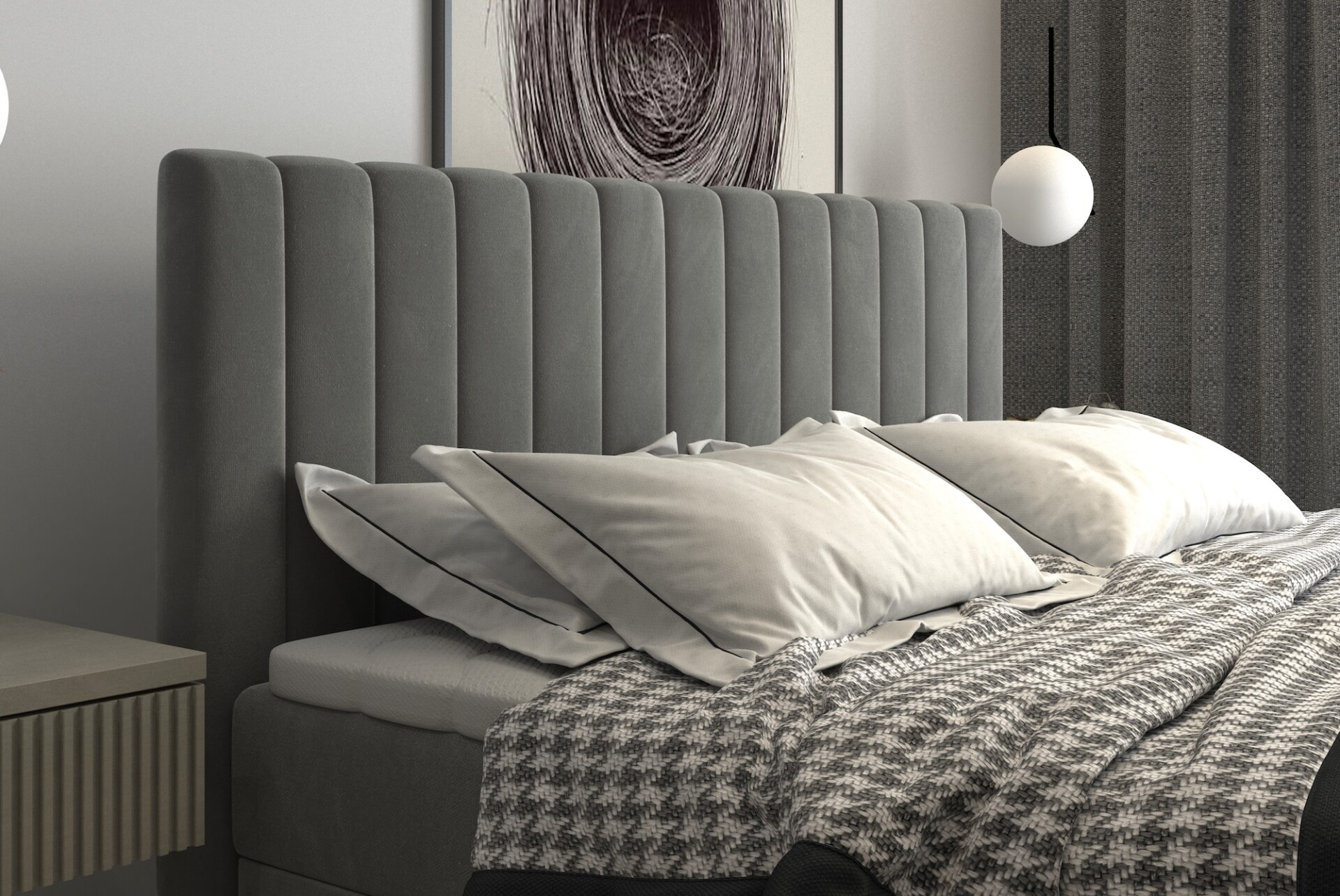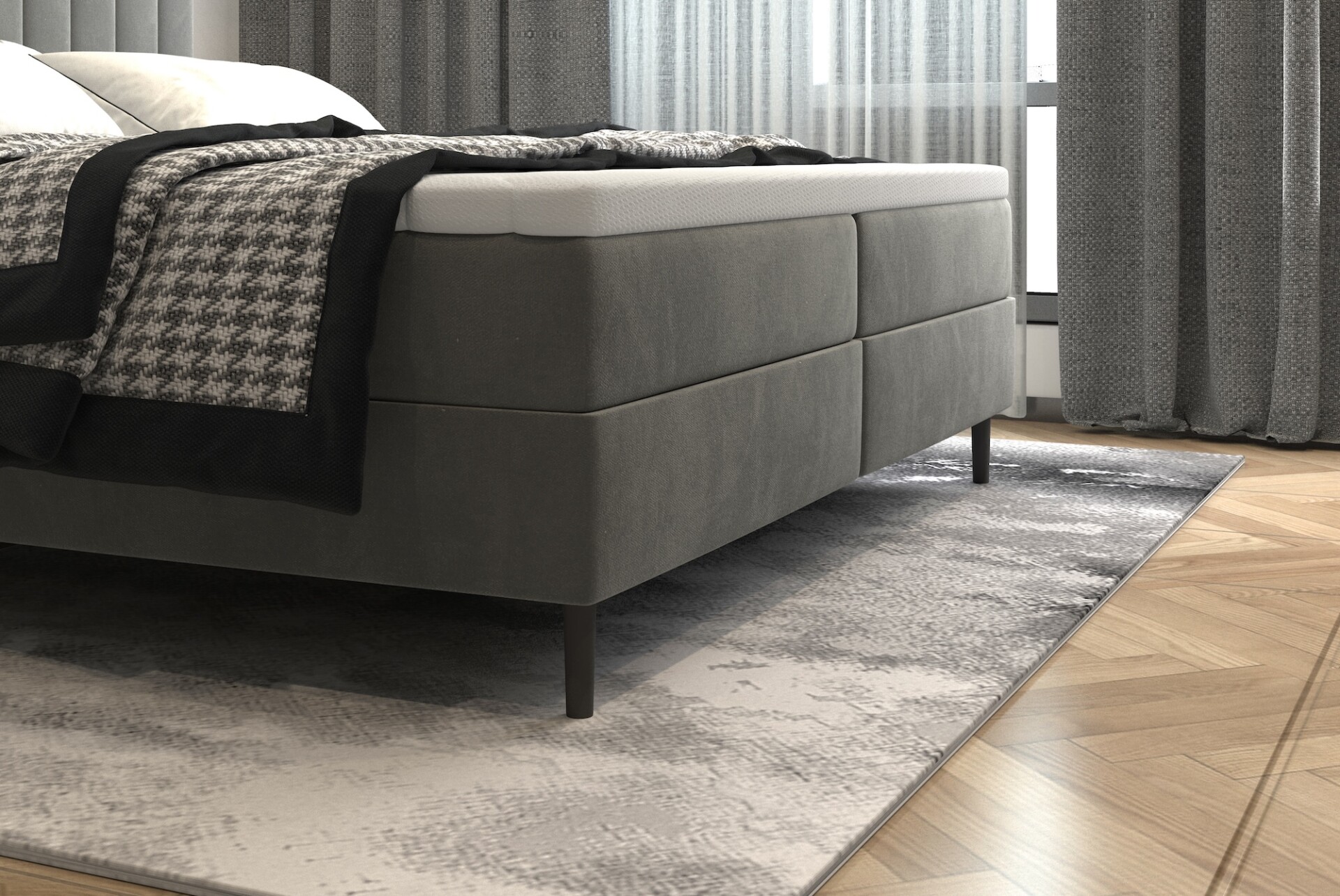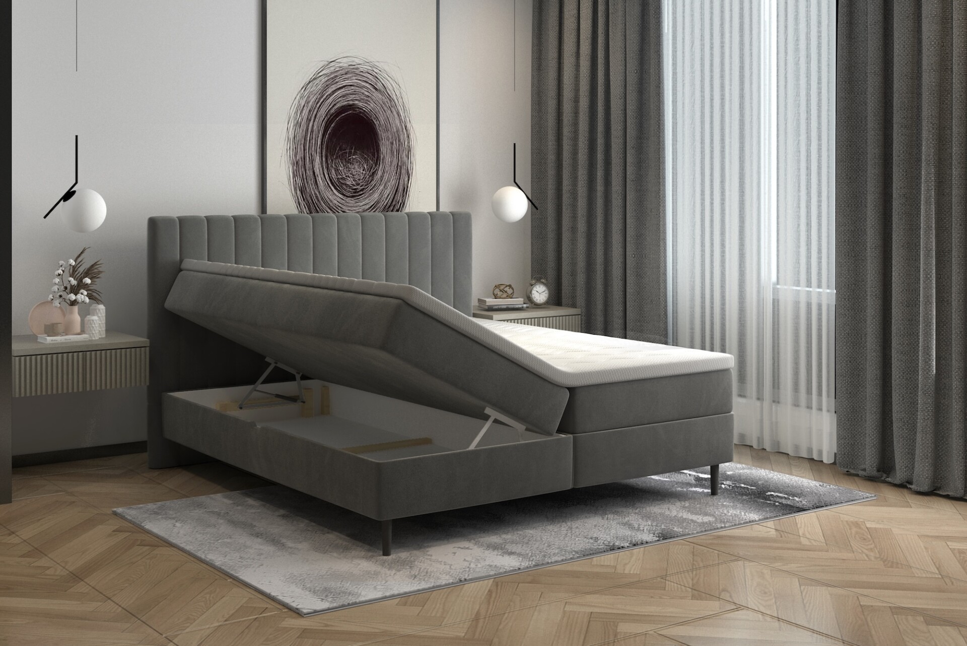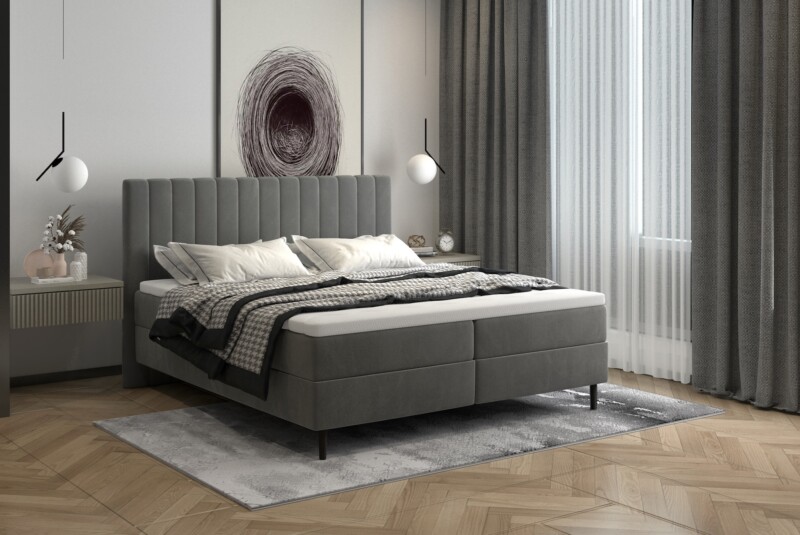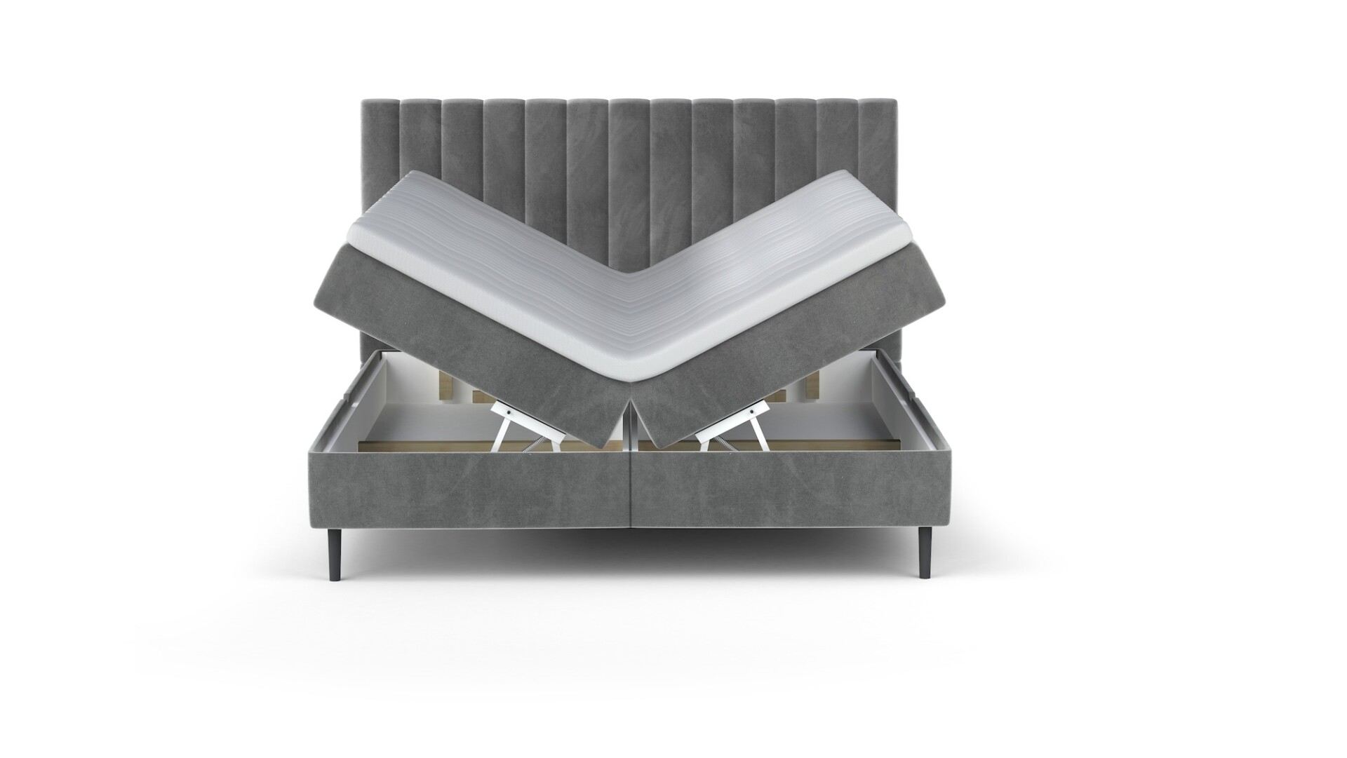 Stílusos megjelenésű franciaágy két oldalról nyíló ágyneműtartóval, magas lábakon.