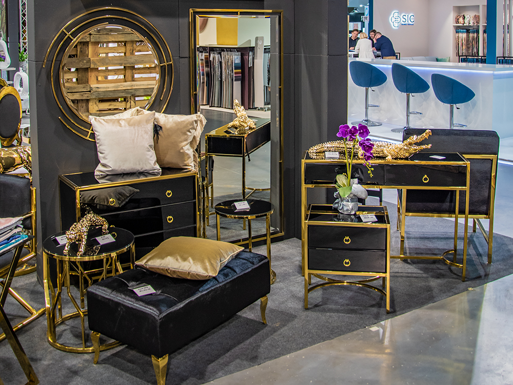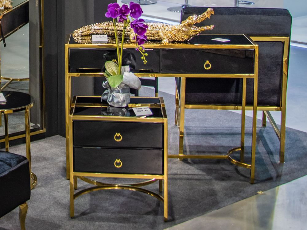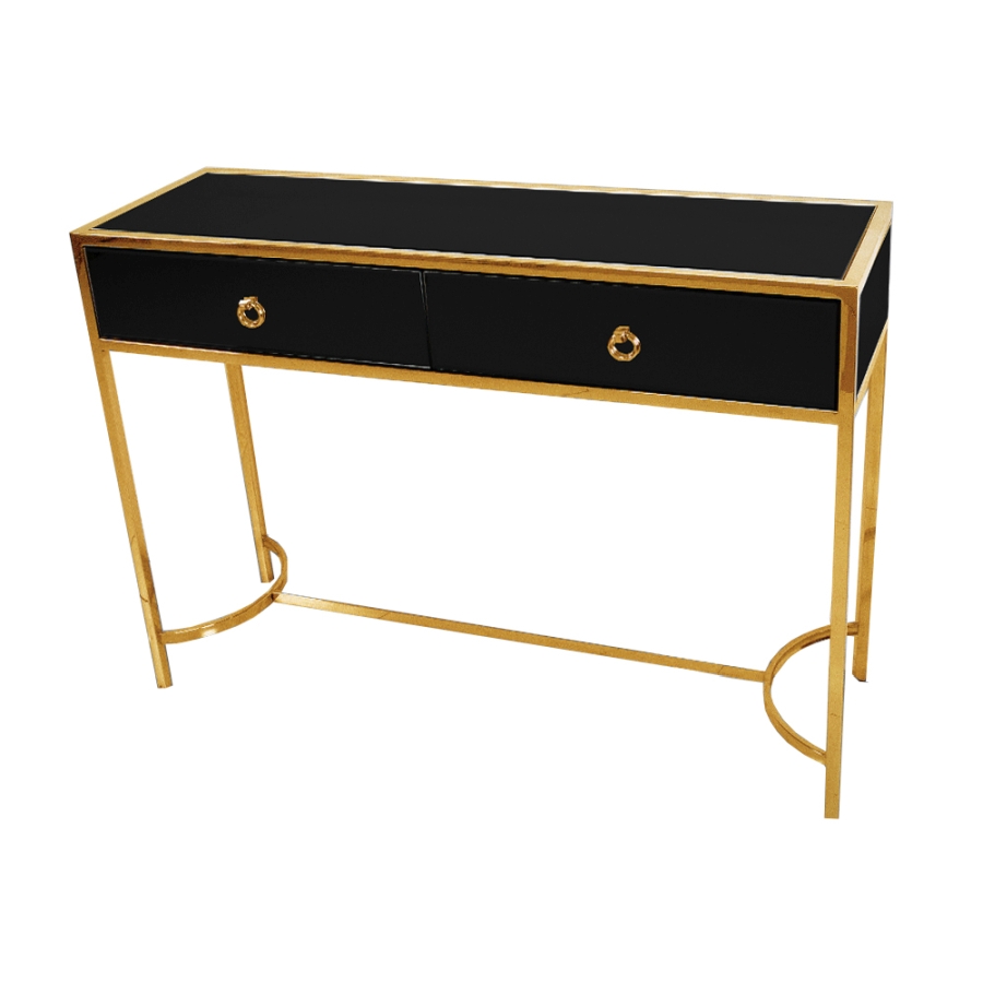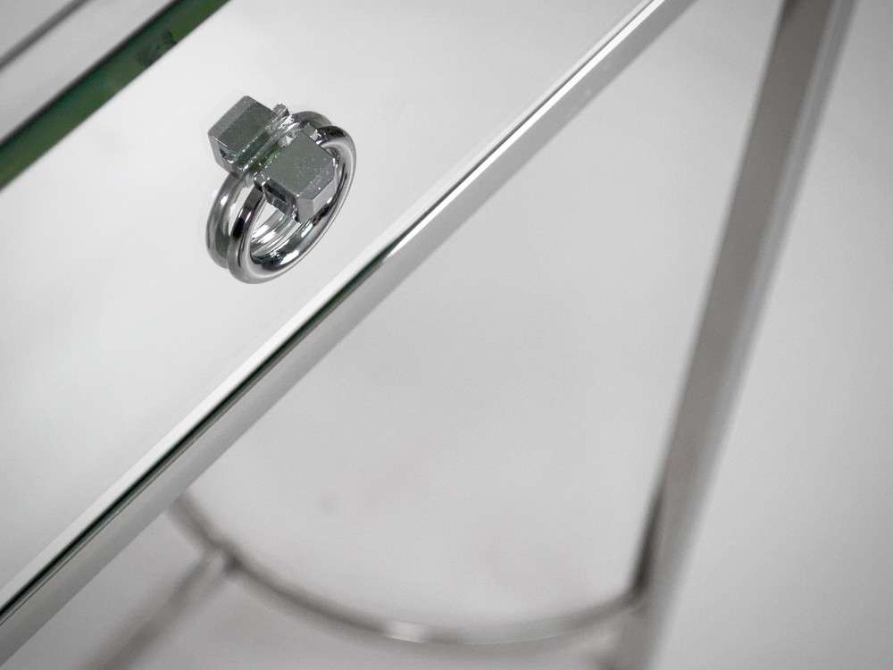 Elegáns konzolasztal krómacél lábazattal. Ideális választás hálószobába, nappaliba, vagy előtérbe.