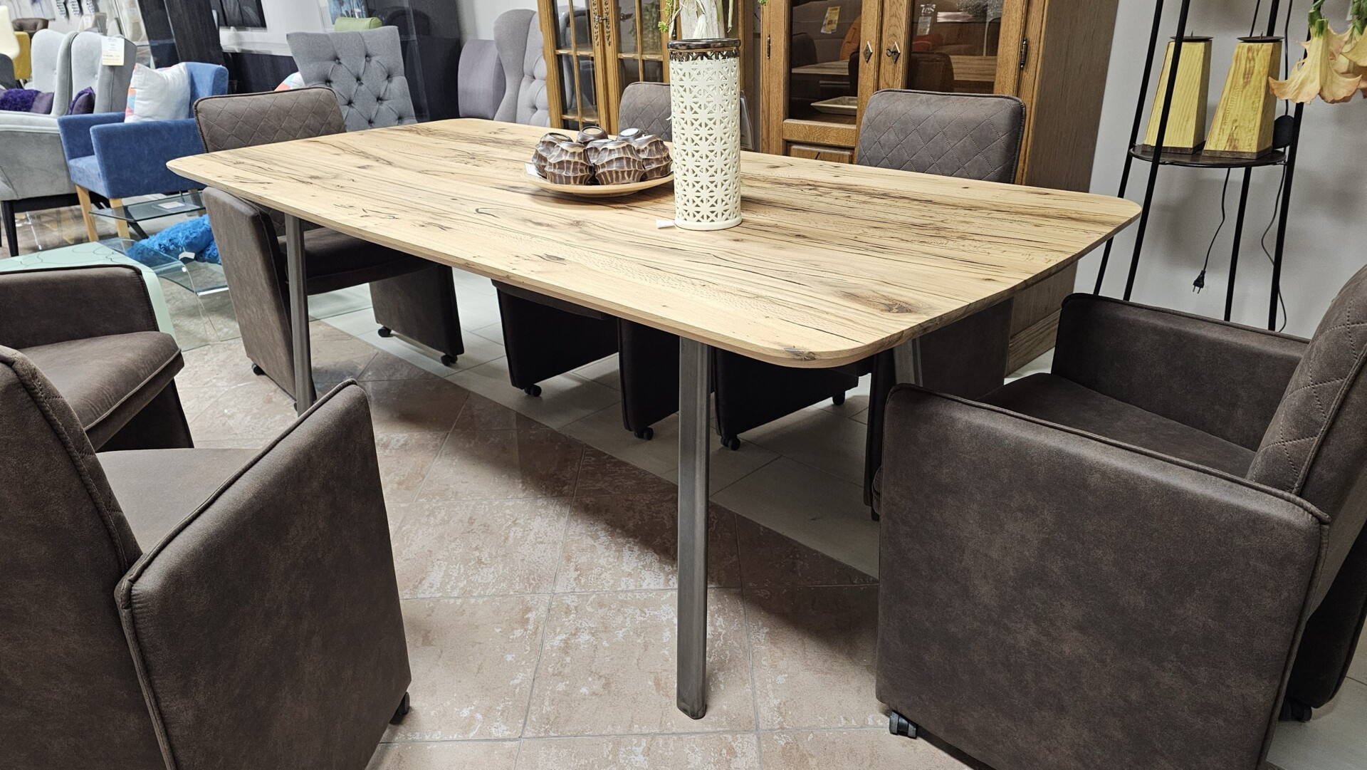 Teddy II asztalunk felhasználási területei szinte végtelenek. Fózolt tömör tölgy, natúr pácolású tetőlapja és industrial minimalista lábai mind étkező-, mind tárgyalóasztalként tökéletes választás.