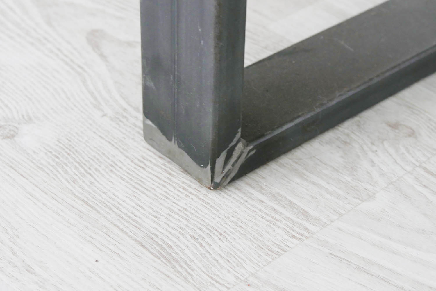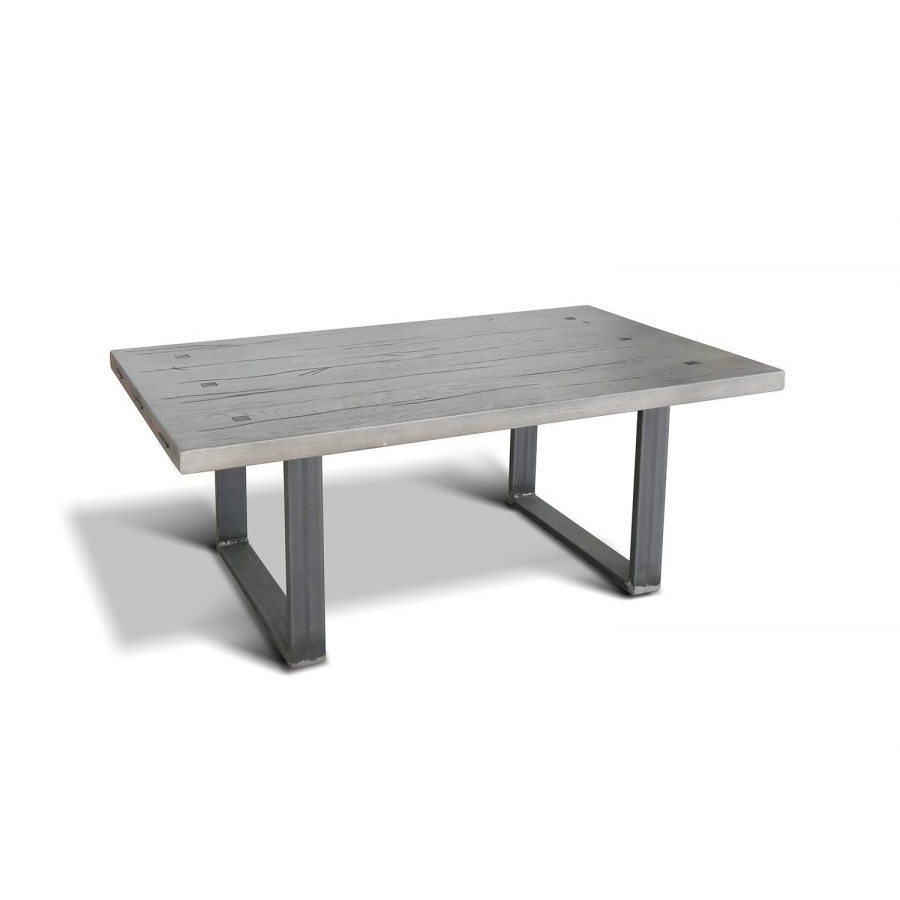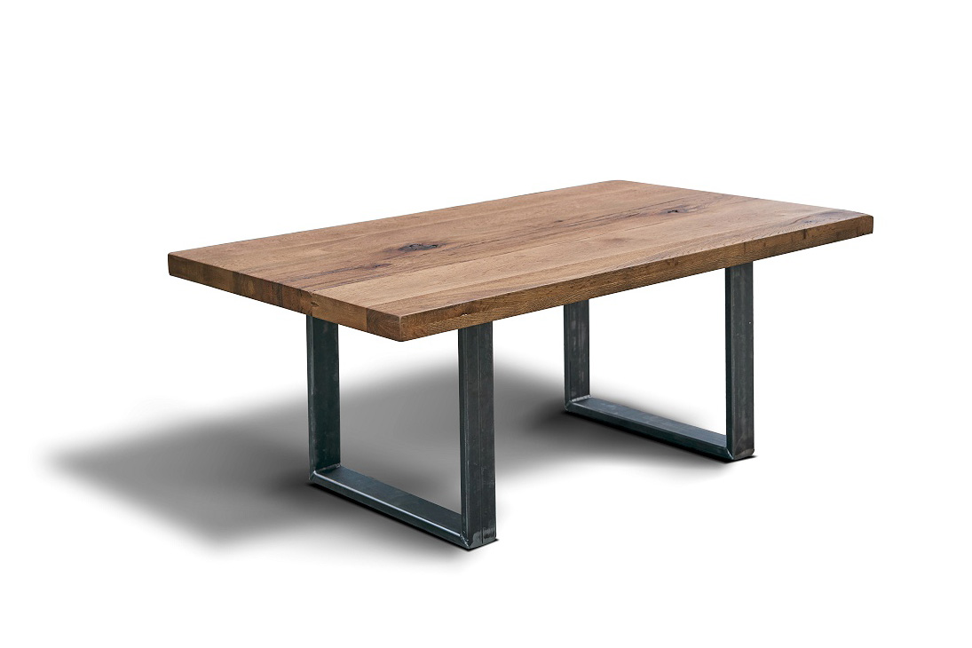 Letisztult megjelenésű, tömör tölgyfa dohányzóasztal nemesacél lábazattal.