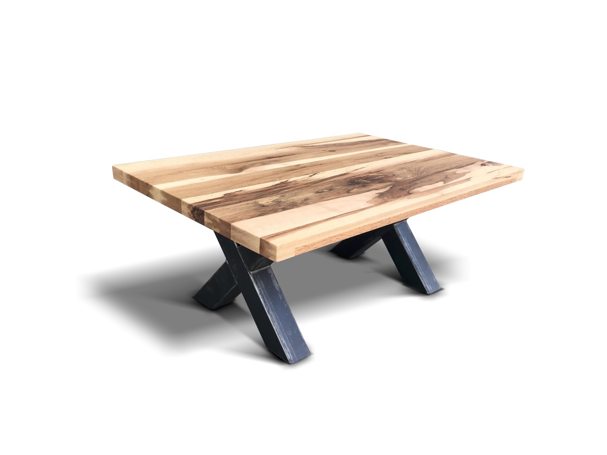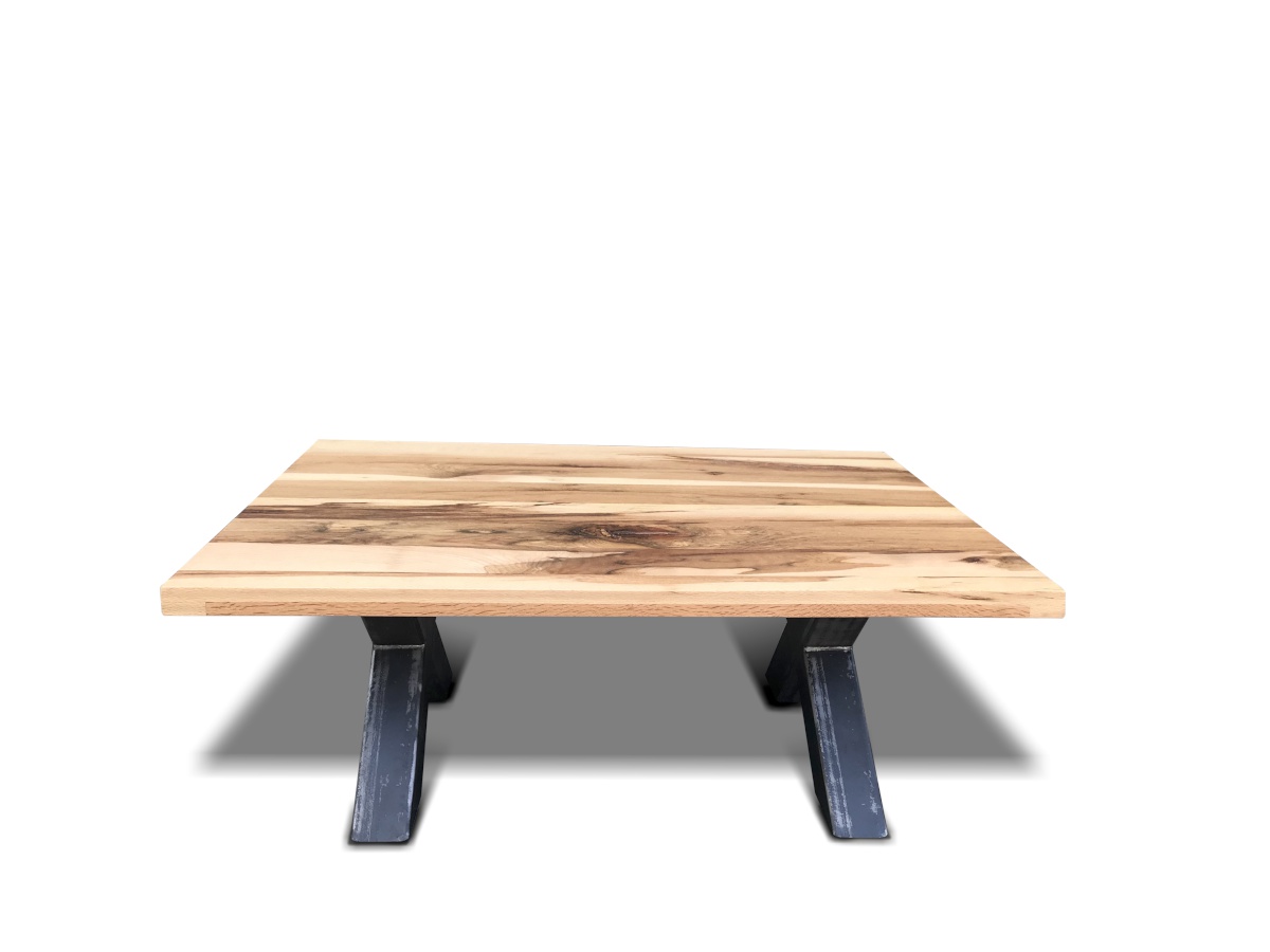 Letisztult megjelenésű tömörfa dohányzóasztal.