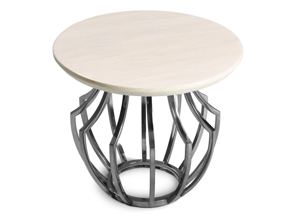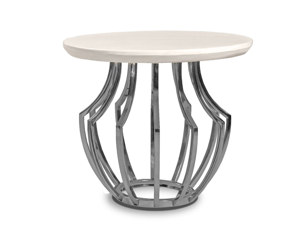 Elegáns, design dohányzóasztal márvány hatású kőlappal, krómacél vázzal.