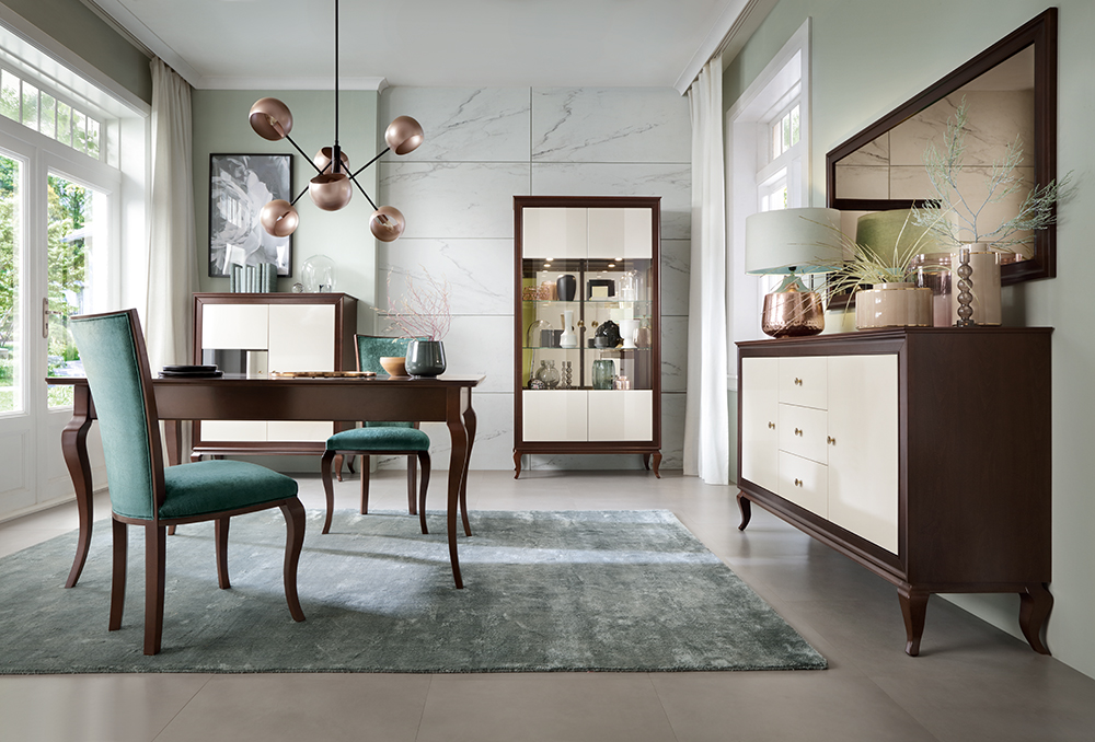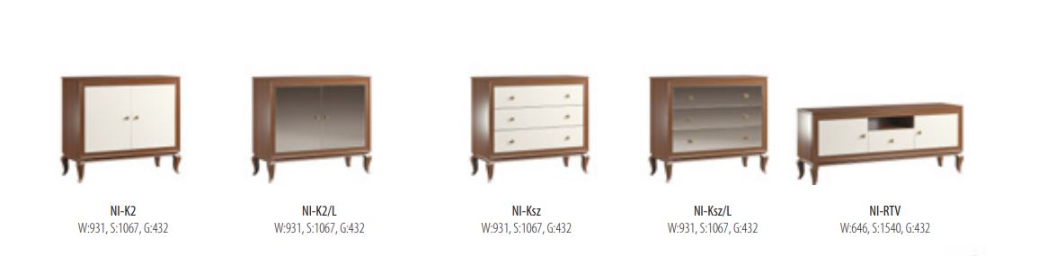 Minőségi elemes nappali- és étkezőbútor program háromféle front típussal, Lengyelország vezető bútorgyártójától. A bútorokat aprólékosan kidolgozott részletek, elegáns vonalvezetés jellemzi.