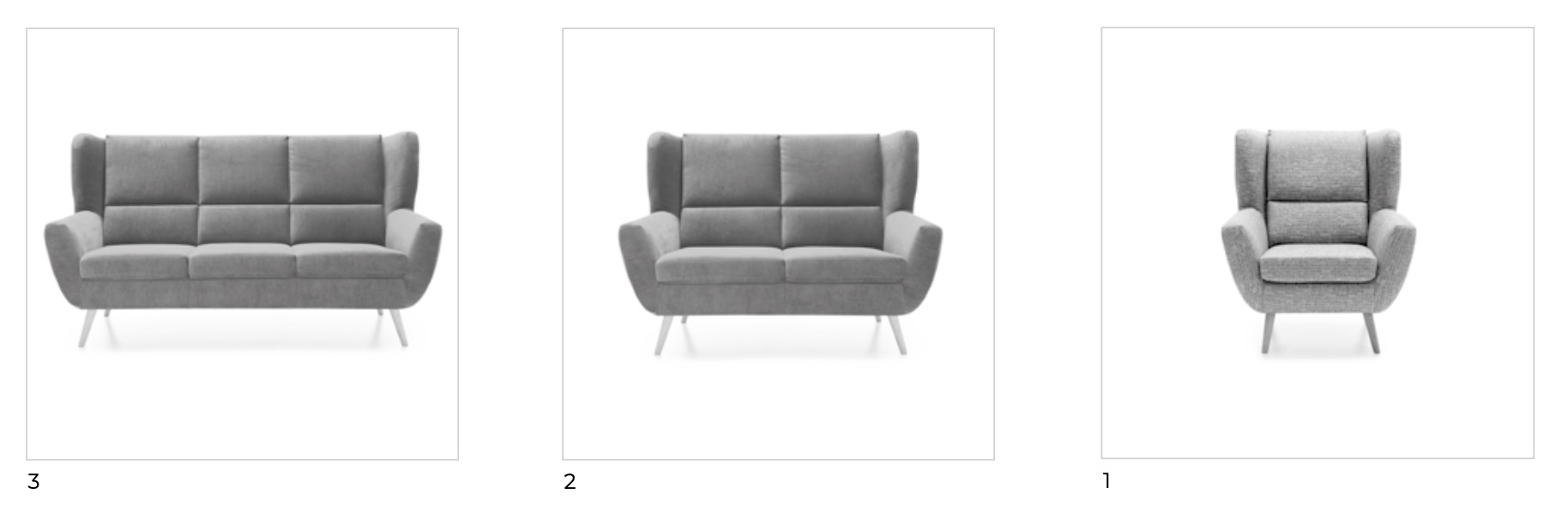 Skandináv stílusú két vagy háromüléses kanapé ágyfunkció nélkül. A kanapéhoz illő fotel is elérhető.