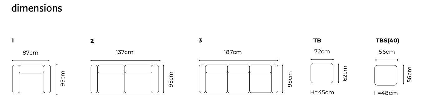 – puff: 72 x 62cm, 56 x 56cm