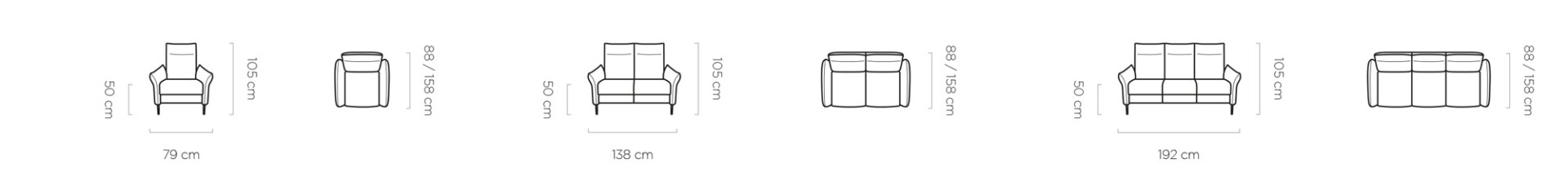 3 személyes ülő: 192 x 105 cm