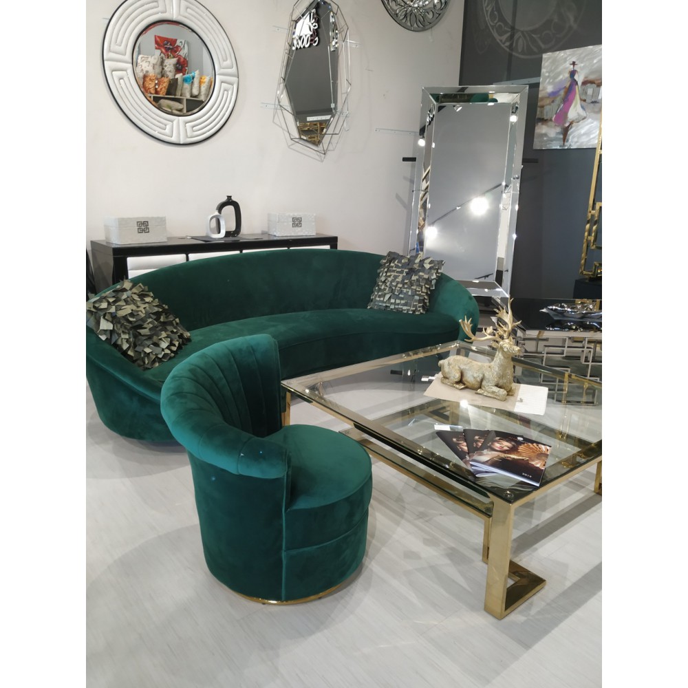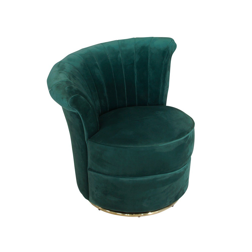 Elegáns forgó fotel trendi velvet-szövet bevonattal, arany színű talppal.