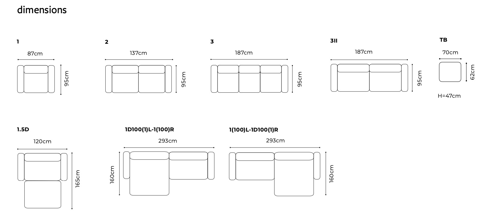 Anyaga: számos típusú és színárnyalatú szövettel, lemosható szövettel és valódi bőrrel is rendelhető.