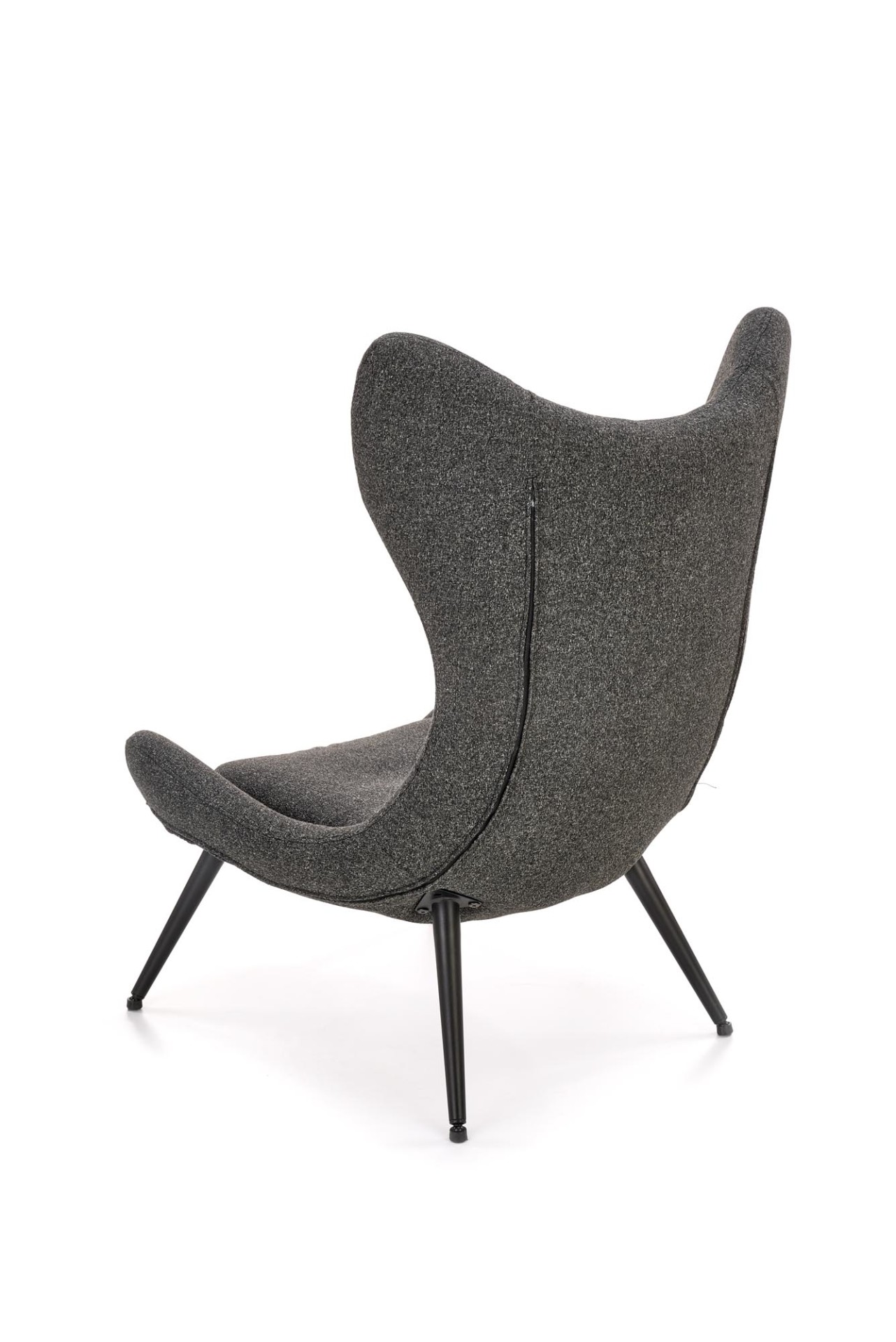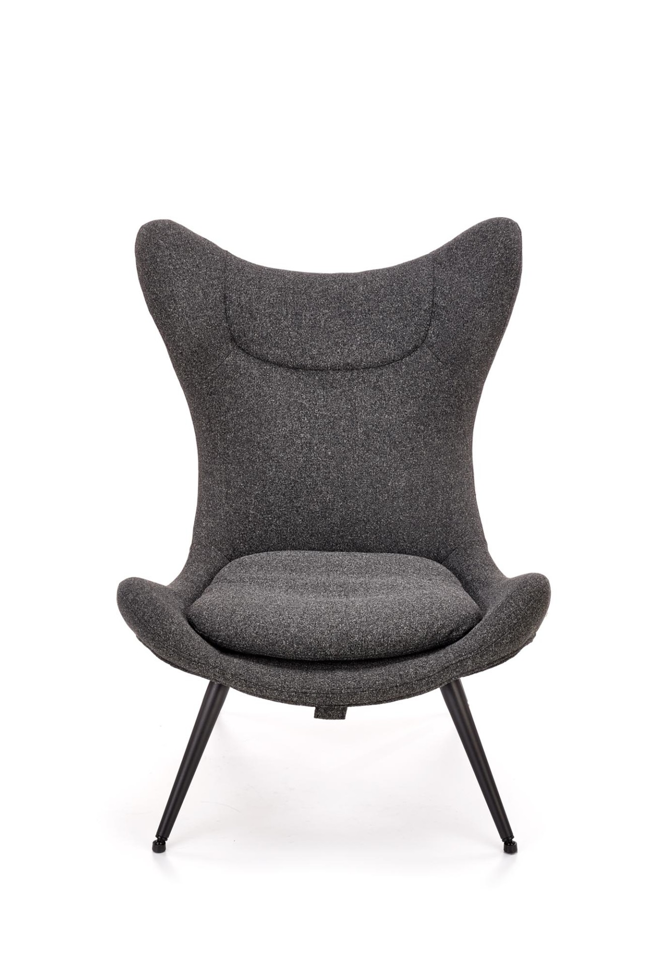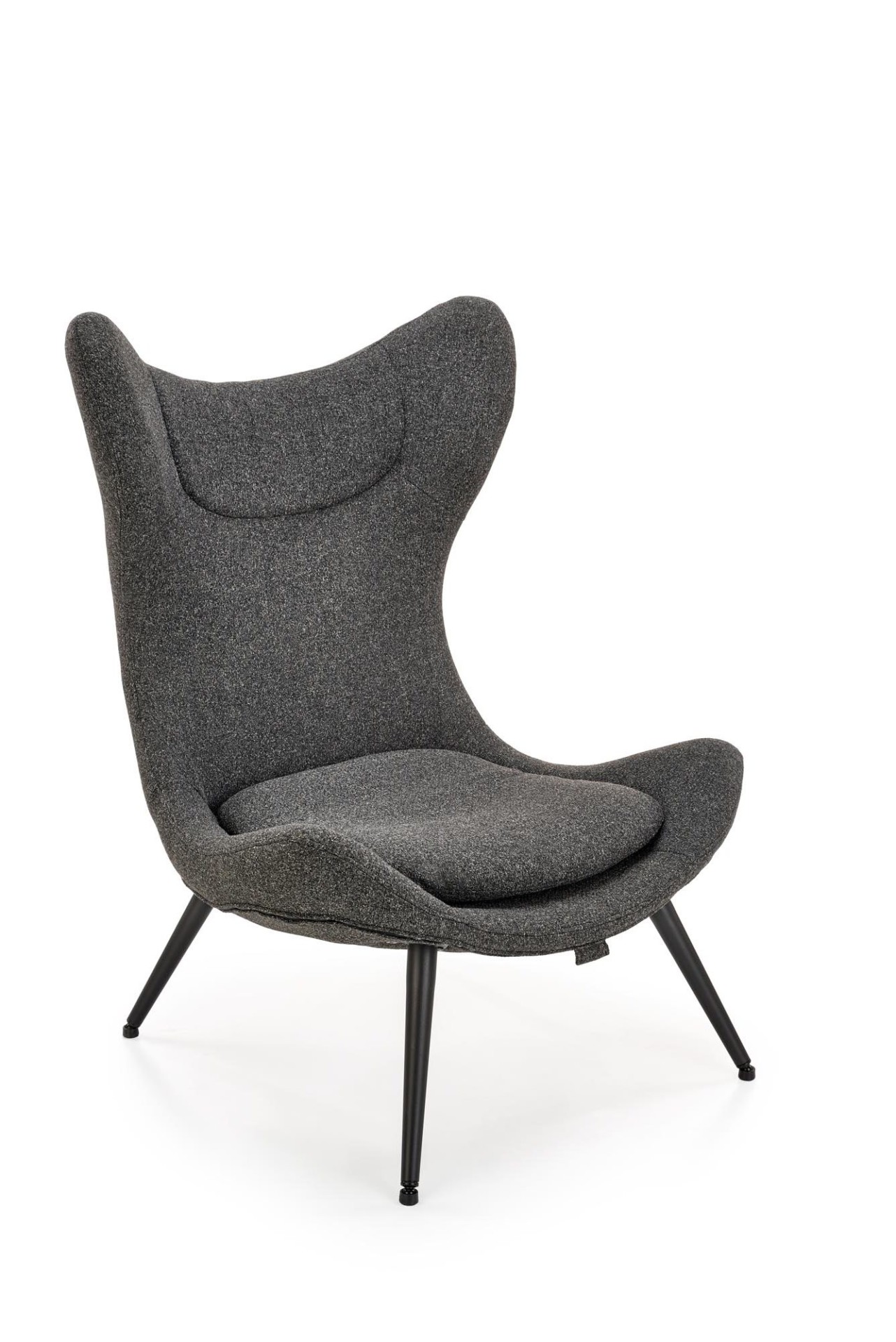 Trendi, kényelmes fotel porszórt acél lábakkal, magas, ívelt háttámlával.