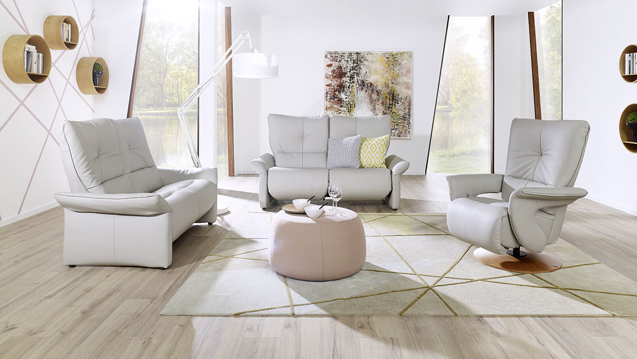 Prémium kategóriás, elemes német ülőgarnitúra számos praktikus kényelmi funkcióval, szövet vagy bőr bevonattal, nappaliba vagy irodába.