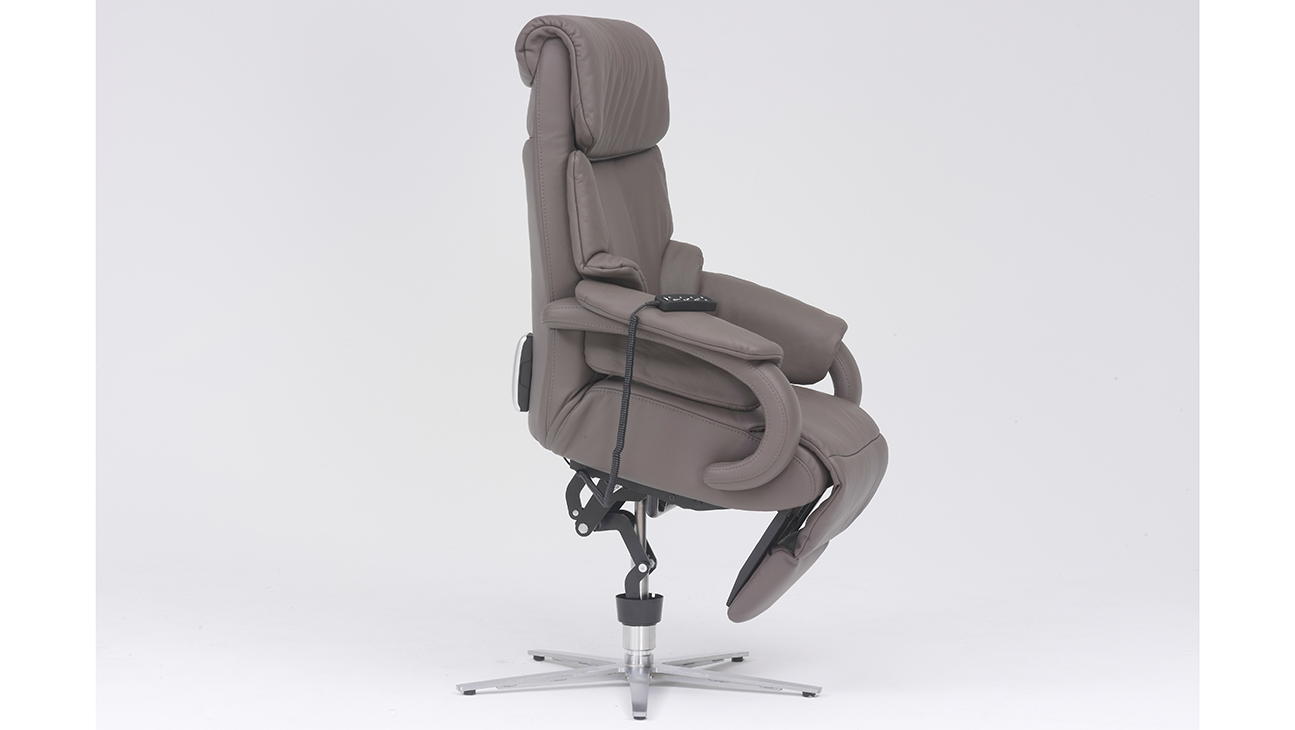 Prémium kategóriás, 360°-ban forgó német gyártású fotel manuális vagy motoros relax funkcióval, felállást segítő opcióval, választható lábtípussal, szövet vagy bőr bevonattal.