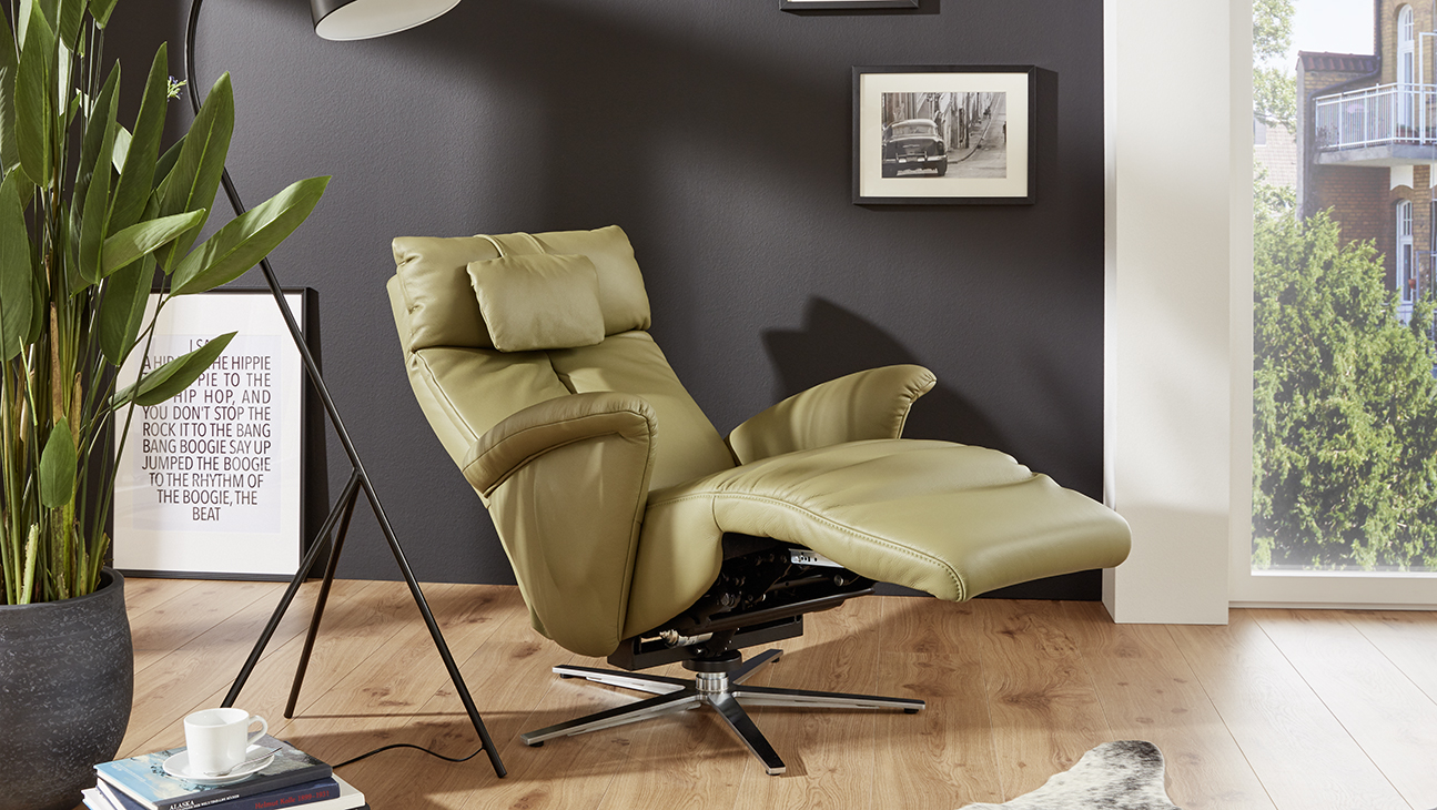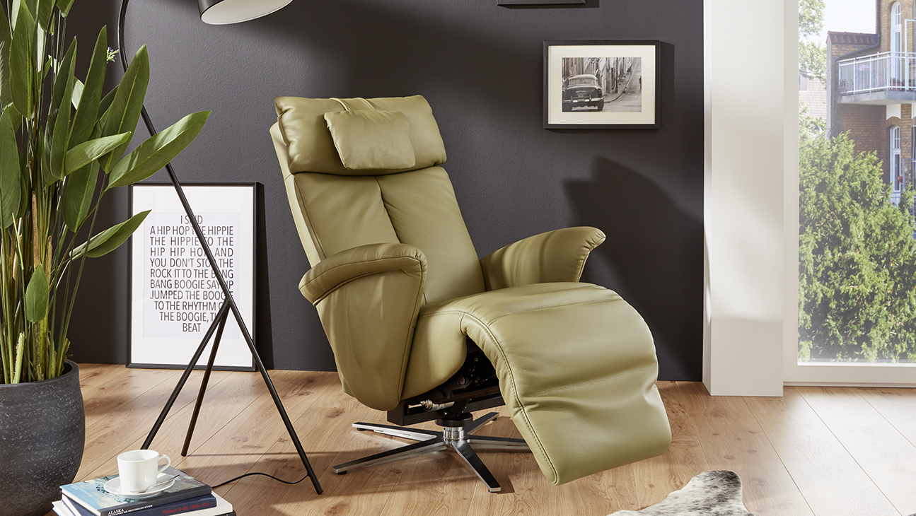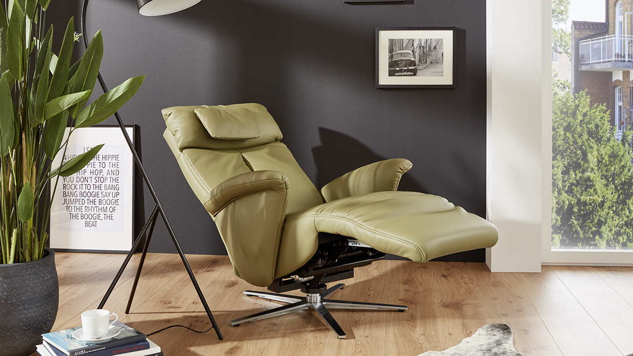 Prémium kategóriás, 360°-ban forgó német gyártású fotel manuális vagy motoros relax funkcióval, felállást segítő opcióval, választható lábtípussal, szövet vagy bőr bevonattal.