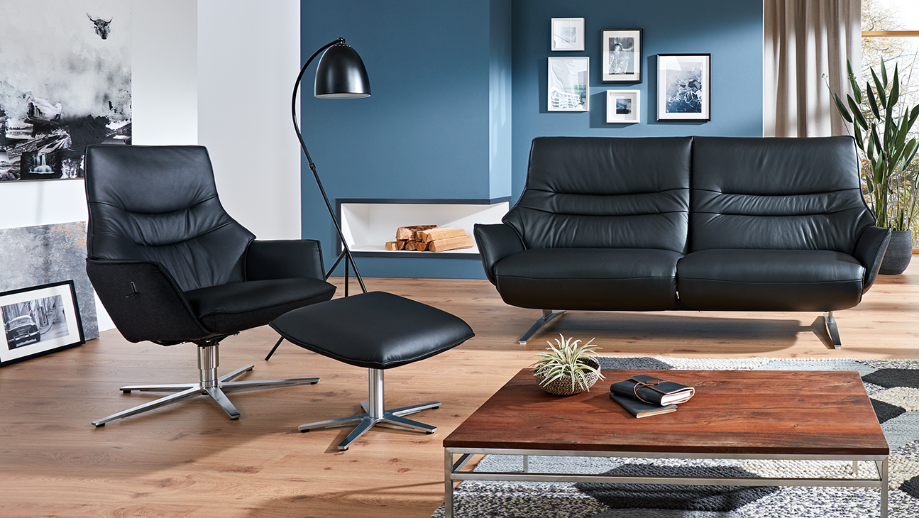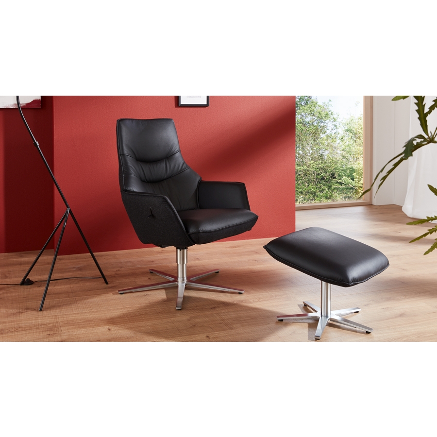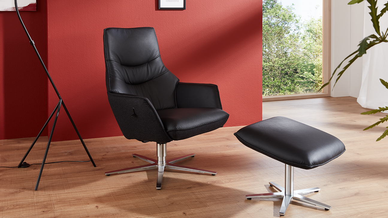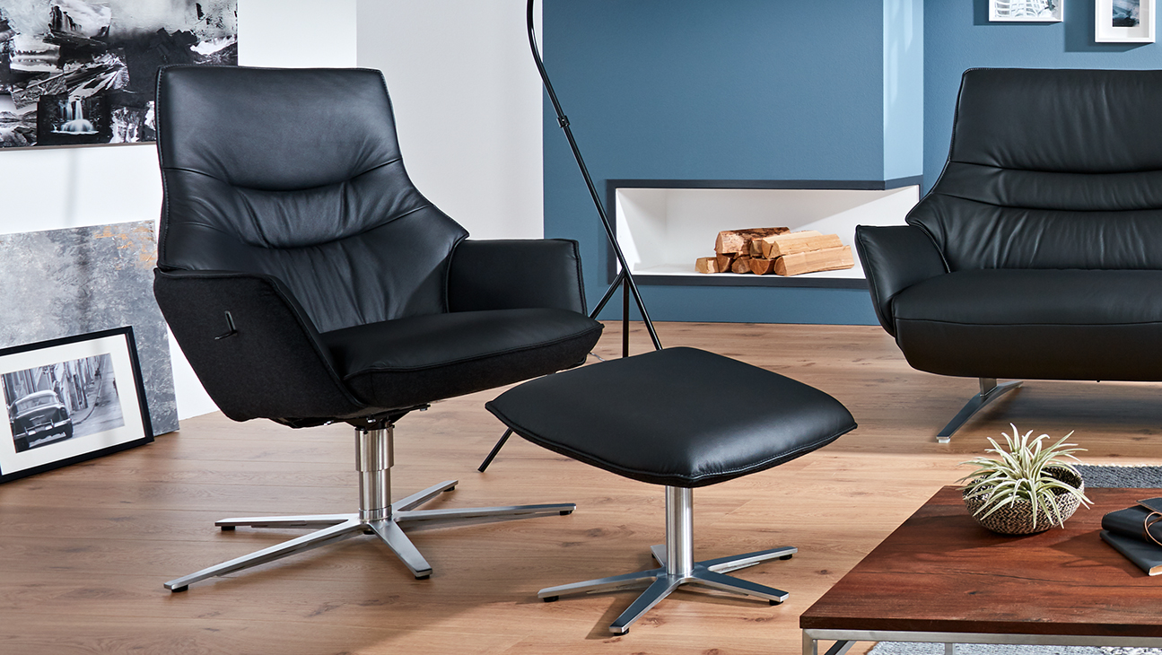Prémium kategóriás, 360°-ban forgó német gyártású fotel opcionális lábtartóval, állítható magassággal, szövet vagy bőr bevonattal.