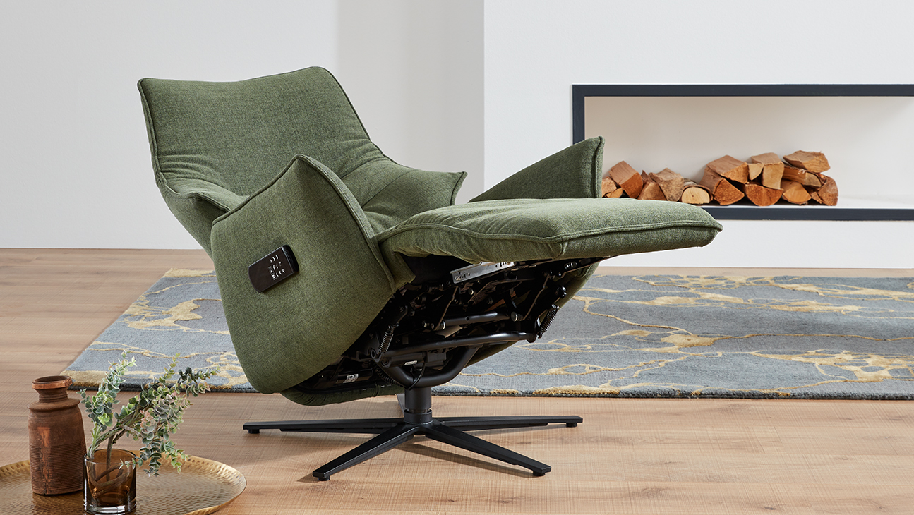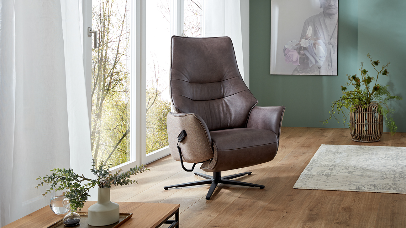 Prémium kategóriás, 360°-ban forgó német gyártású fotel manuális vagy motoros relax funkcióval, választható lábtípussal, szövet vagy bőr bevonattal.