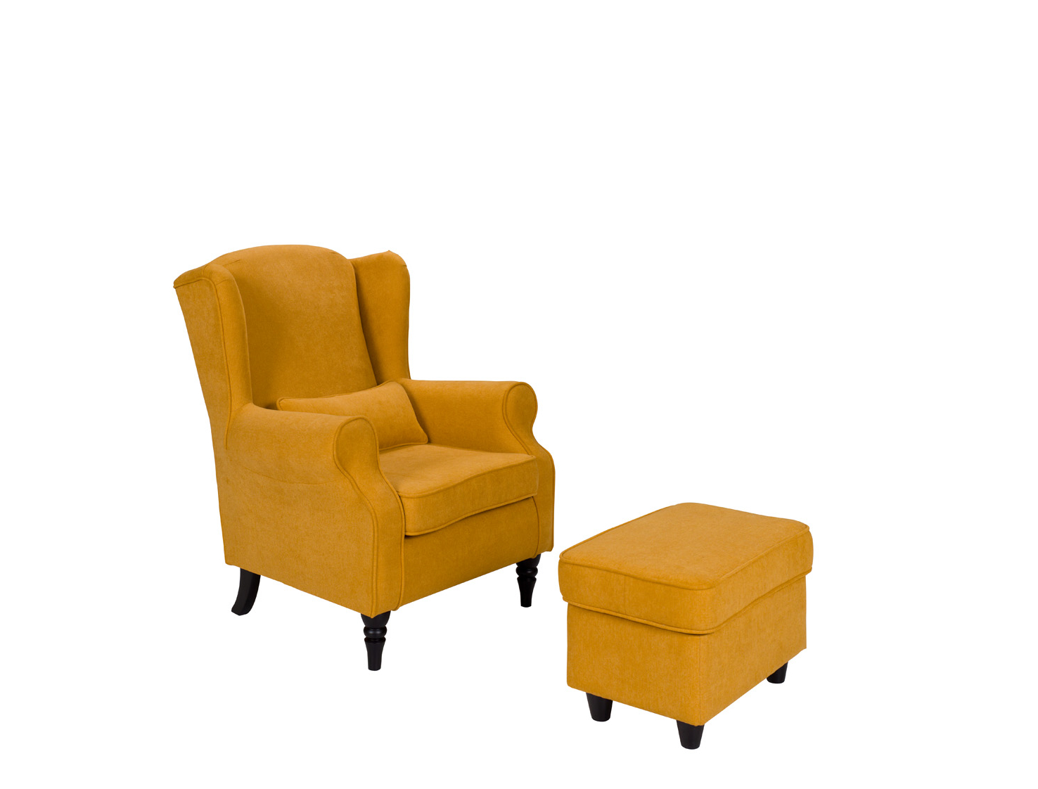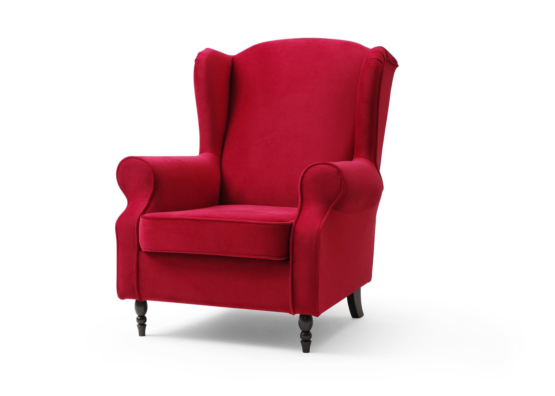 Minőségi, kényelmes füles fotel tömörfa lábakkal, opcionális lábtartóval.