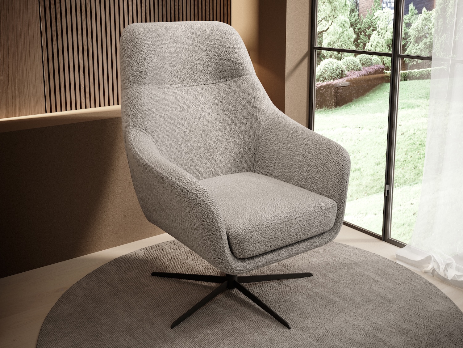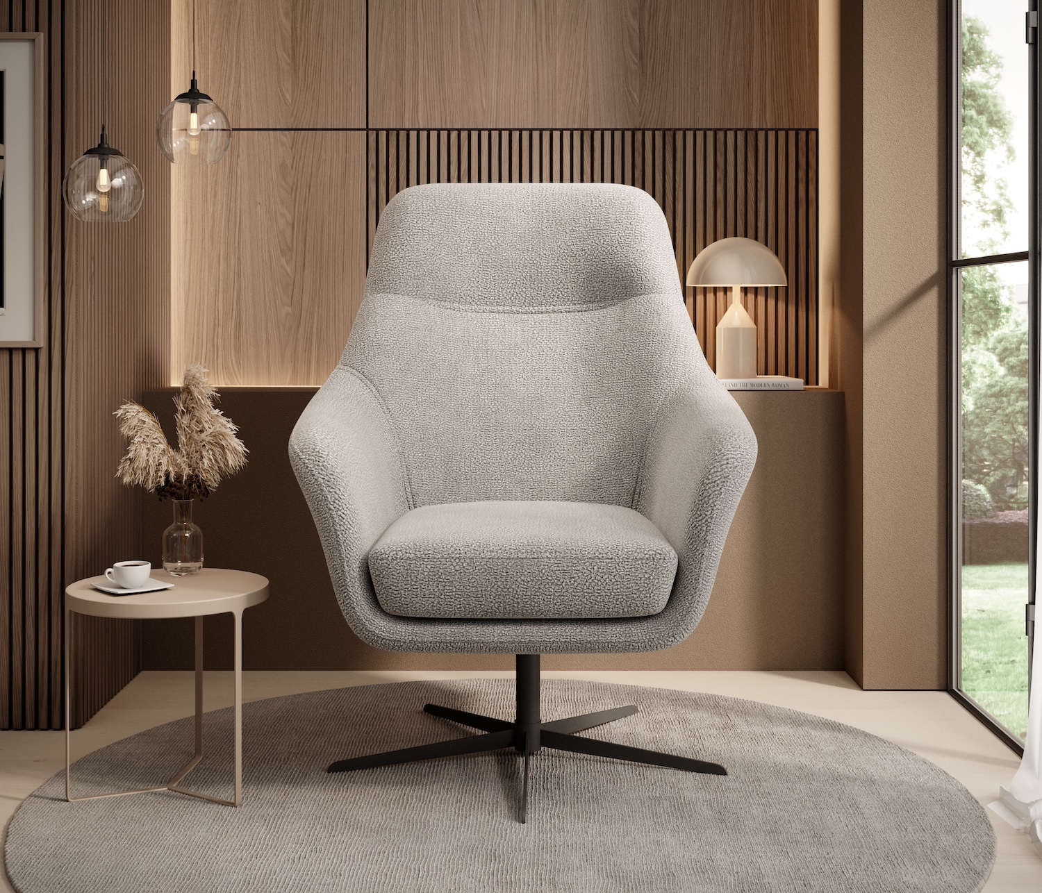 Stílusos megjelenésű forgó fotel.