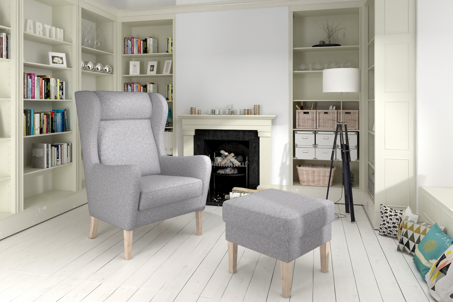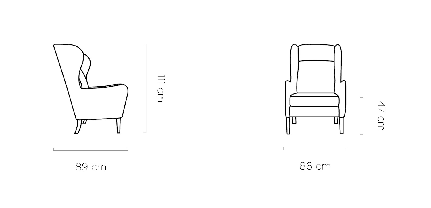 Letisztult megjelenésű füles fotel.