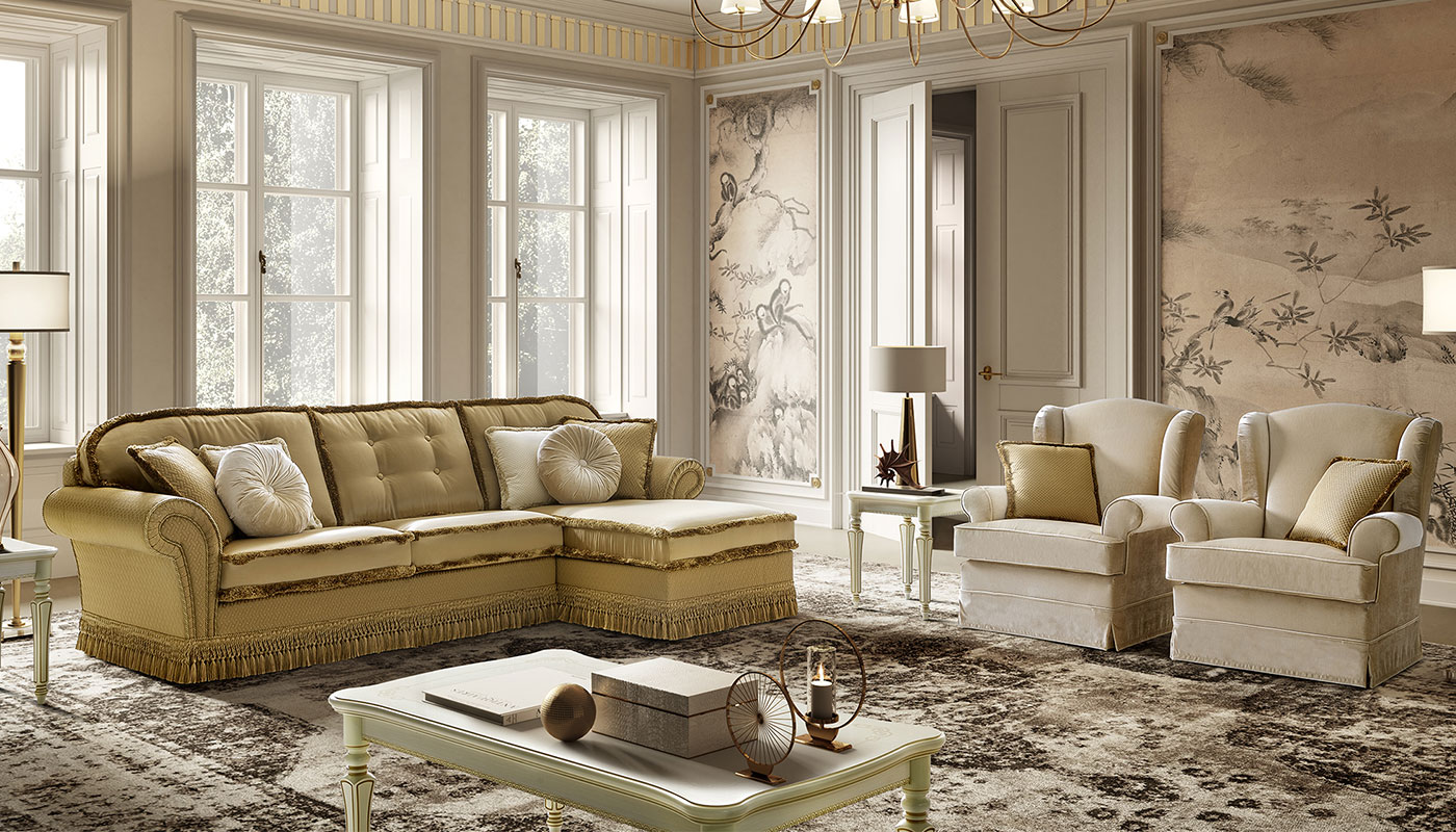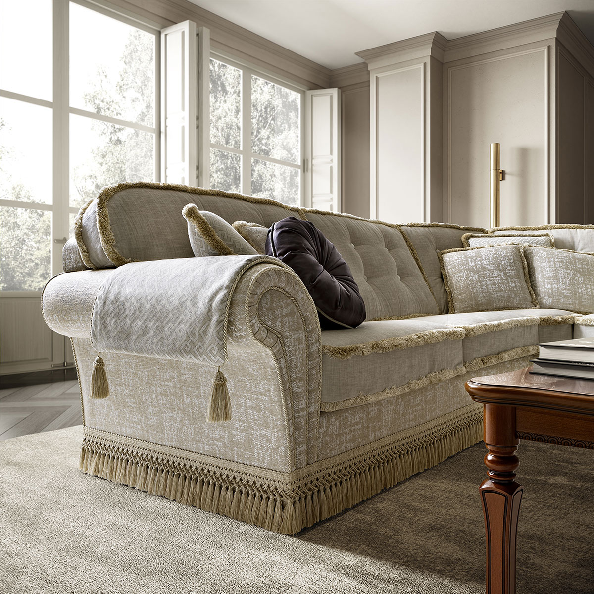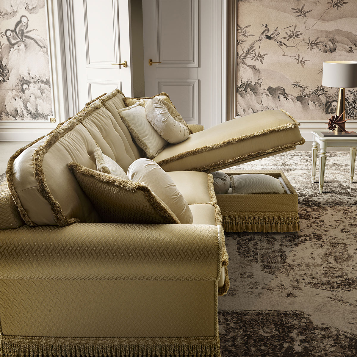 Prémium minőségű, klasszikus vonalvezetésű, elegáns olasz ülőgarnitúra opcionális ágyfunkcióval.