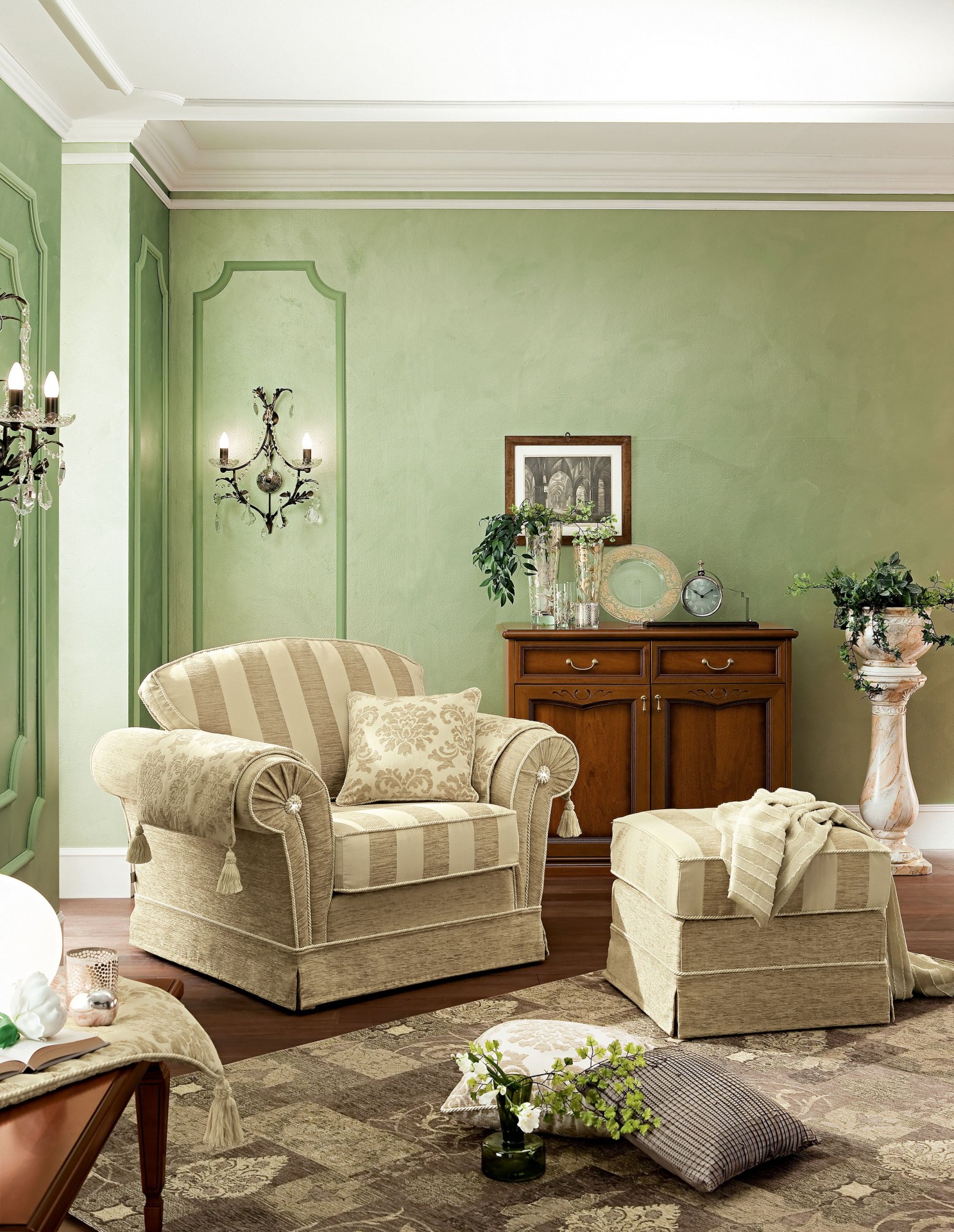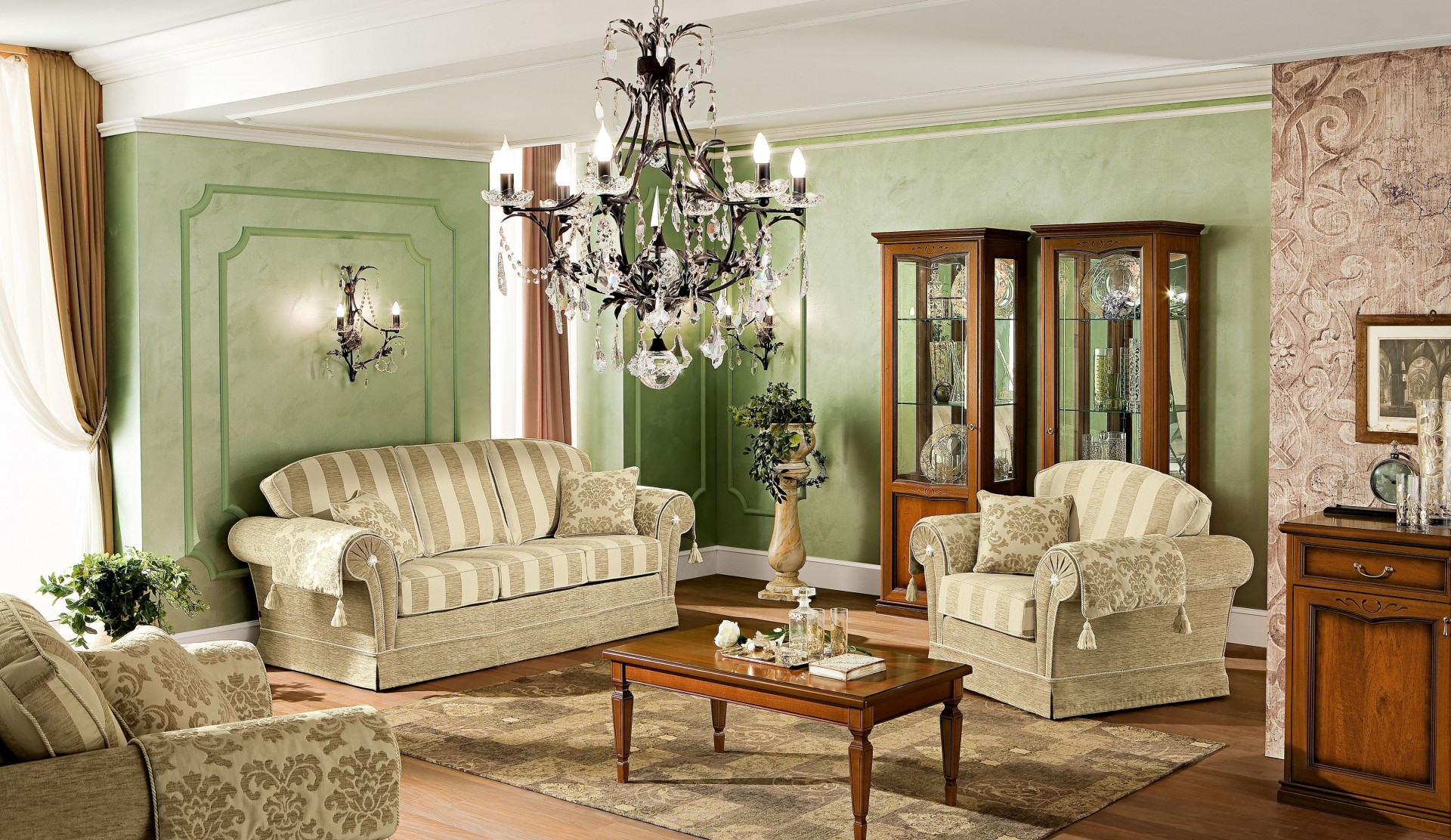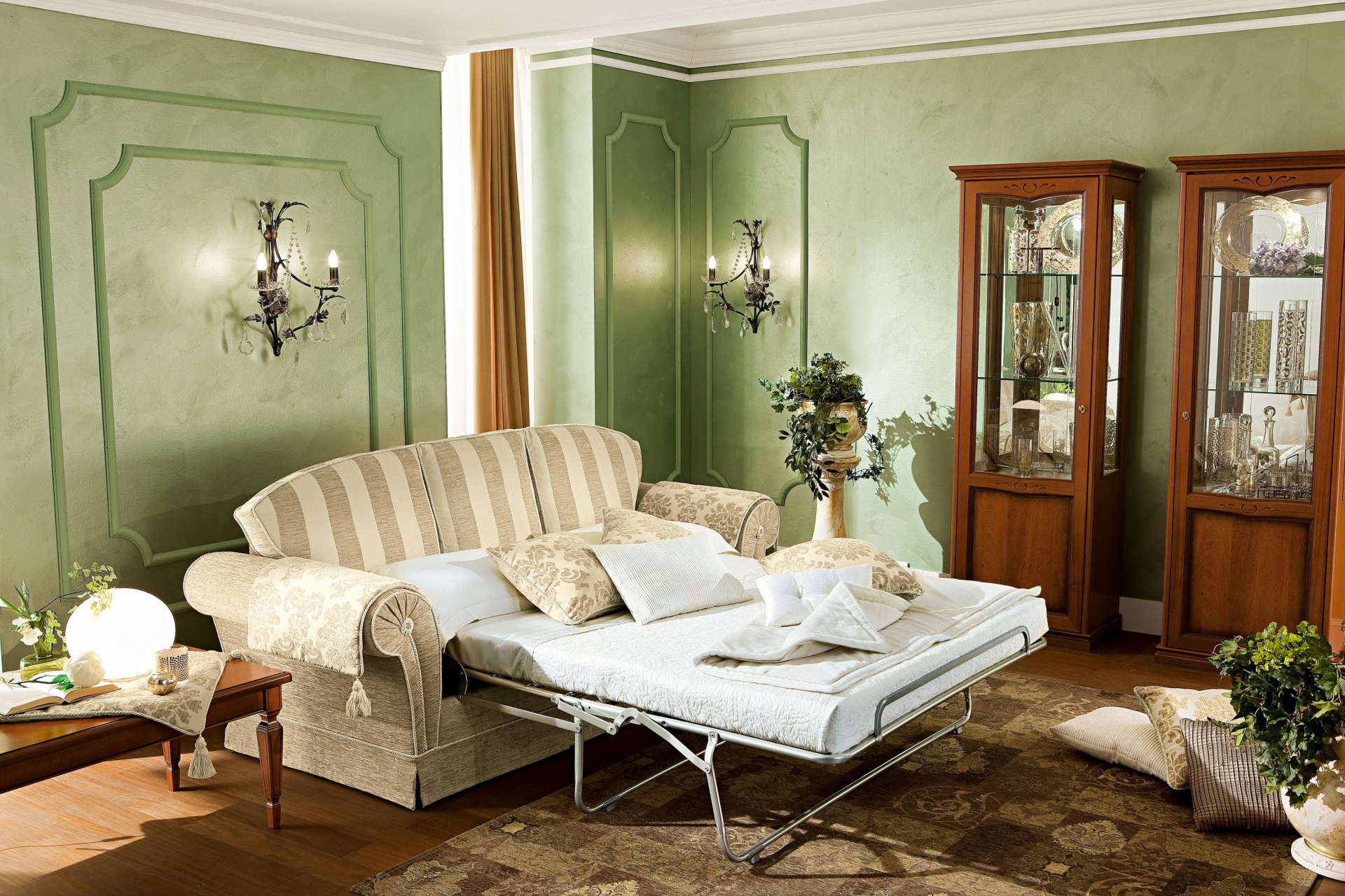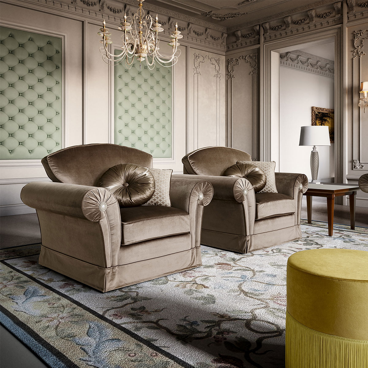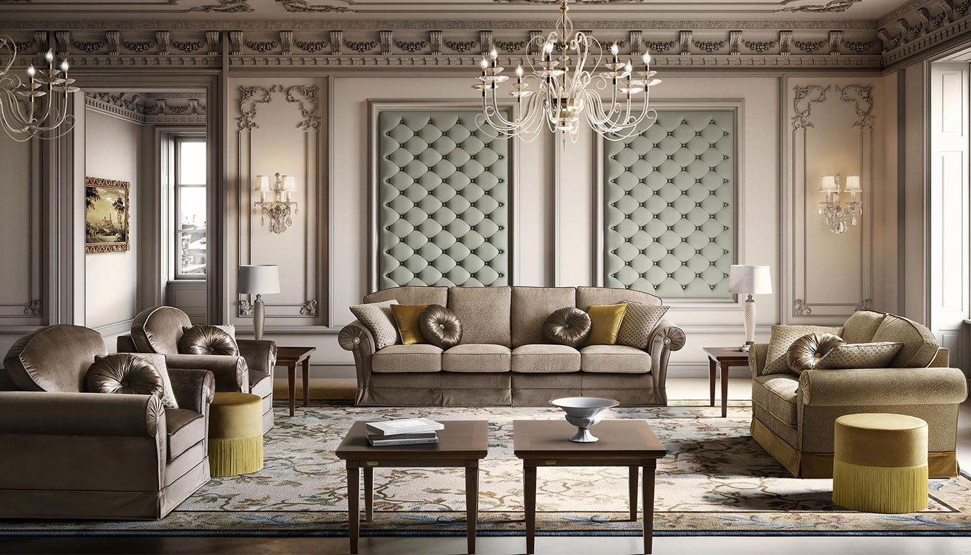 Prémium minőségű, klasszikus vonalvezetésű, elegáns olasz ülőgarnitúra opcionális ágyfunkcióval.