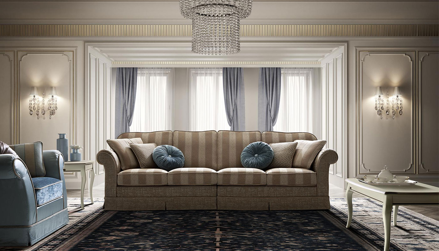 Prémium minőségű, klasszikus vonalvezetésű, elegáns olasz ülőgarnitúra opcionális ágyfunkcióval.