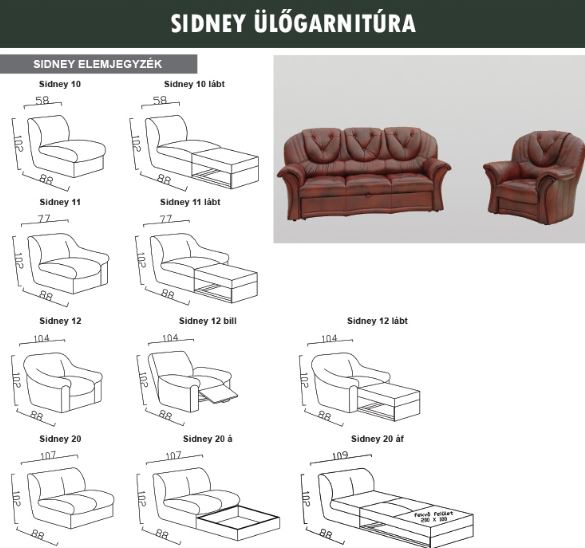 Anyaga: számos típusú és színárnyalatú szövettel, lemosható szövettel és valódi bőrrel is rendelhető.