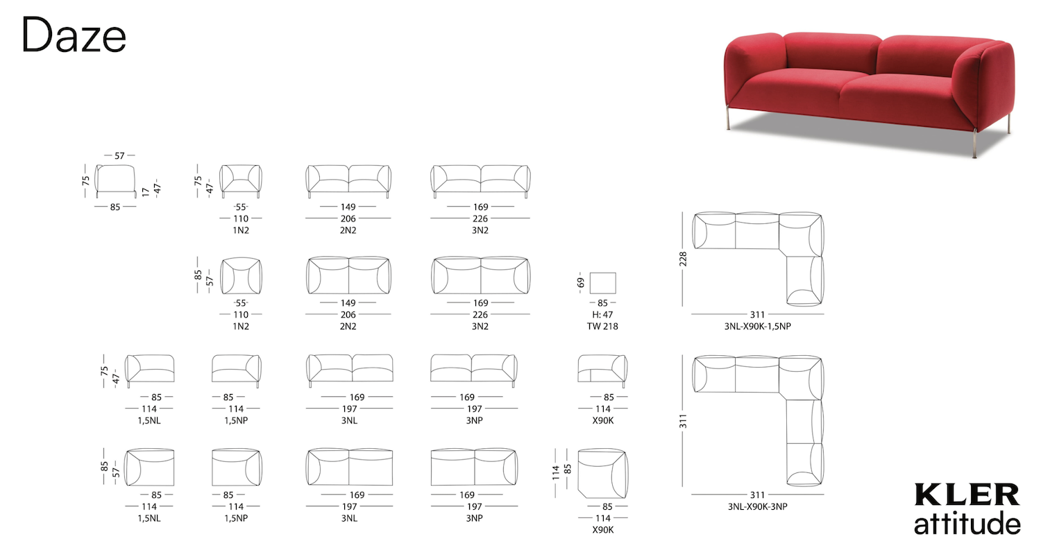 Anyaga: számos típusú és színárnyalatú szövettel, lemosható szövettel és valódi bőrrel is rendelhető.