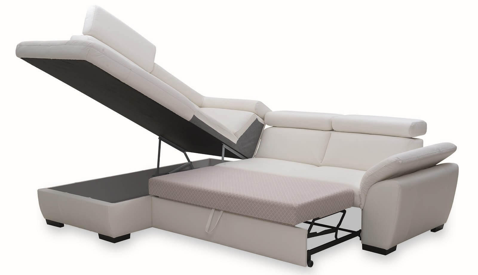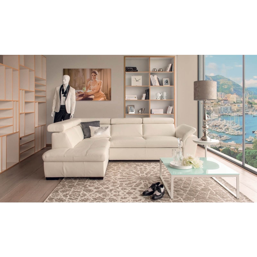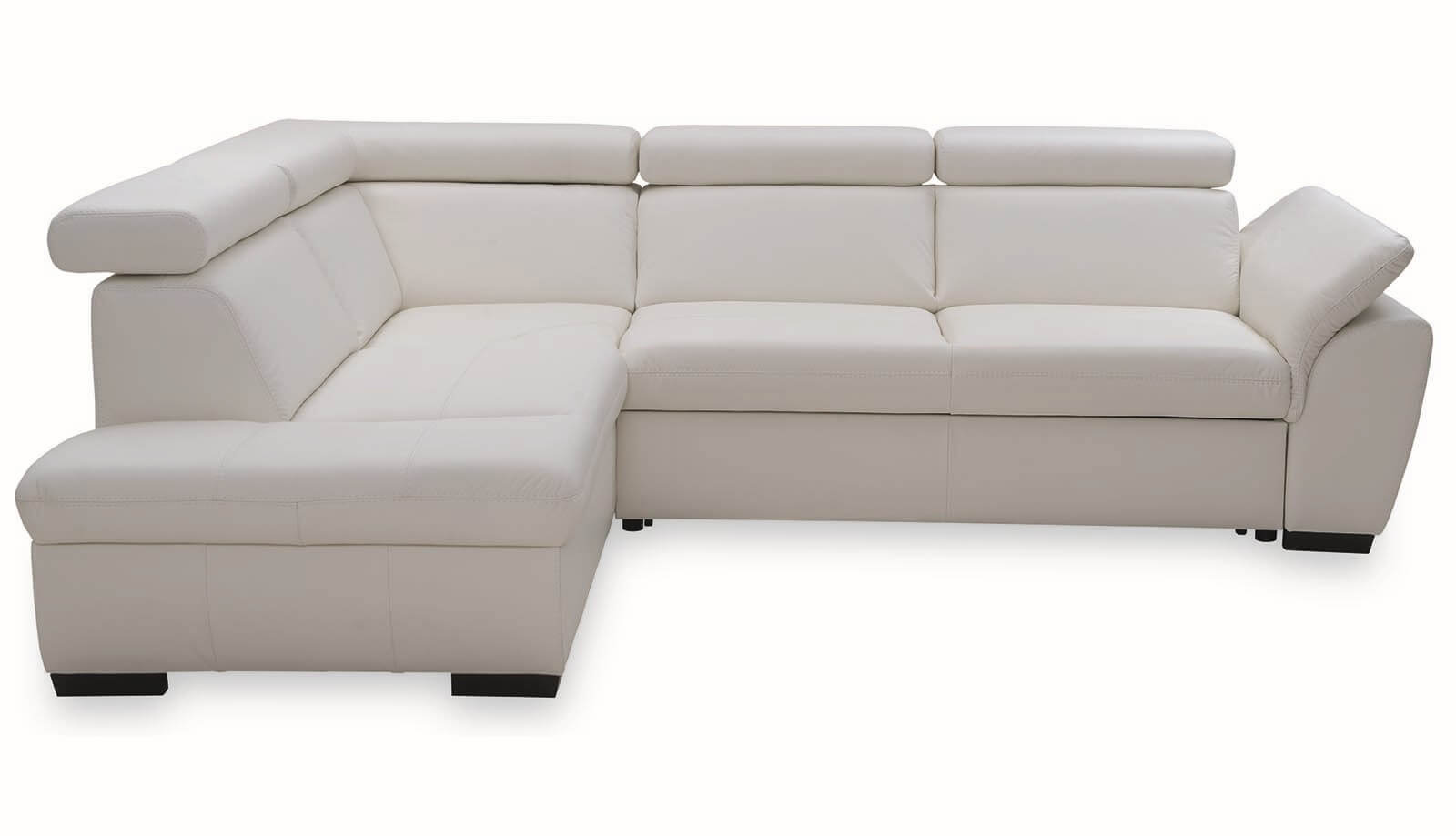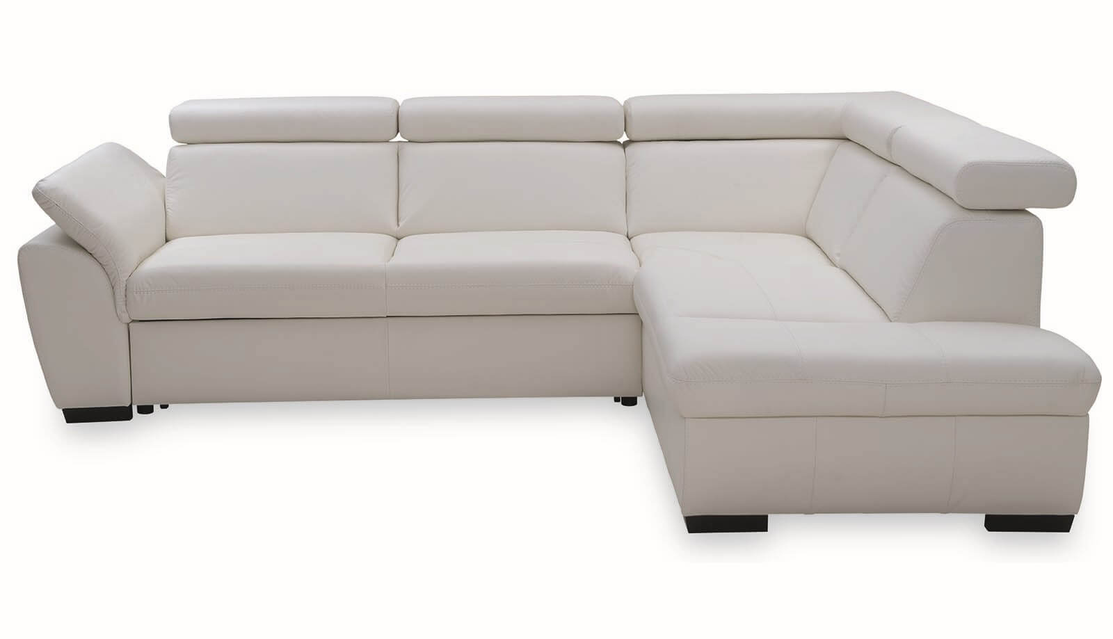 Minőségi sarok ülőgarnitúra állítható fej- és kartámlákkal, balos vagy jobbos kivitelben, ágyfunkcióval és ágyneműtartóval.