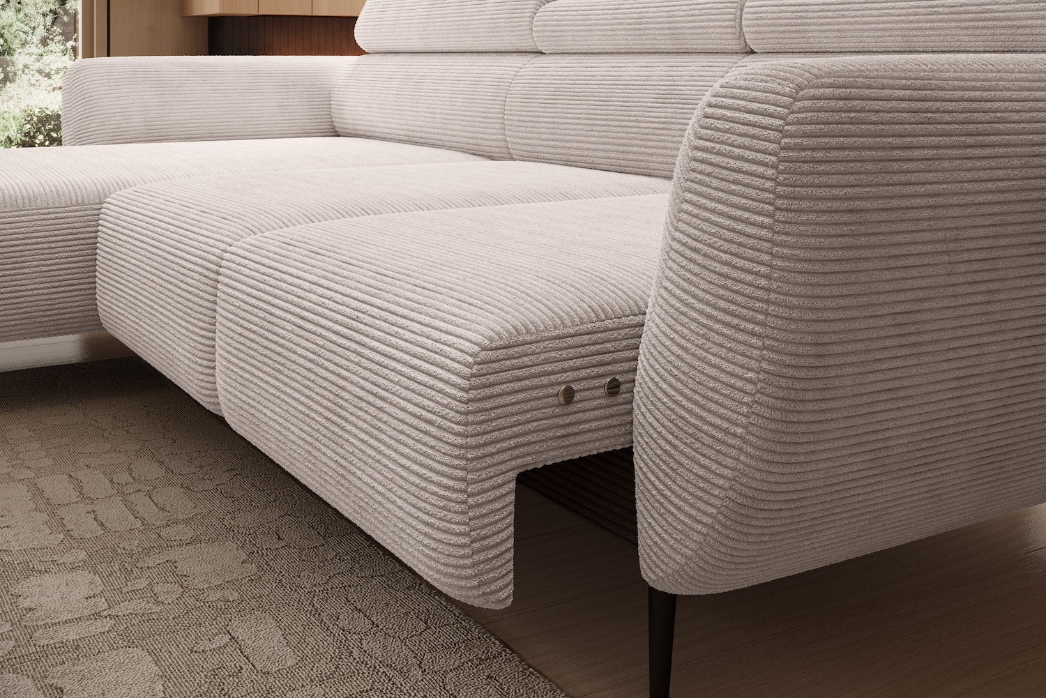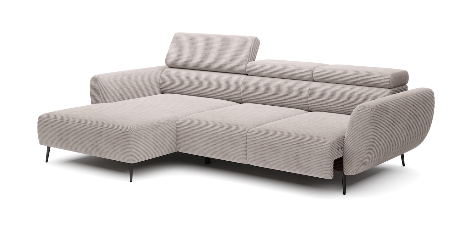 Stílusos megjelenésű sarok ülőgarnitúra kényelmi funkciókkal.
