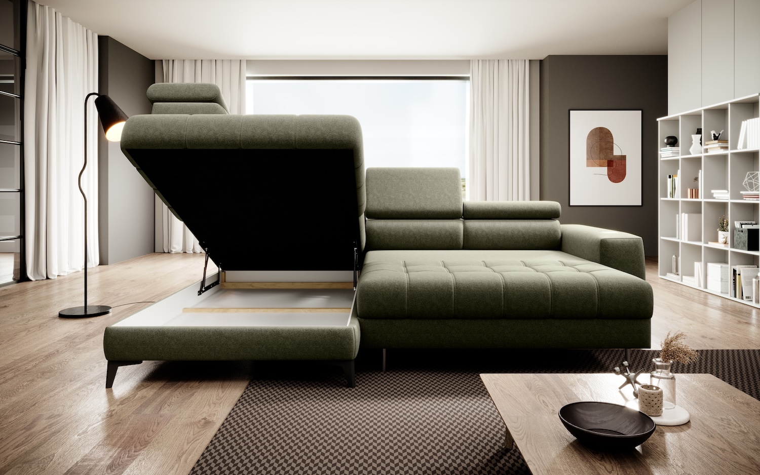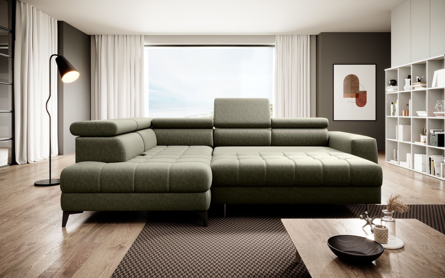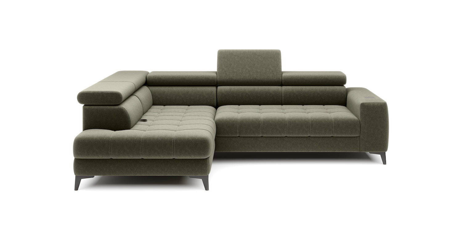 Stílusos megjelenésű sarok ülőgarnitúra kényelmi funkciókkal.