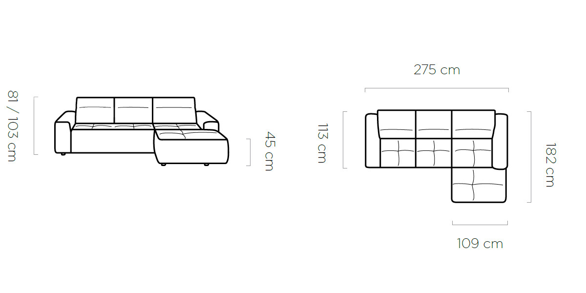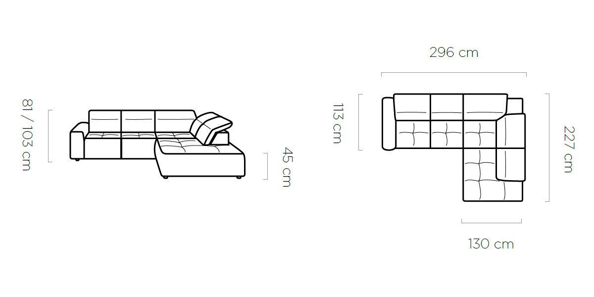 ‘L’: 296 x 227 cm, fekvőfelület: 88 x 216 cm