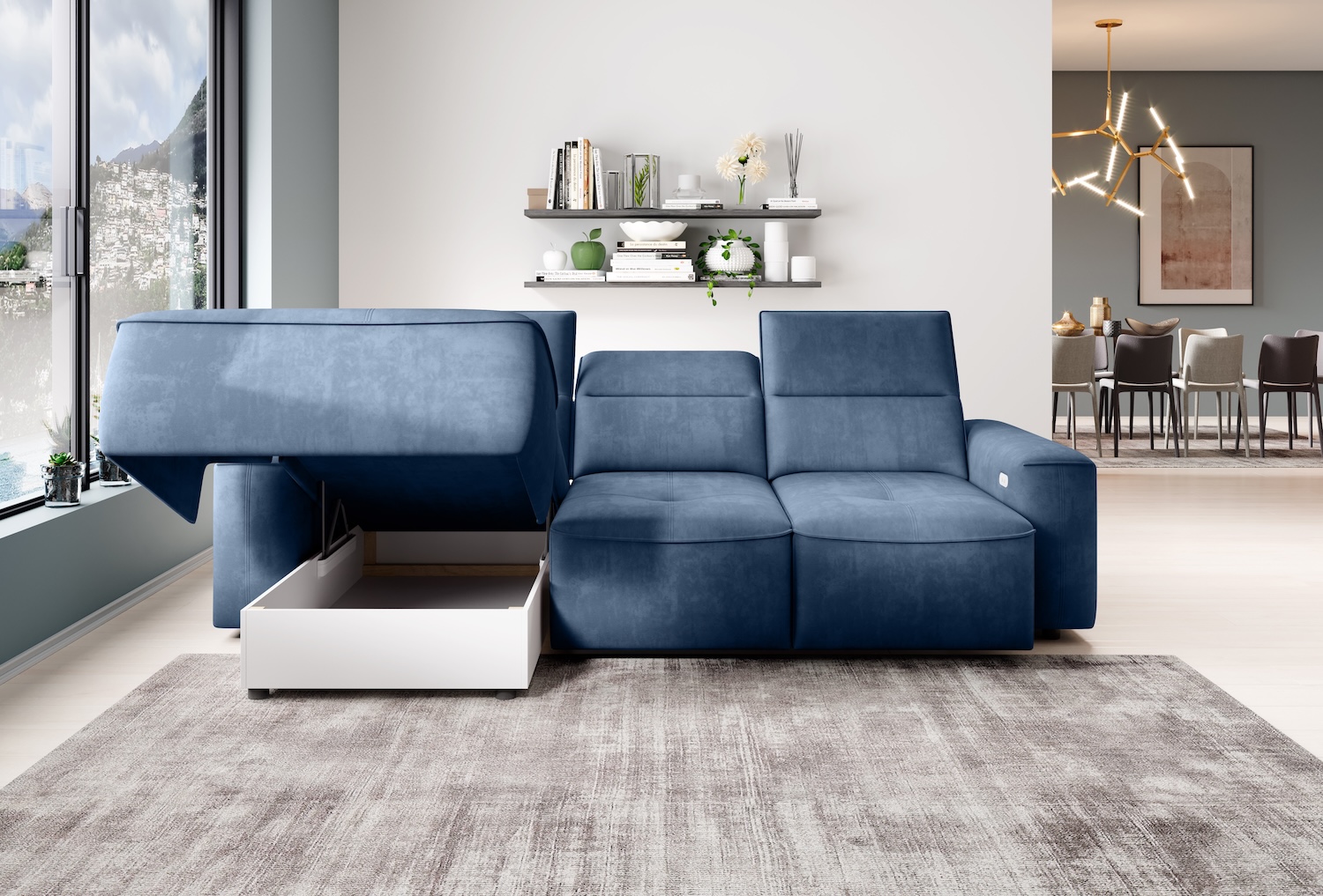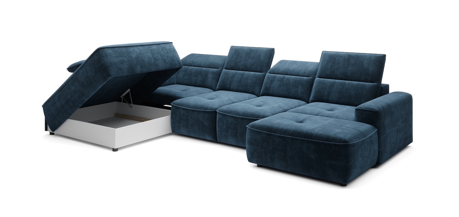 Stílusos megjelenésű sarok ülőgarnitúra kényelmi funkciókkal, 3 féle méretben.