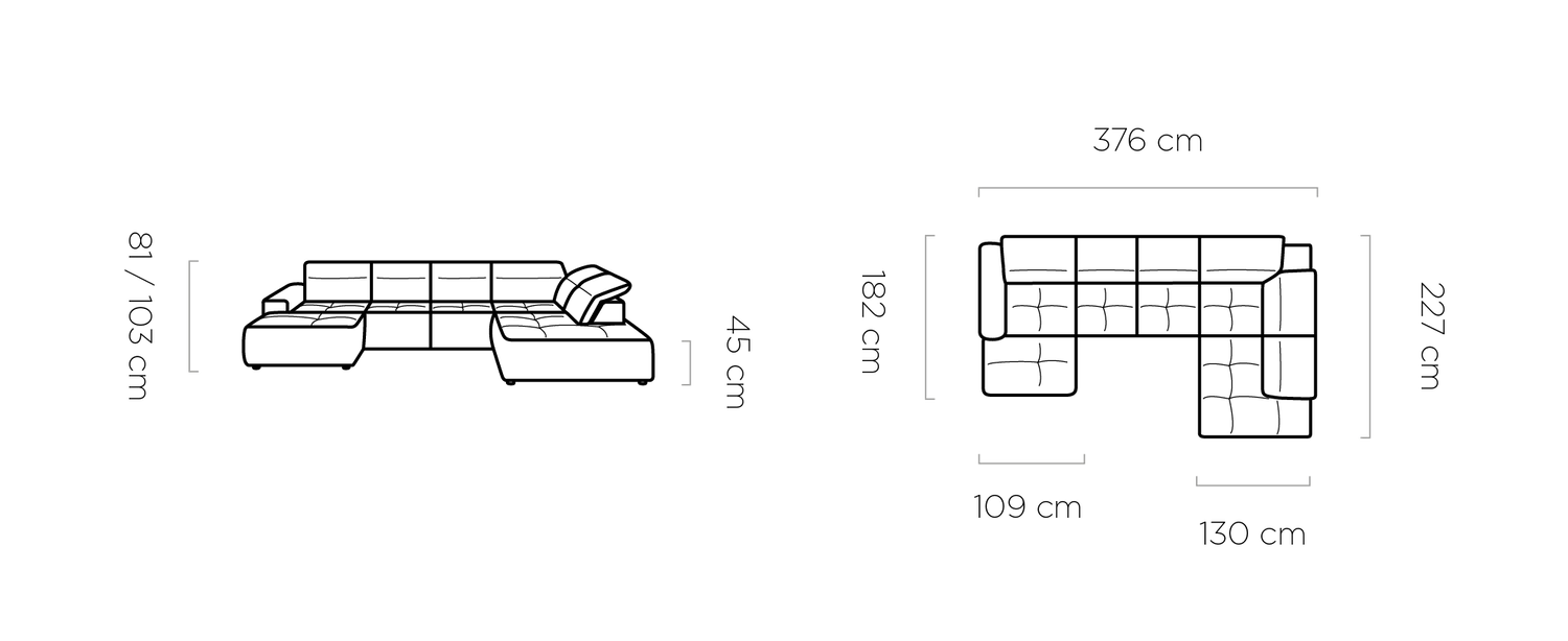 ‘XL’: 182 x 376 x 227 cm, fekvőfelület: 88 x 296 cm