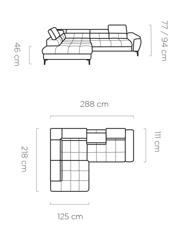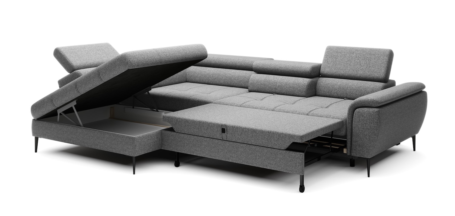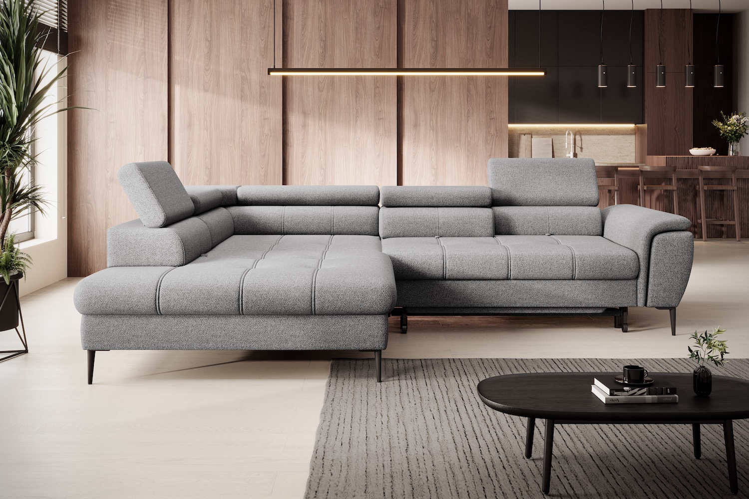 Stílusos megjelenésű sarok ülőgarnitúra kényelmi funkciókkal.