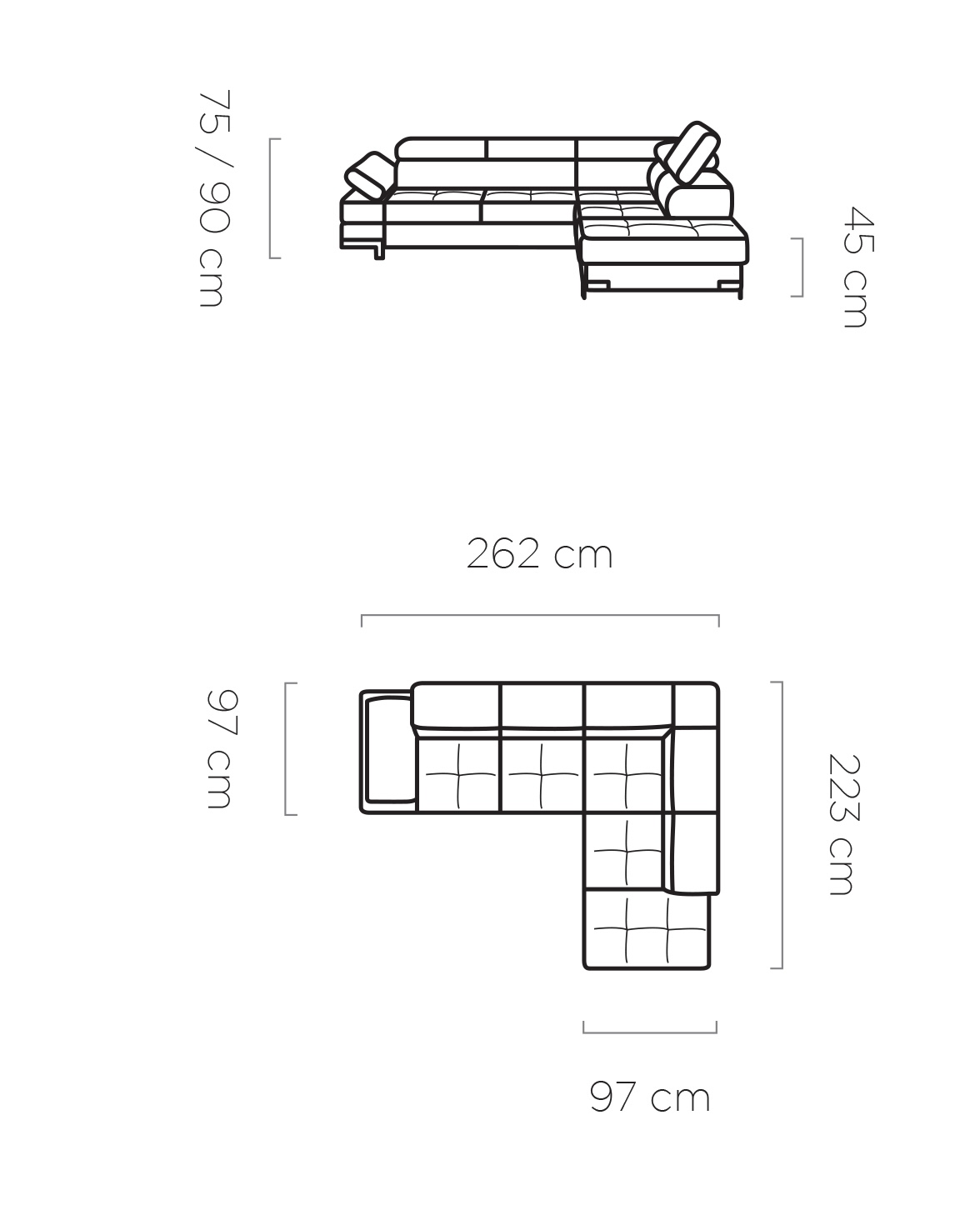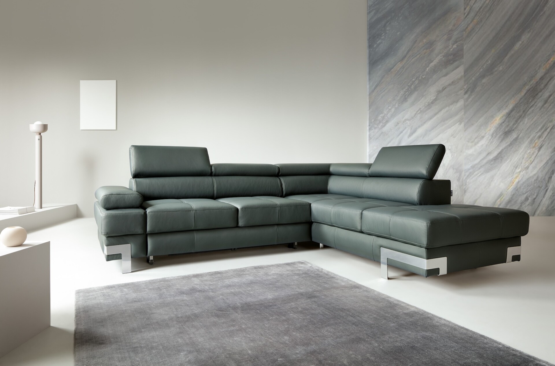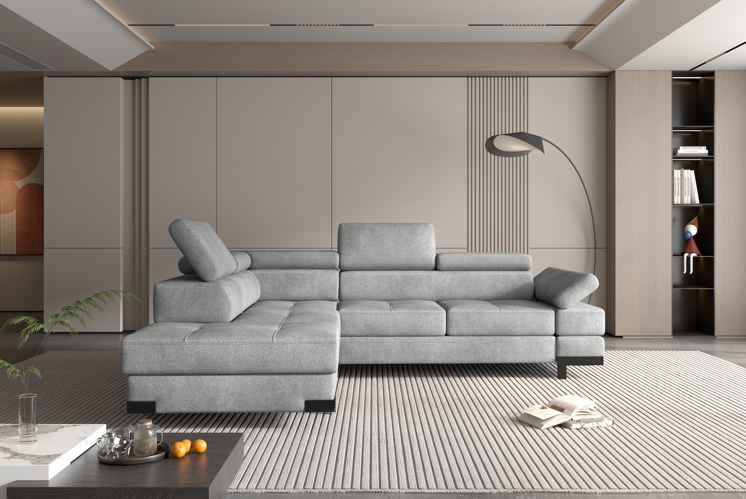 Stílusos megjelenésű sarok ülőgarnitúra kényelmi funkciókkal, 2 féle méretben.