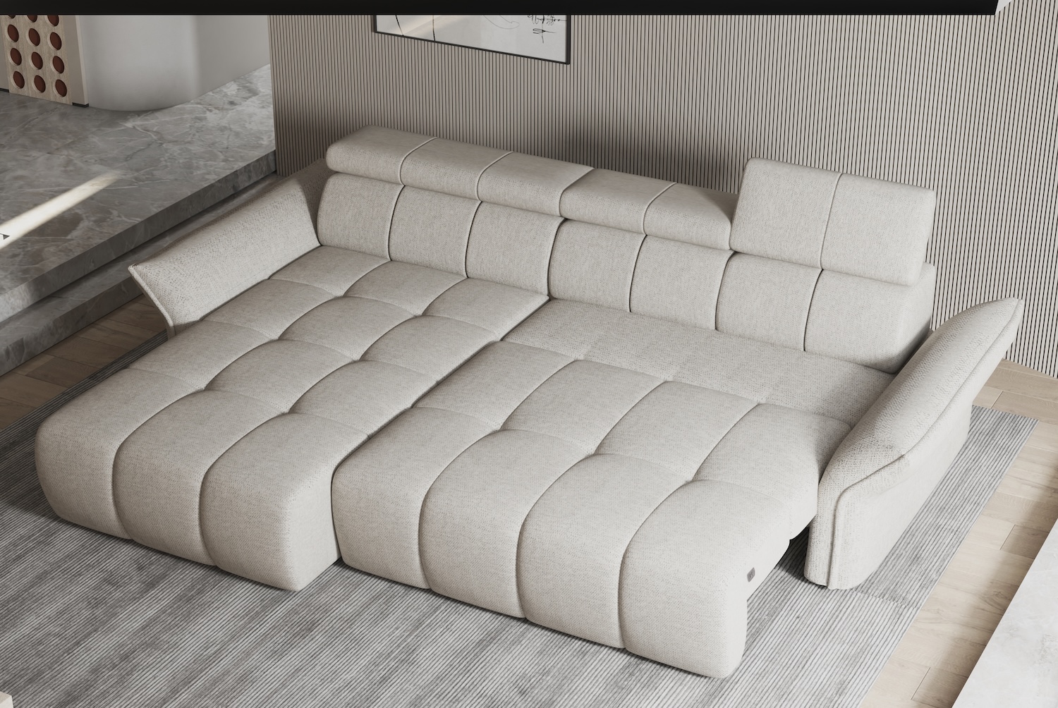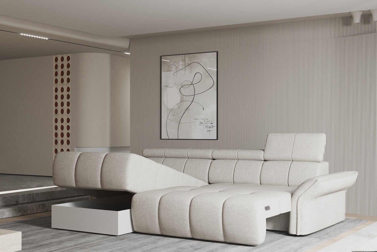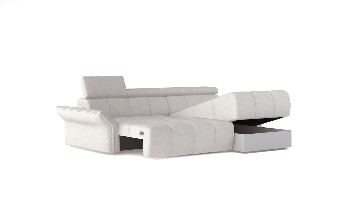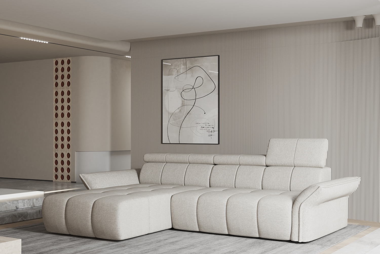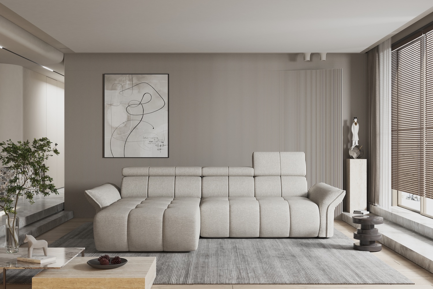 Stílusos megjelenésű sarok ülőgarnitúra kényelmi funkciókkal.