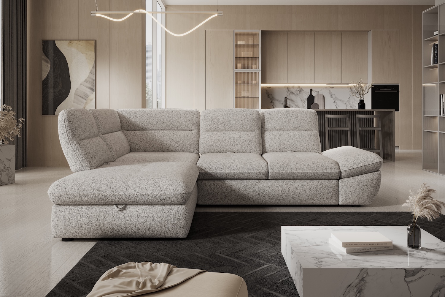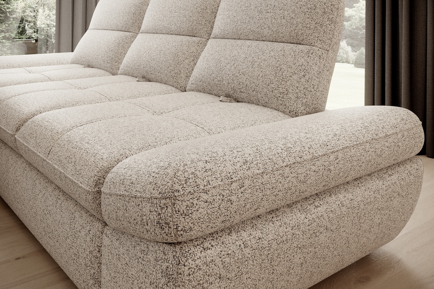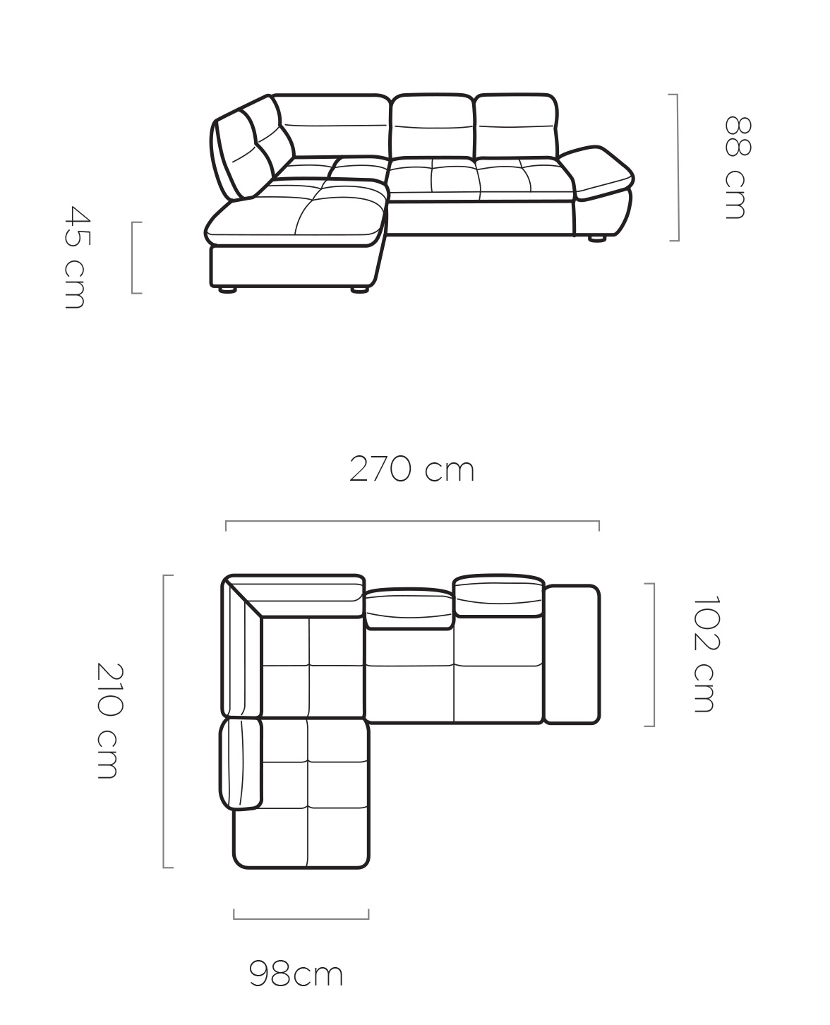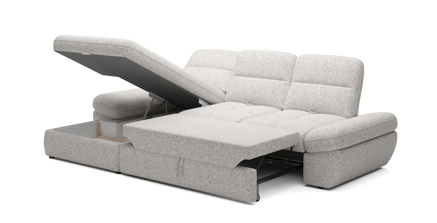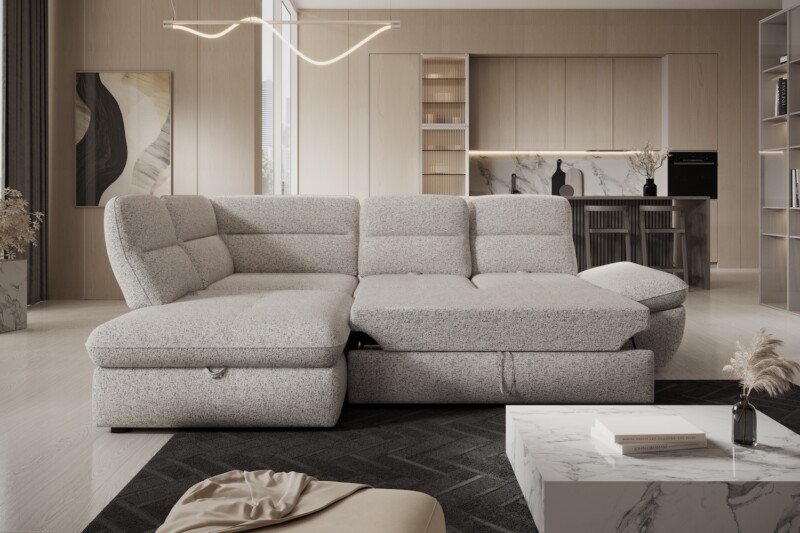 Stílusos megjelenésű sarok ülőgarnitúra kényelmi funkciókkal, 2 féle méretben.