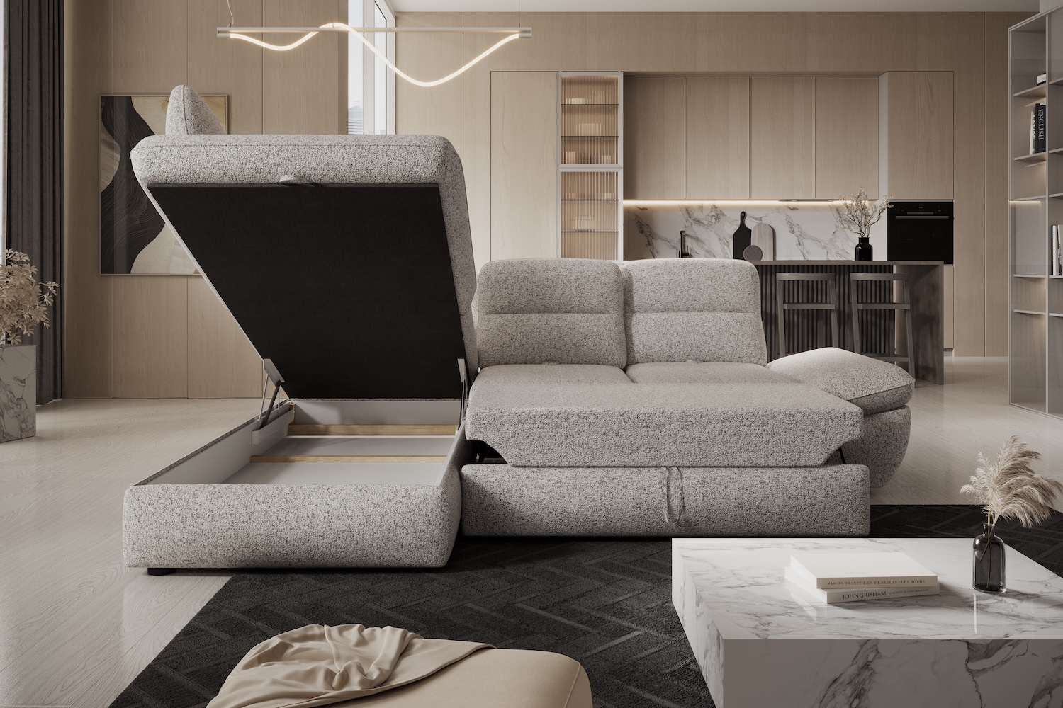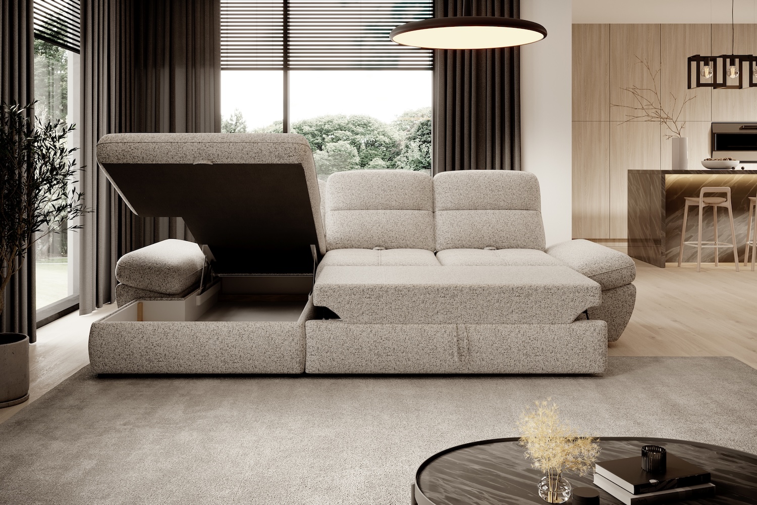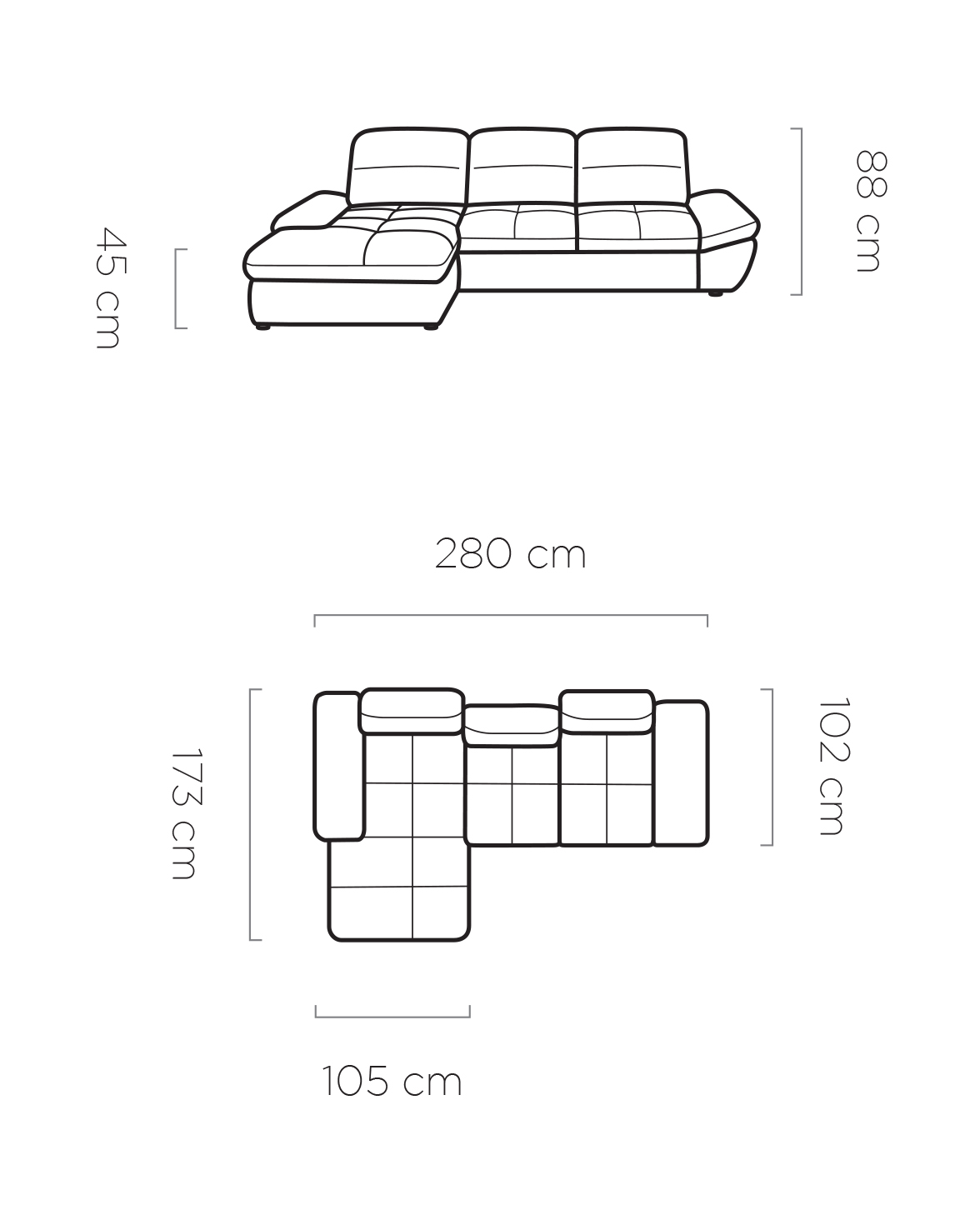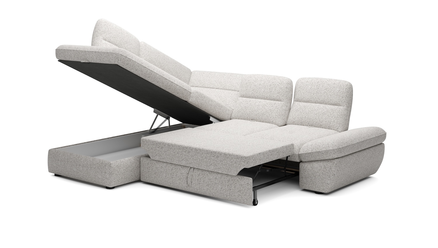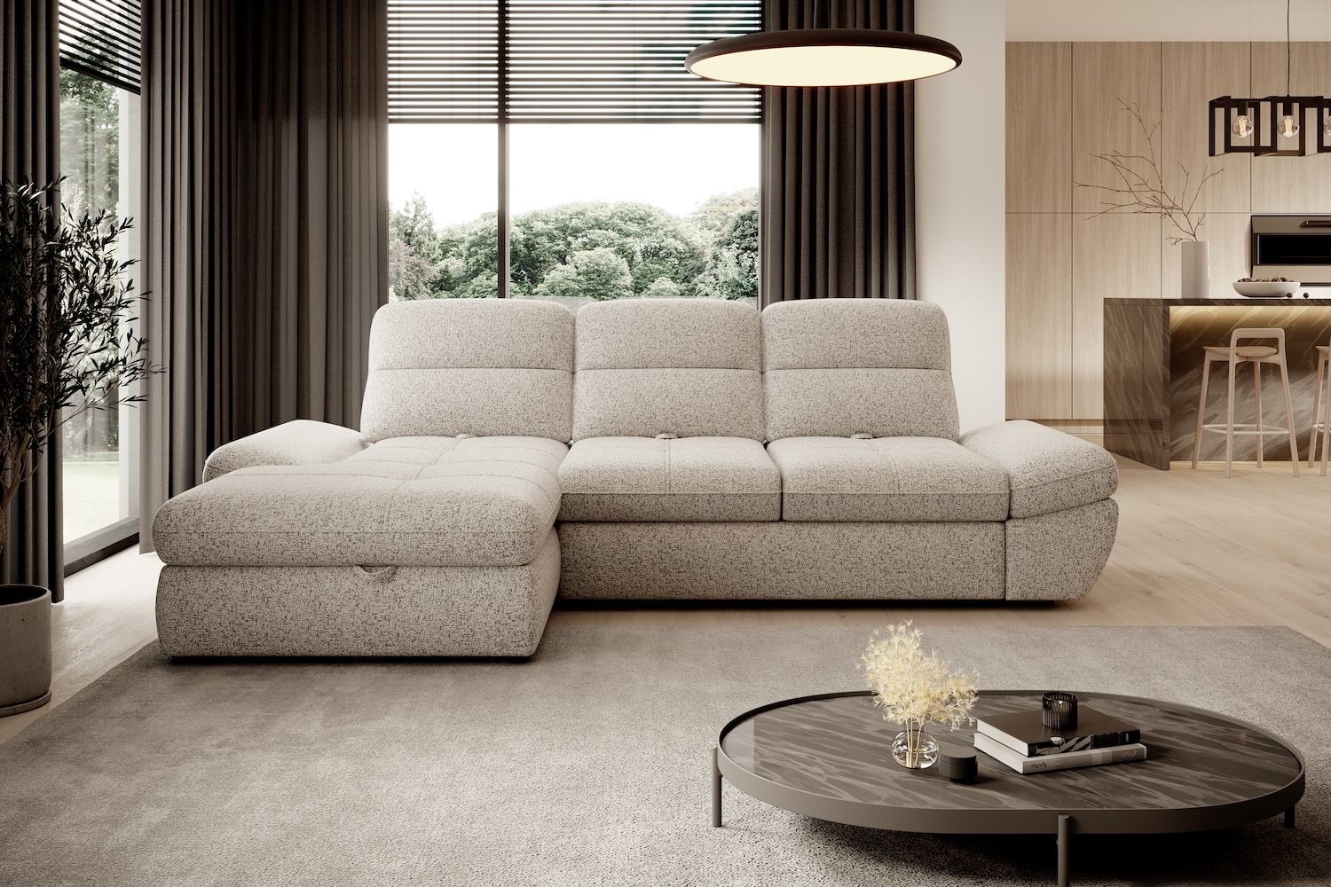 Stílusos megjelenésű sarok ülőgarnitúra kényelmi funkciókkal, 2 féle méretben.