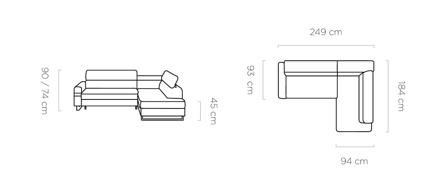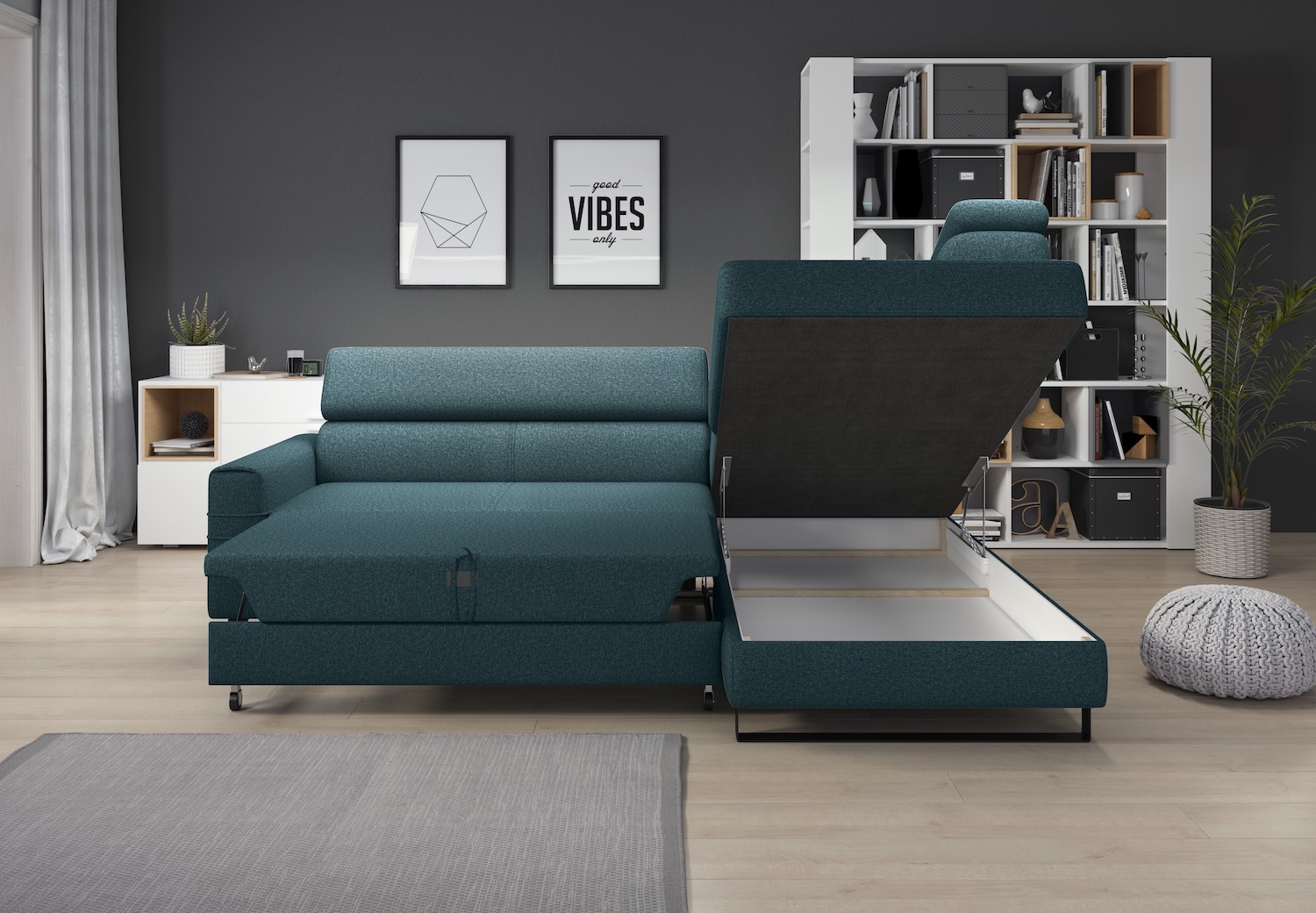 Stílusos megjelenésű sarok ülőgarnitúra kényelmi funkciókkal.
