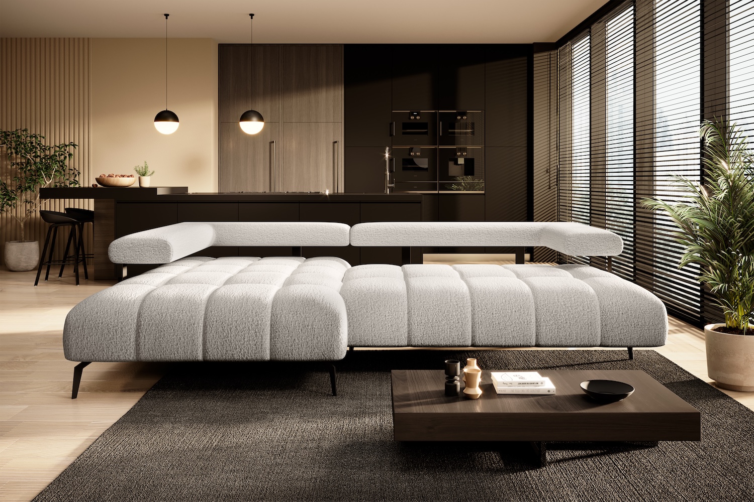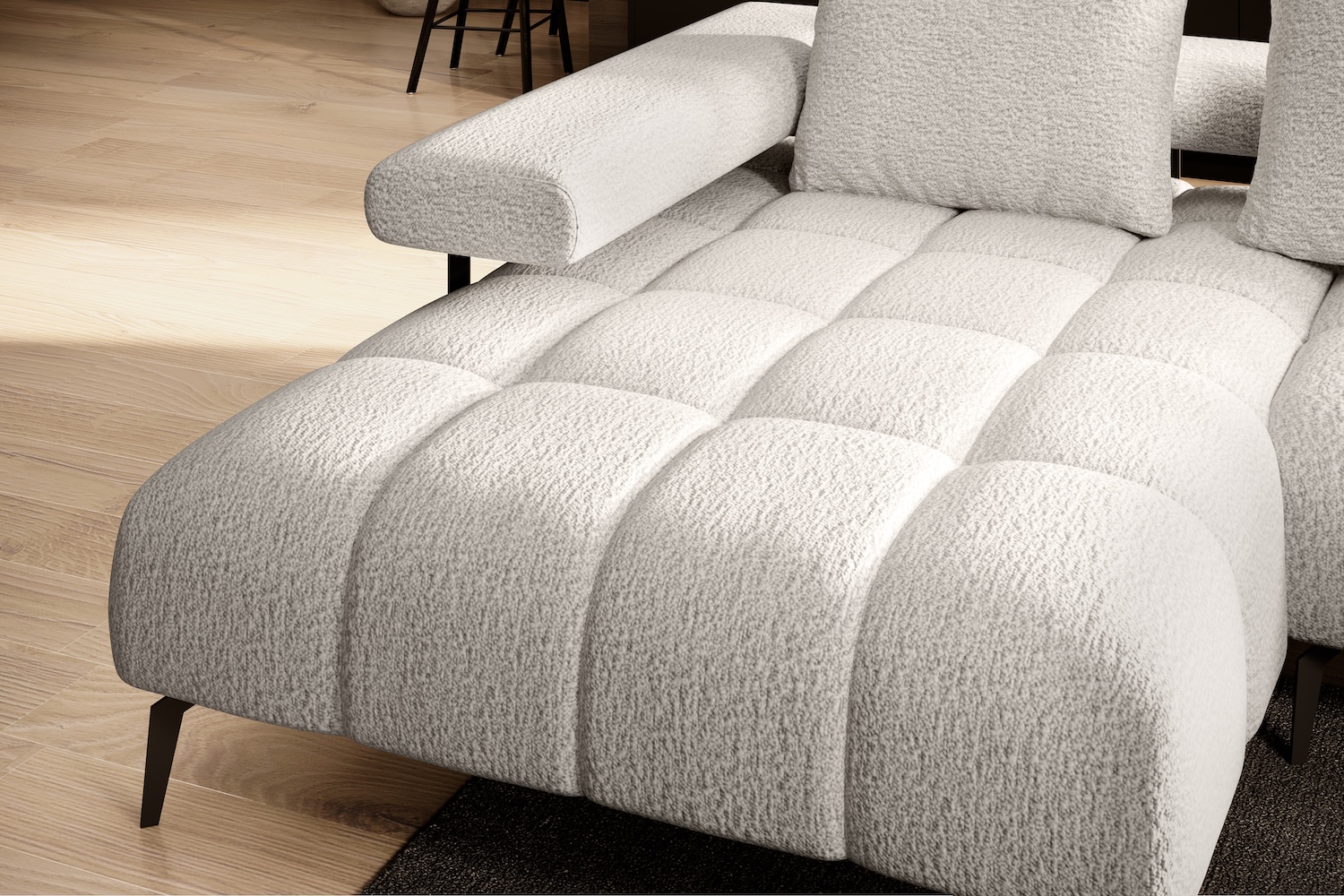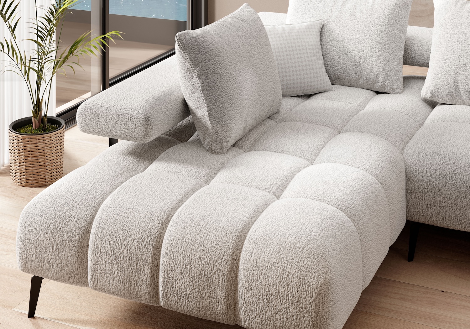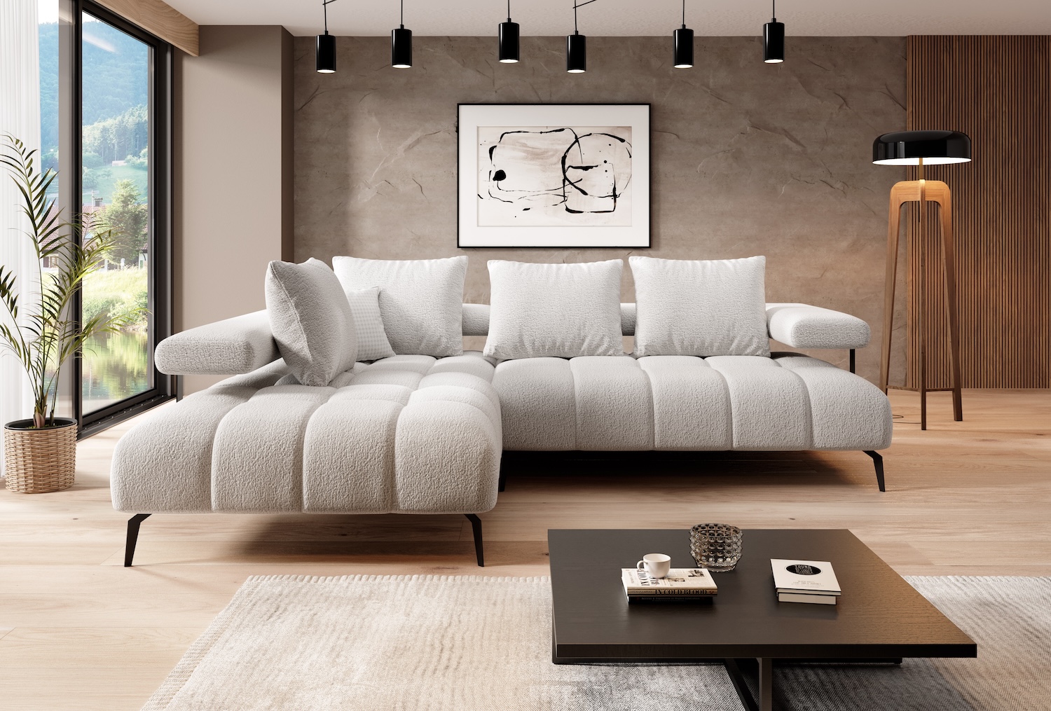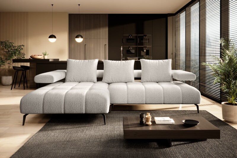 Stílusos megjelenésű sarok ülőgarnitúra kényelmi funkciókkal, 3 féle méretben.