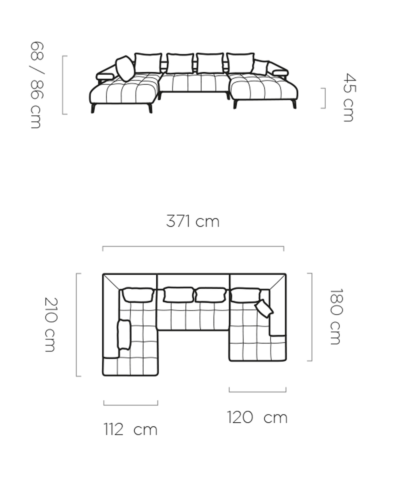 ‘XL’: 210 x 371 x 180 cm, fekvőfelület: 109 x 305 cm