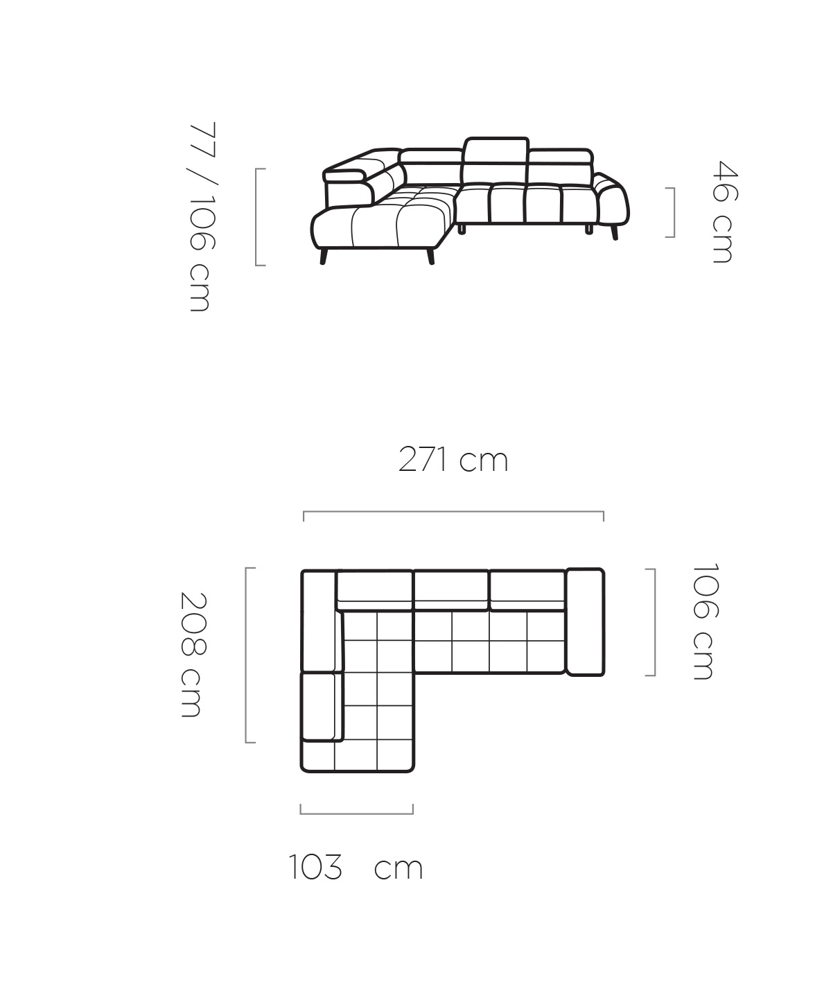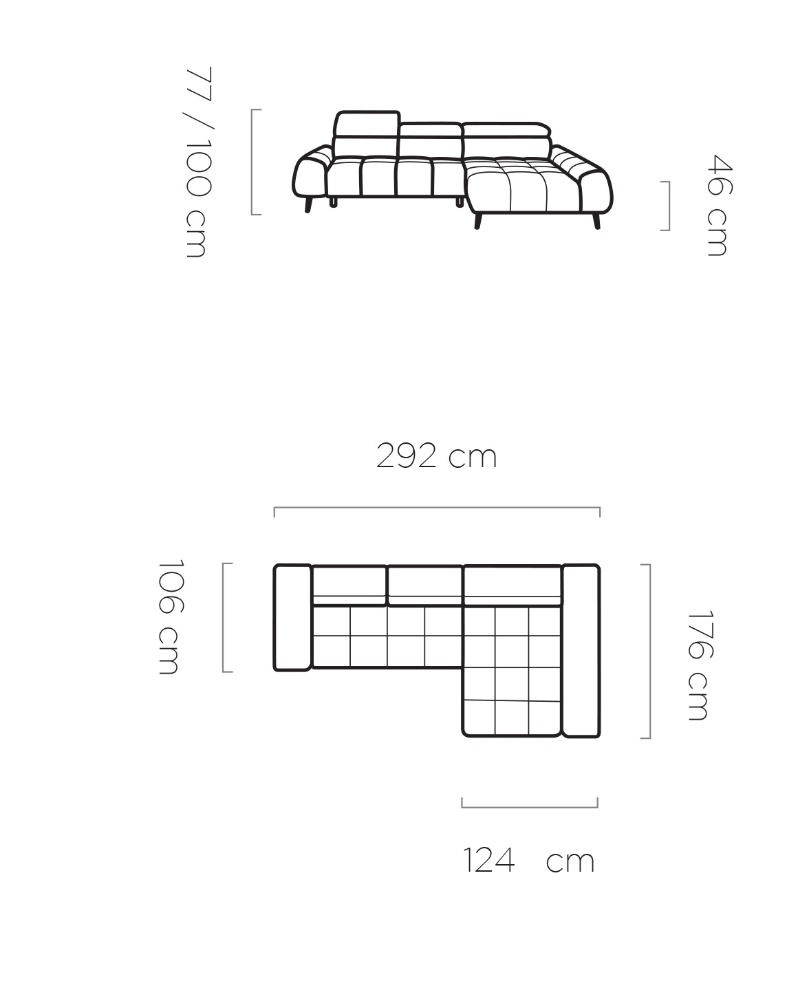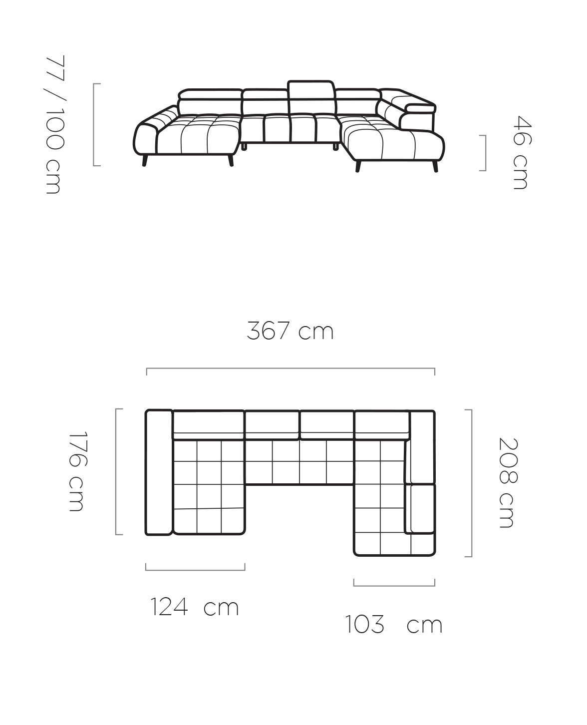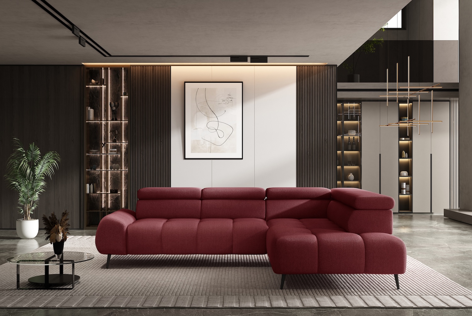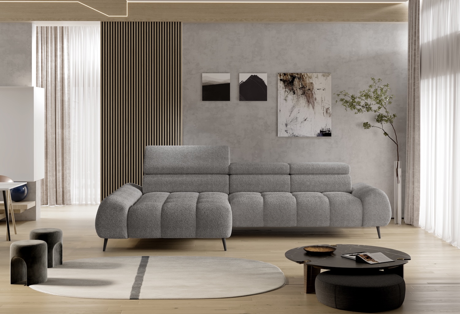 Stílusos megjelenésű sarok ülőgarnitúra kényelmi funkciókkal, 3 féle méretben.