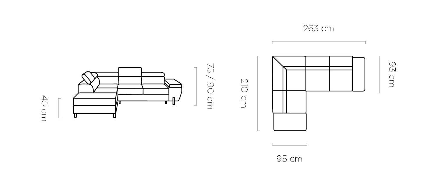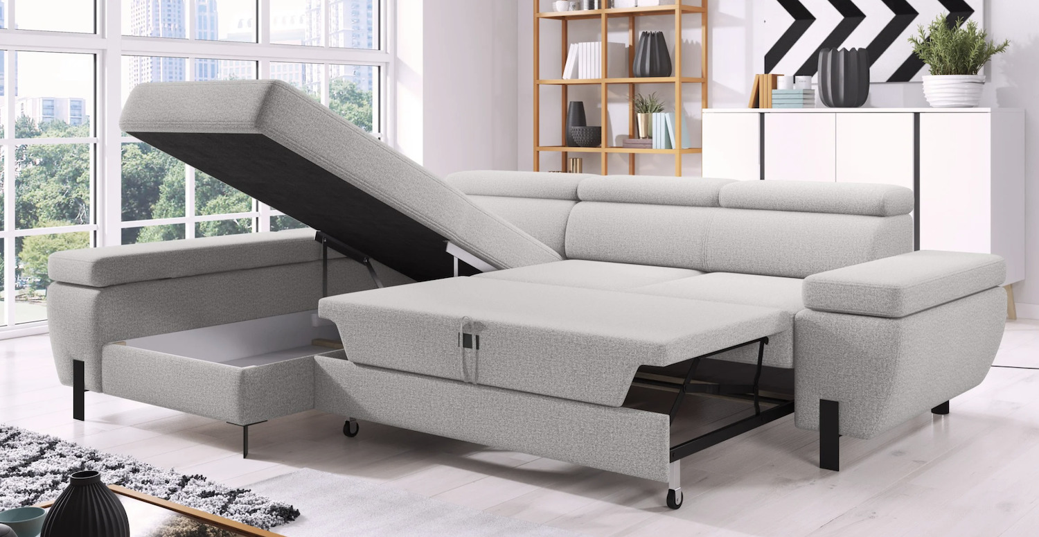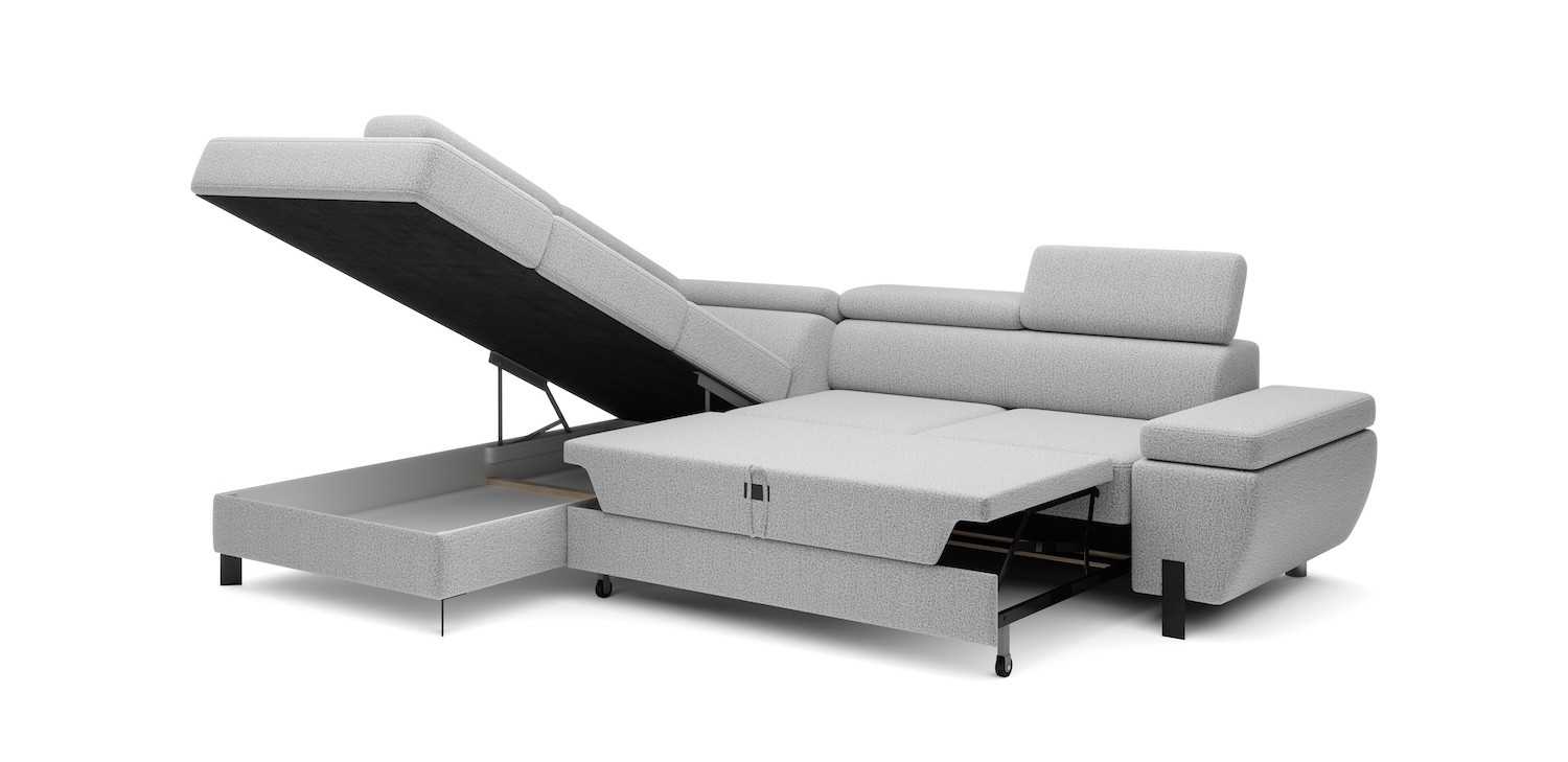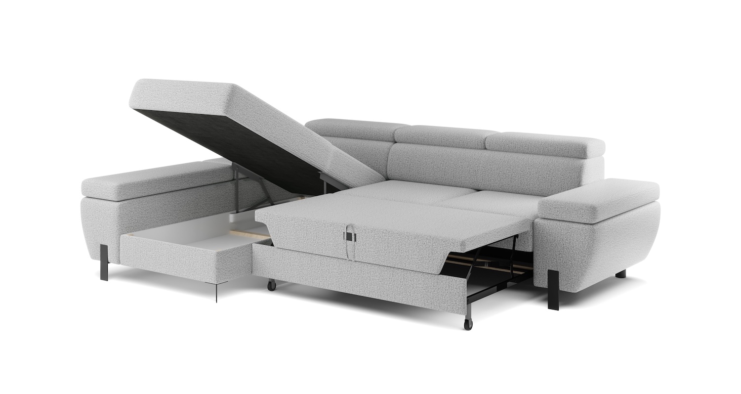 Stílusos megjelenésű sarok ülőgarnitúra kényelmi funkciókkal, 3 féle méretben.