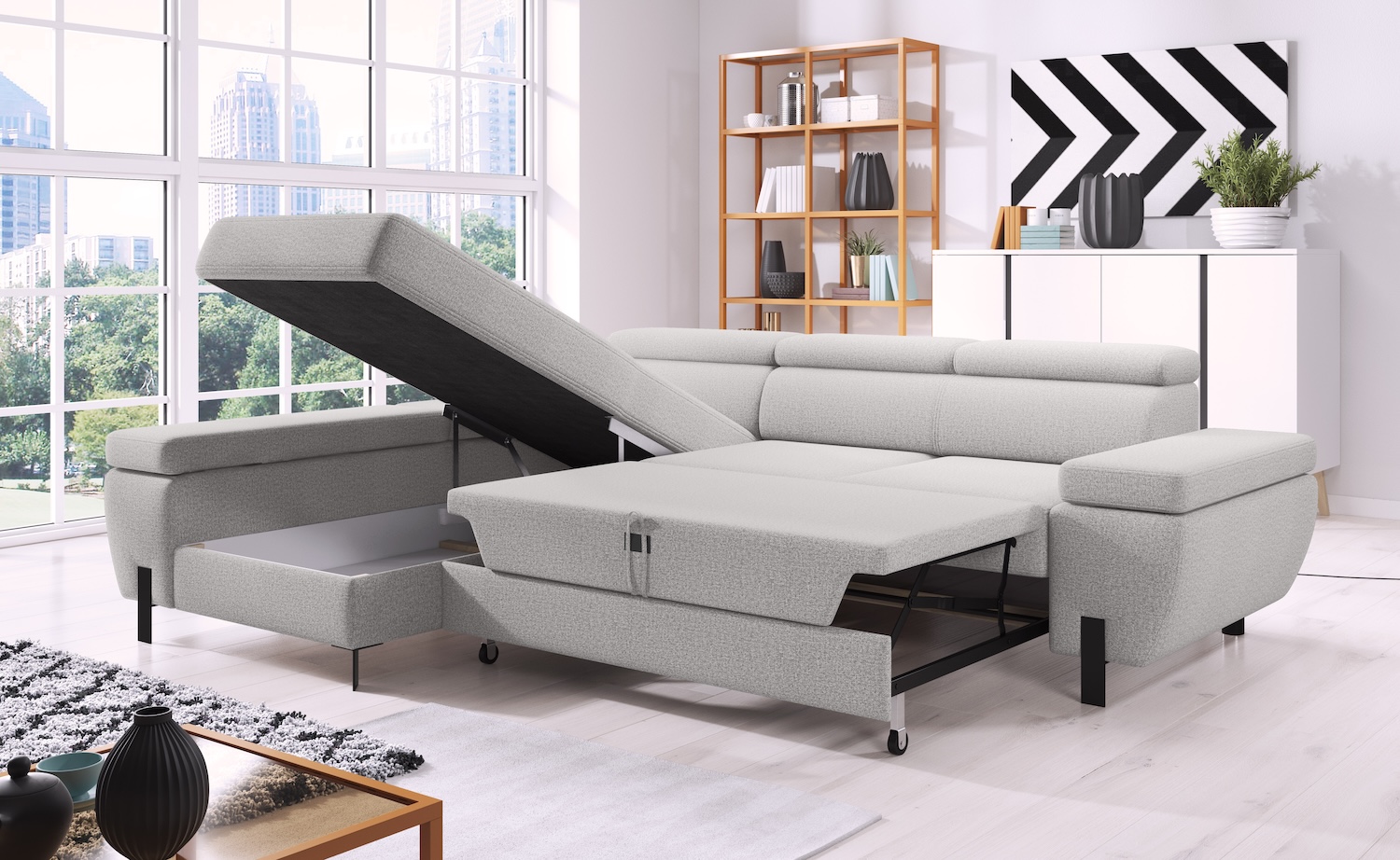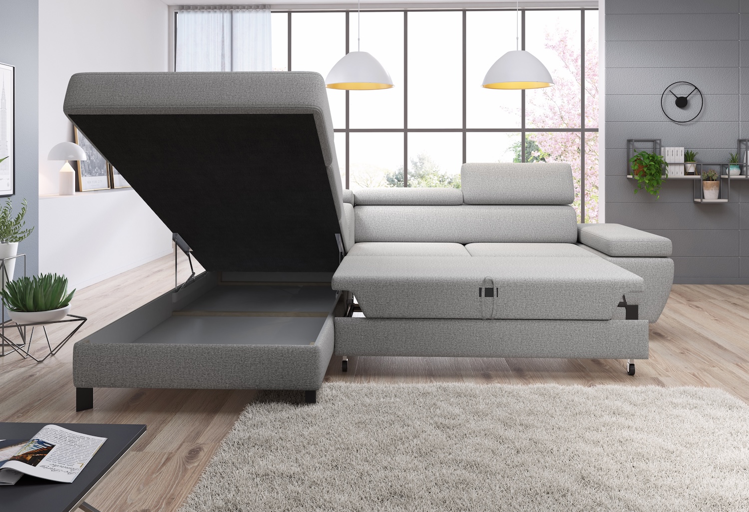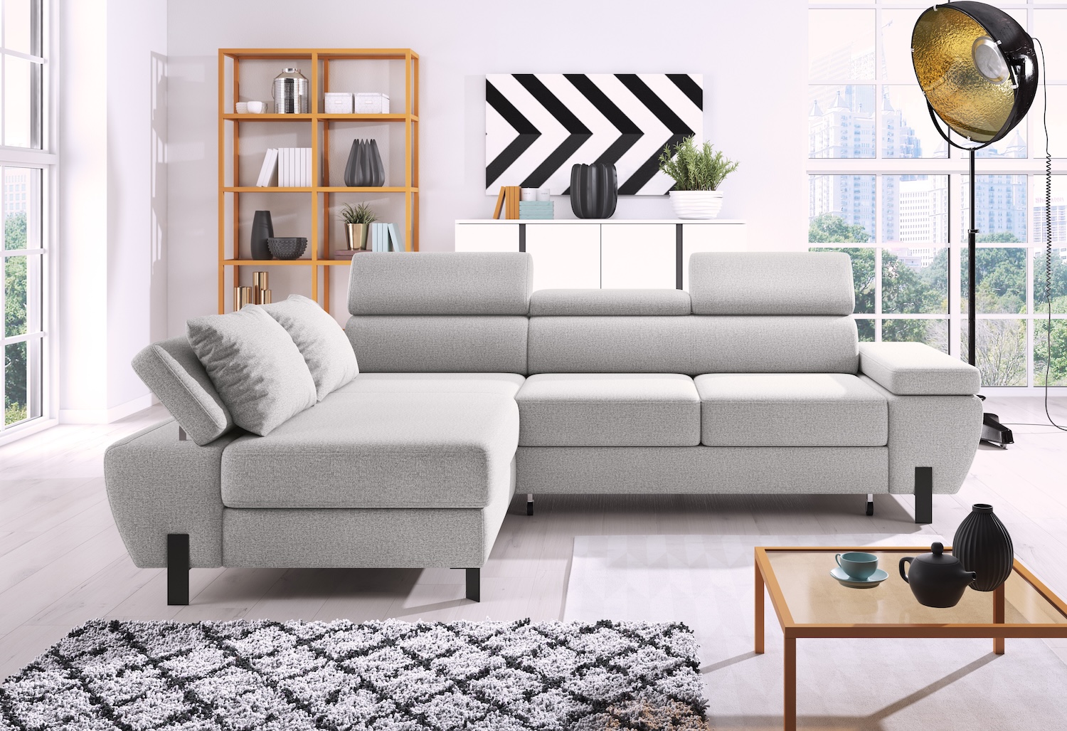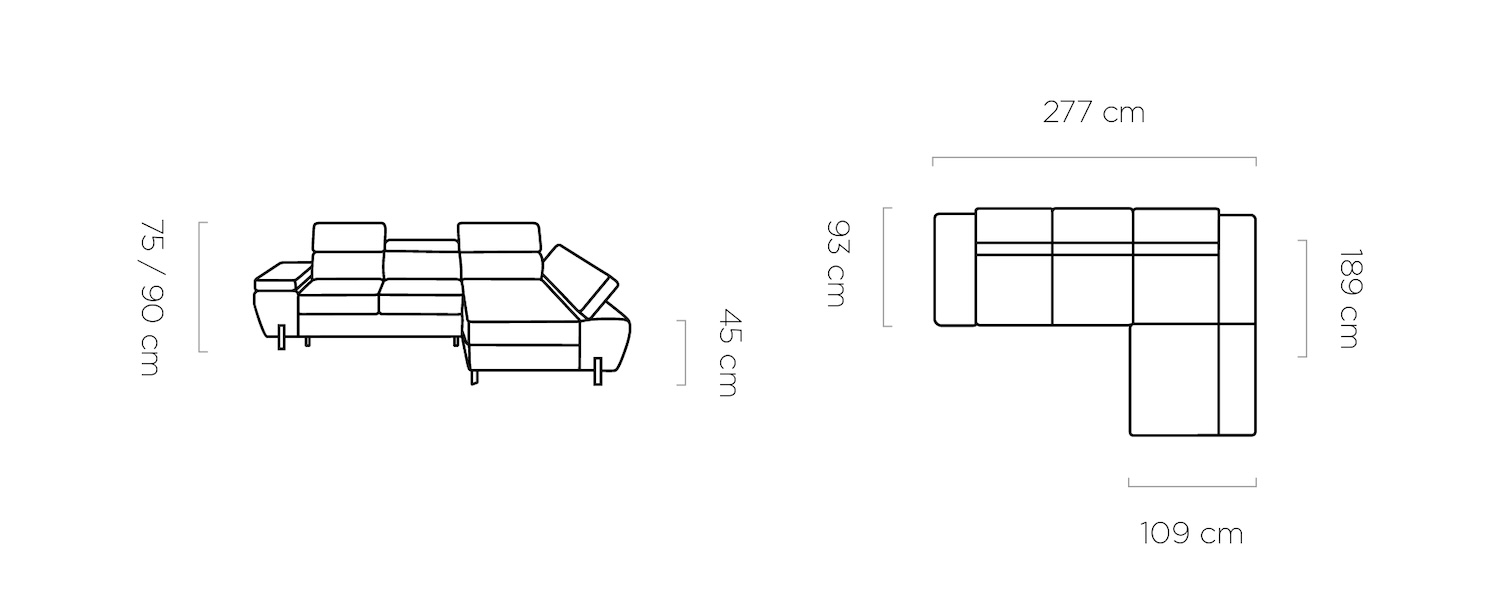 Stílusos megjelenésű sarok ülőgarnitúra kényelmi funkciókkal, 3 féle méretben.