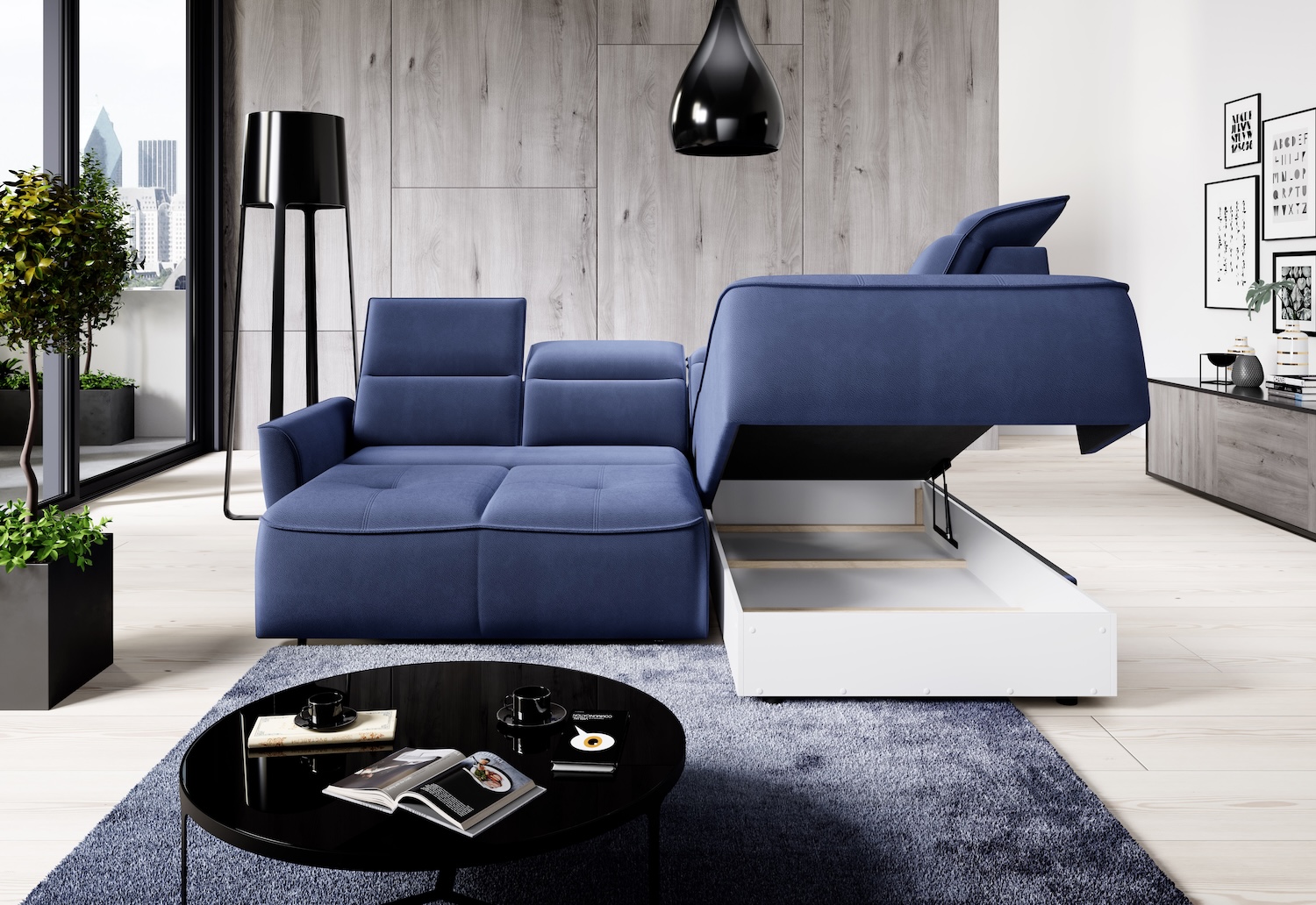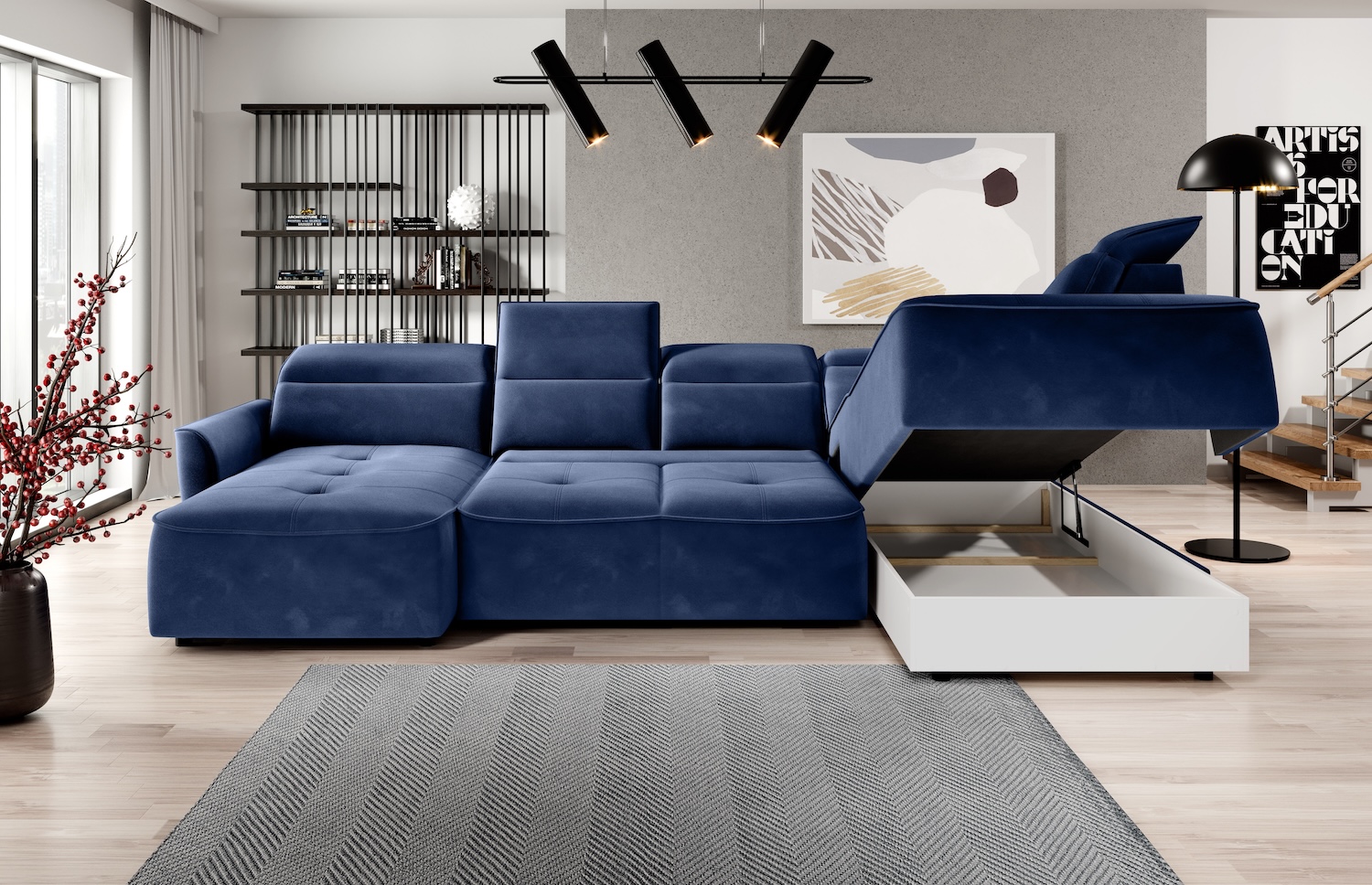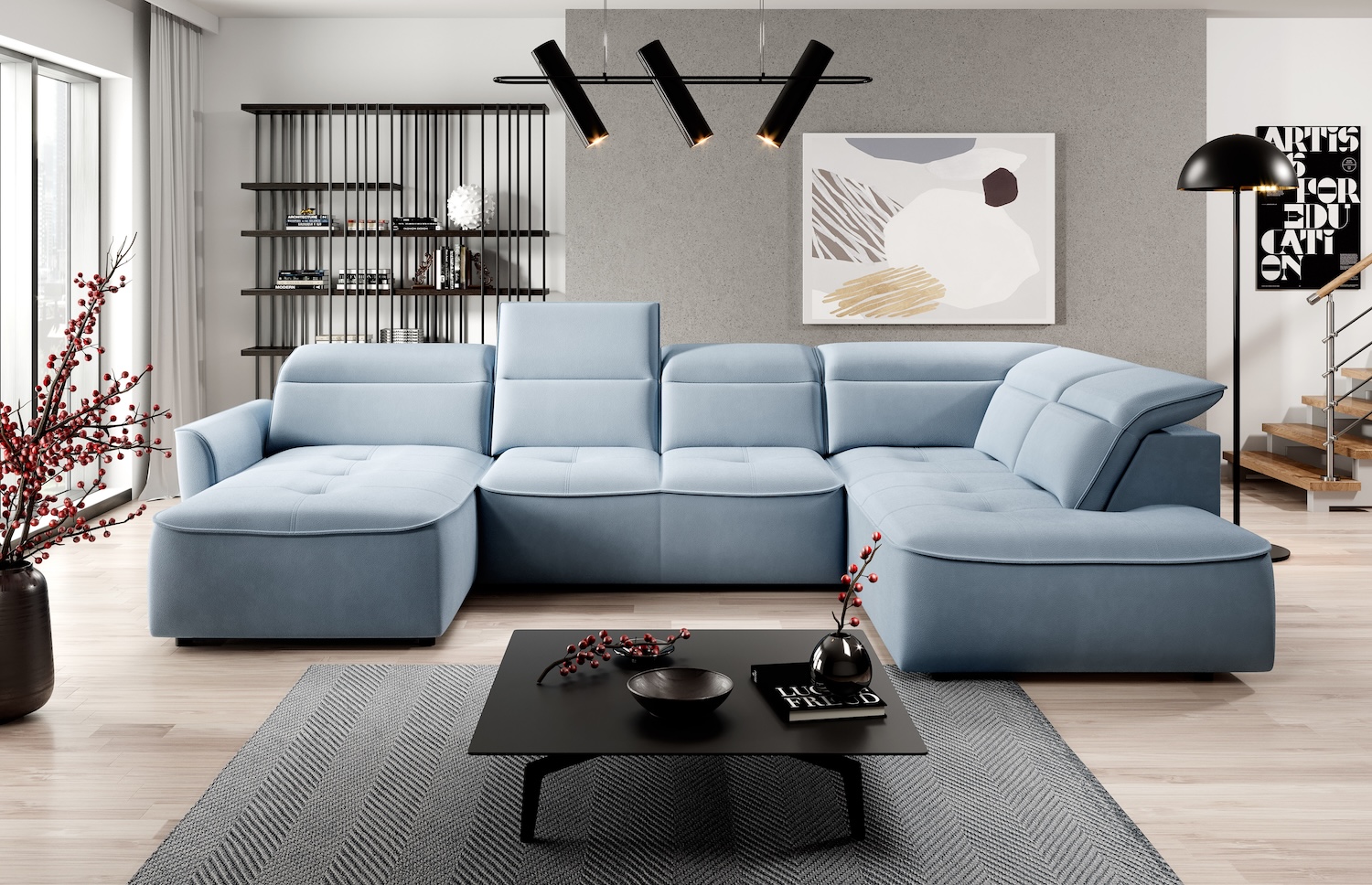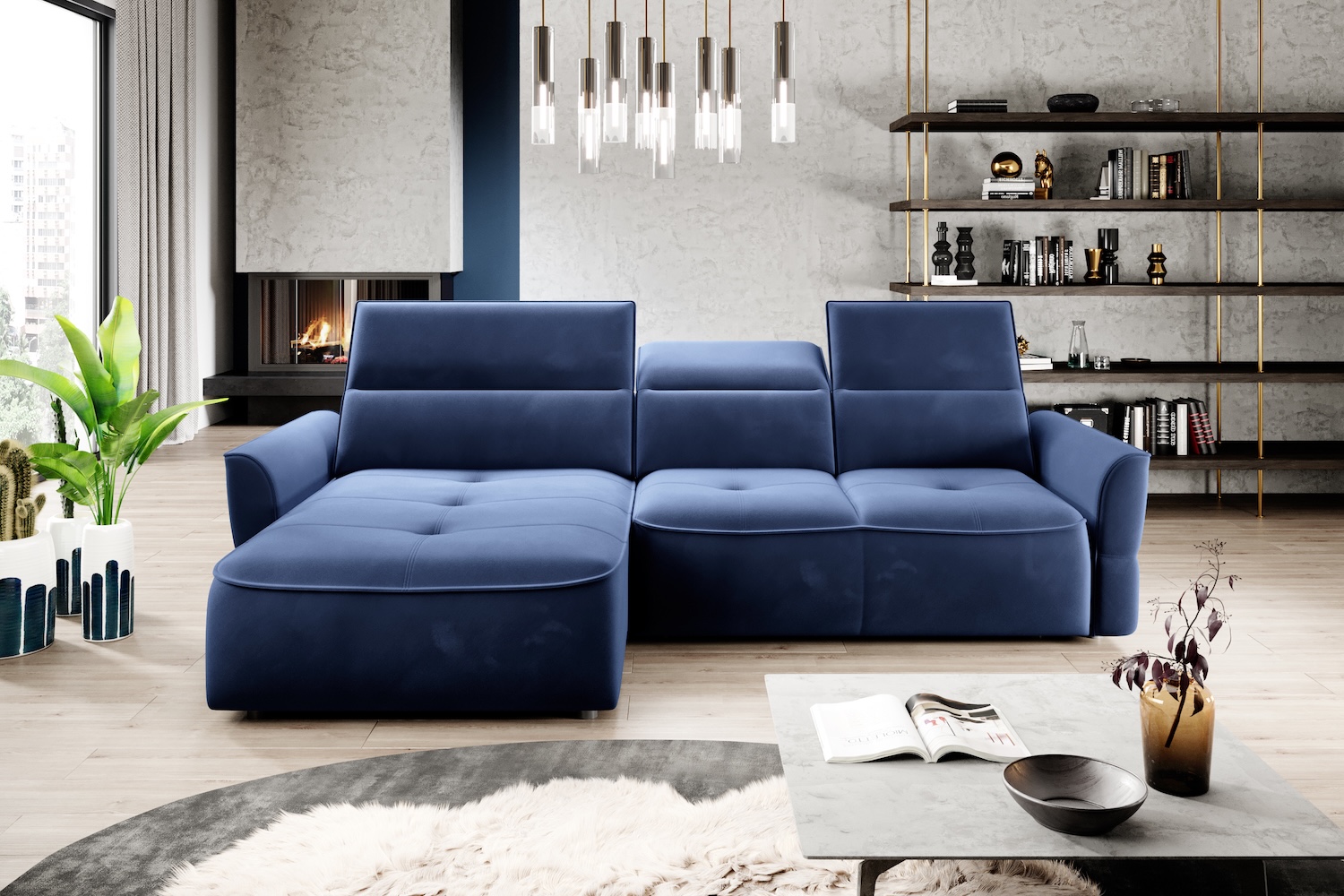 Stílusos megjelenésű sarok ülőgarnitúra kényelmi funkciókkal, 3 féle méretben.